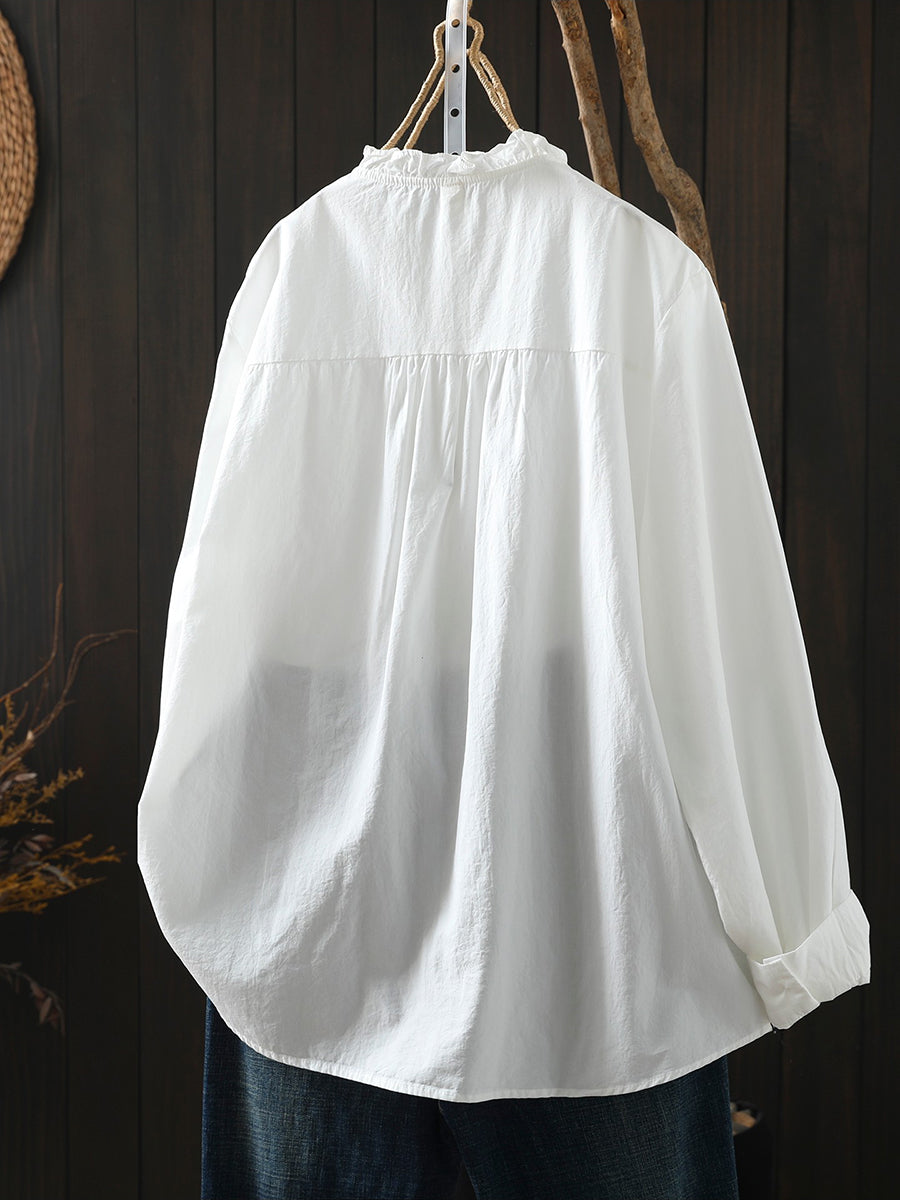 Women Spring Artsy 100%Cotton Stand Collar Shirt