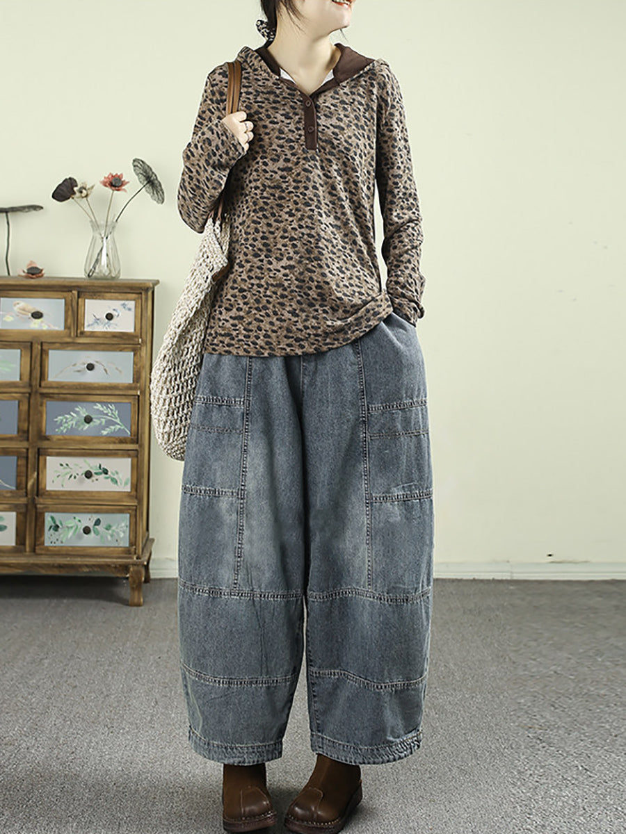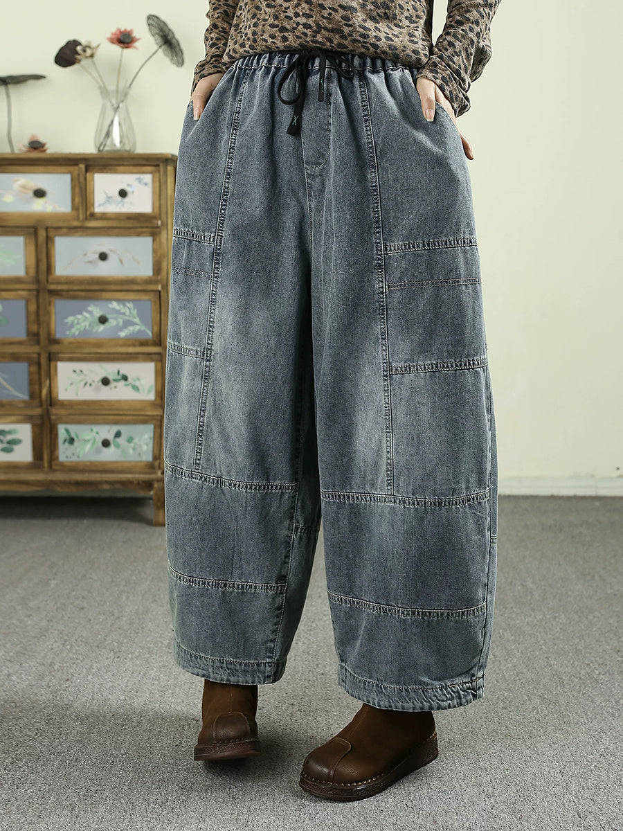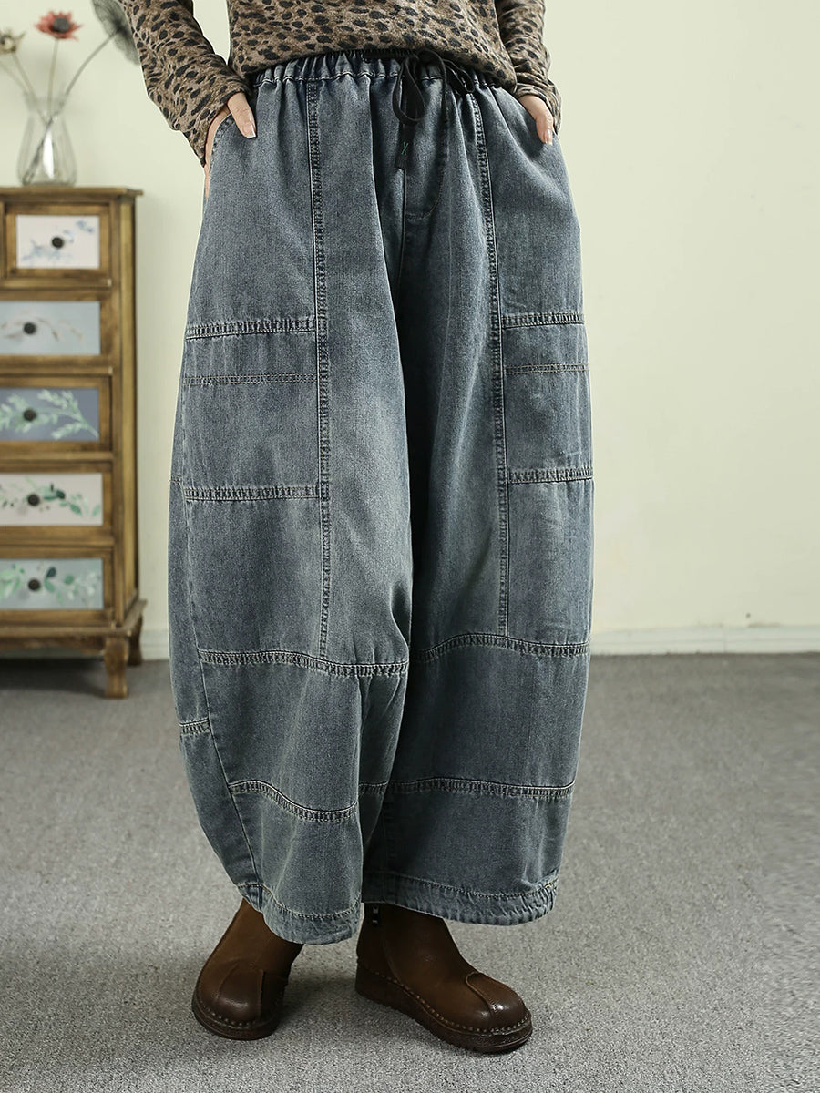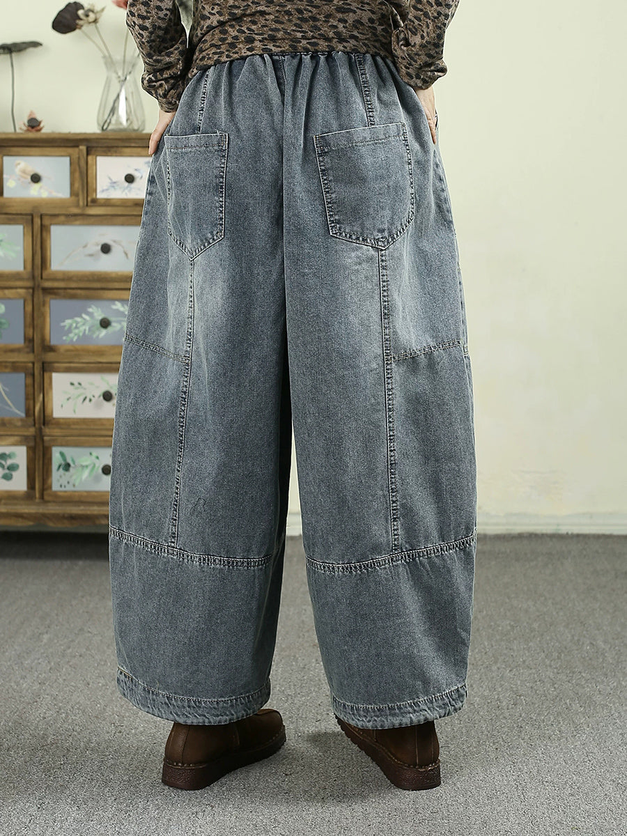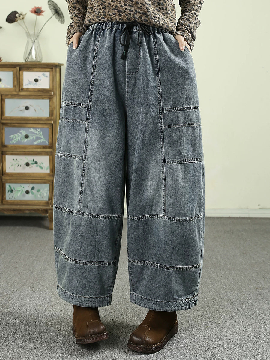 Women Spring Vintage Denim Spliced Wide-leg Pants
