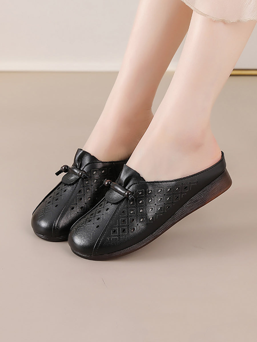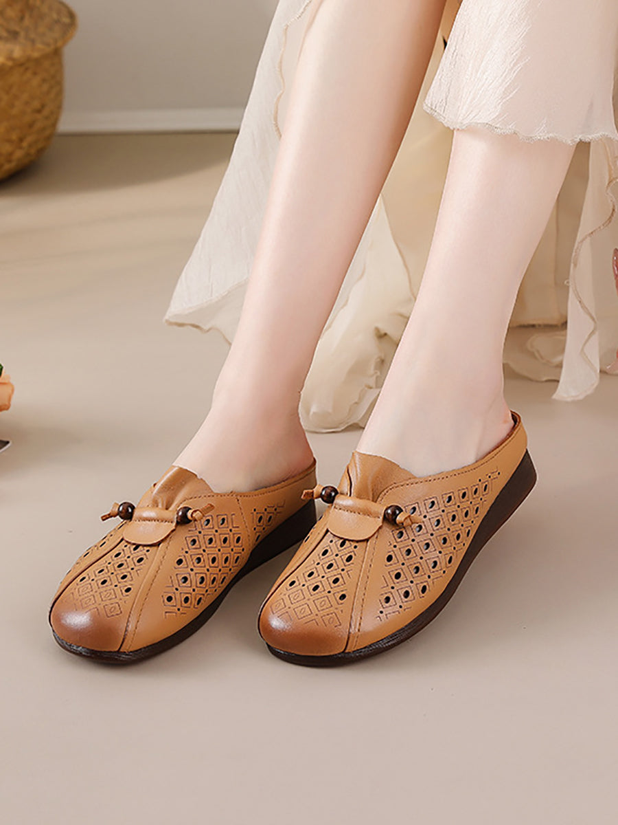Women Summe Retro Genuine Leather Slippers