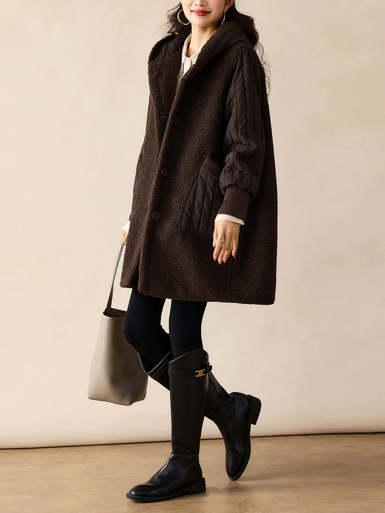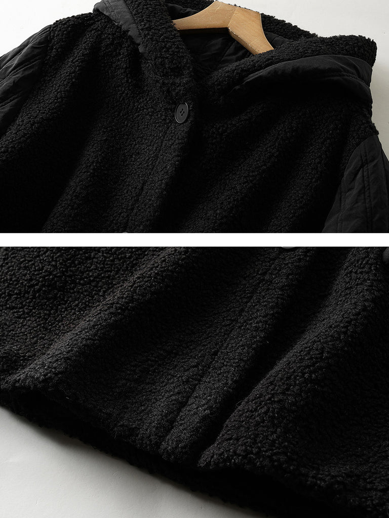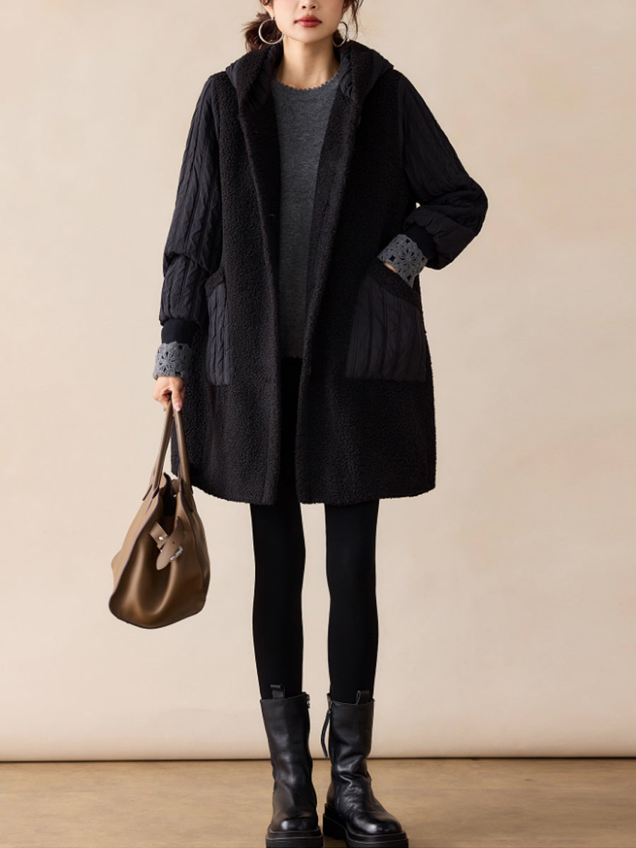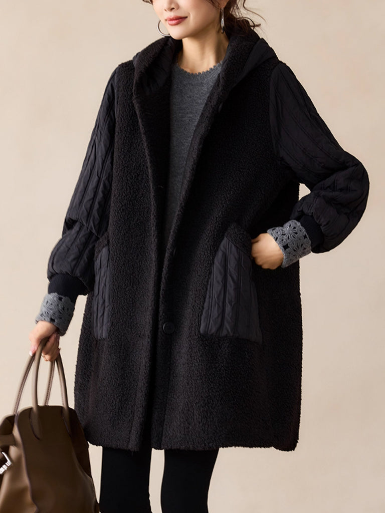 Women Winter Casual Pure Color Hooded Fleece Coat