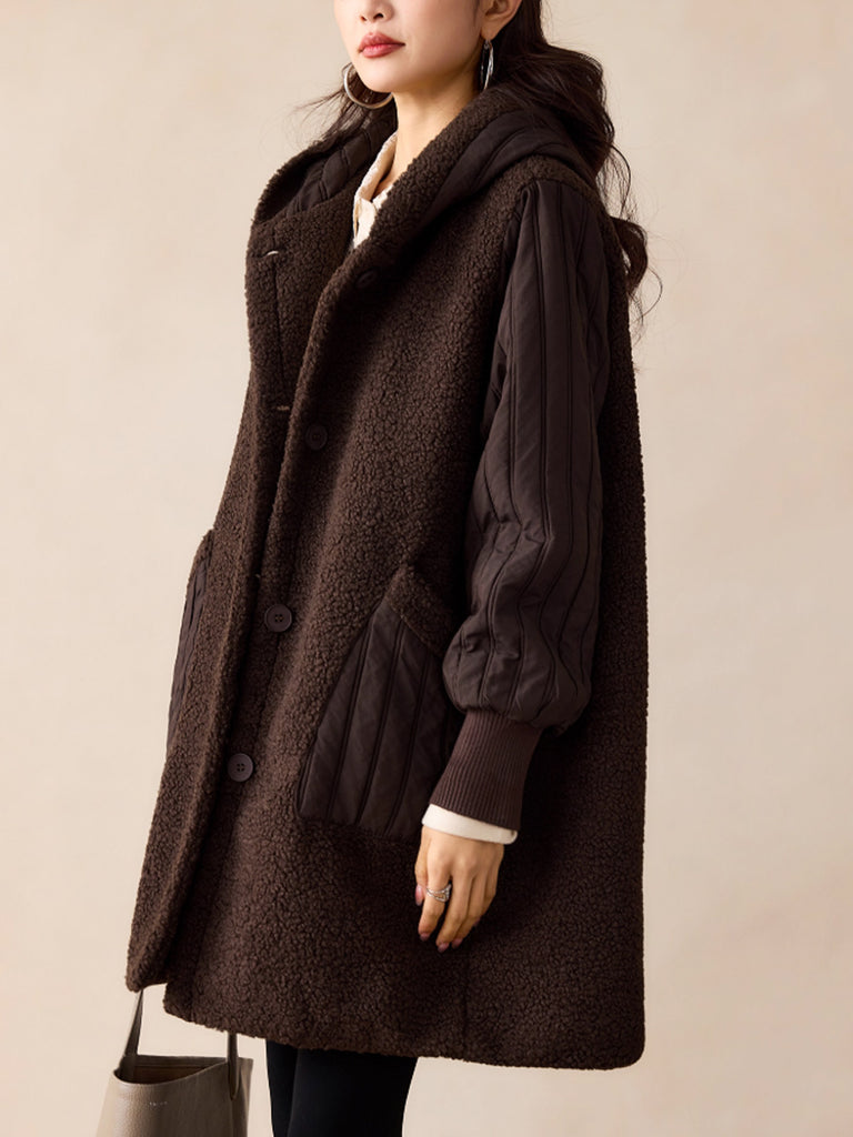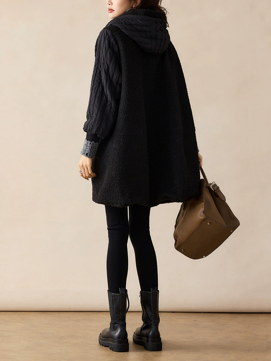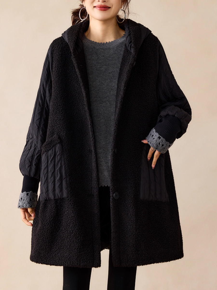 Women Winter Casual Pure Color Hooded Fleece Coat