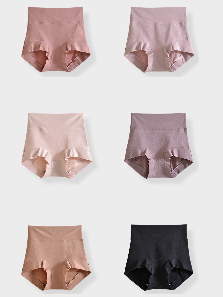 6 Pieces Women Pure Color High Waist Underwear