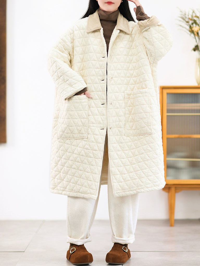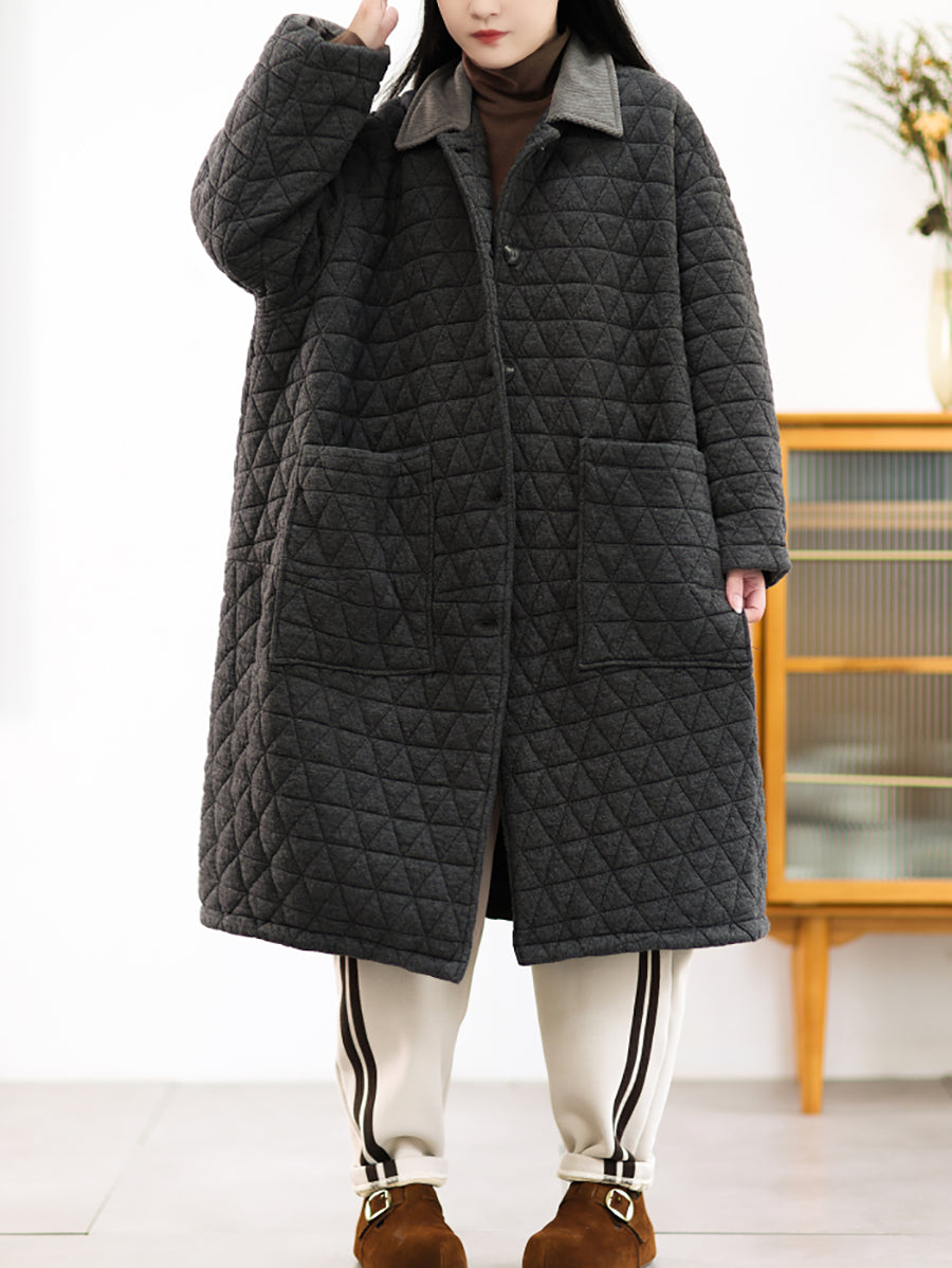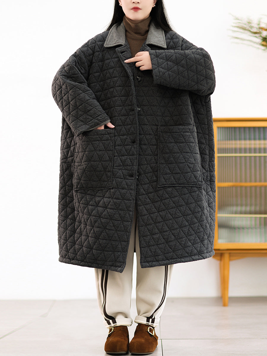 Crafted from quality cotton, this winter coat features a sophisticated colorblock design that balances contemporary style with timeless appeal. The turn-down collar and full-length raglan sleeves deliver both comfort and a refined silhouette, while the retro-inspired aesthetic adds character to your seasonal wardrobe. Ideal for autumn and winter layering, this piece combines functional warmth with understated elegance.