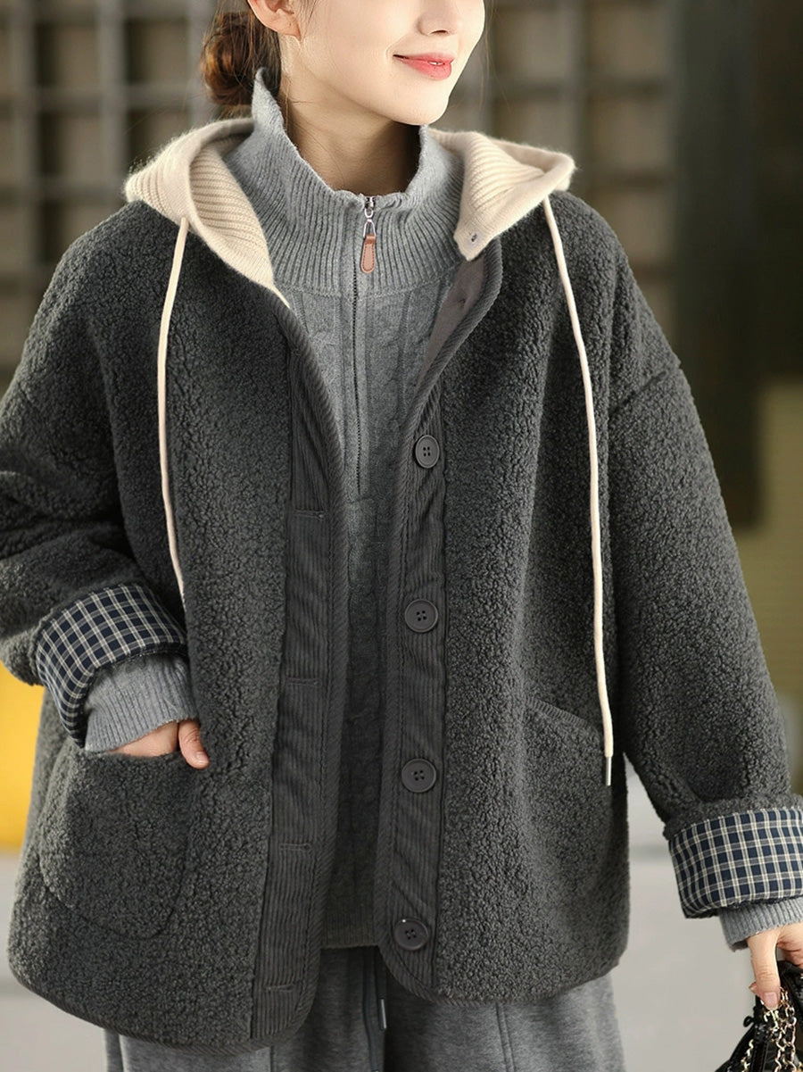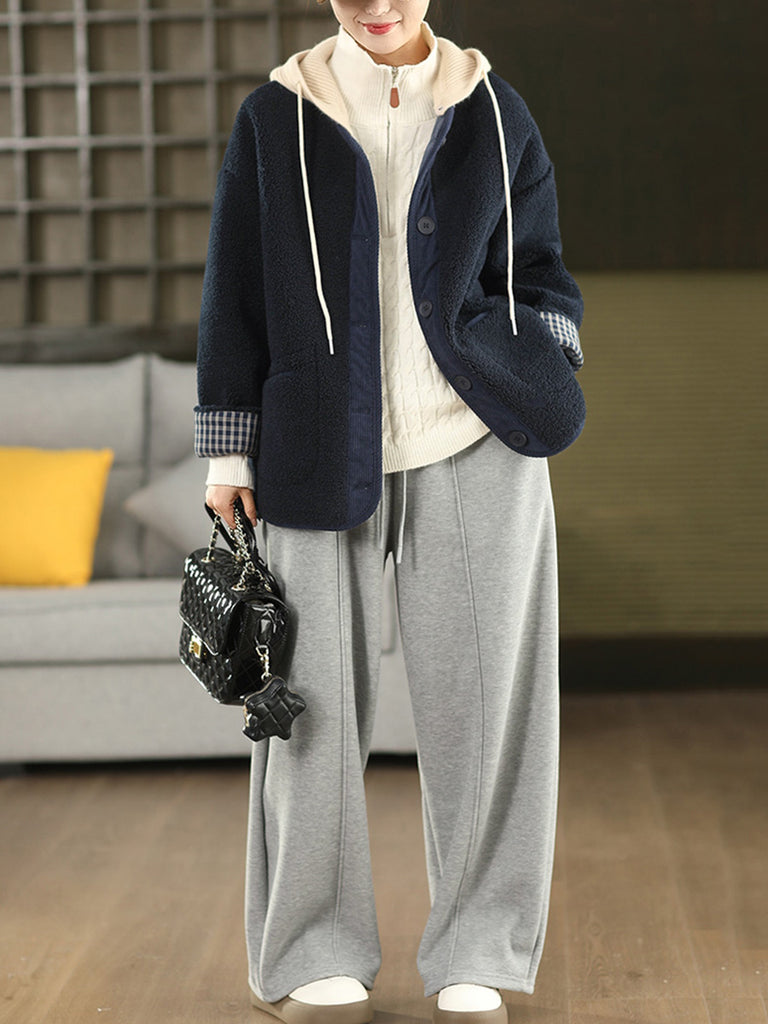 Women Winter Colorblock Spliced Hooded Fleece Coat