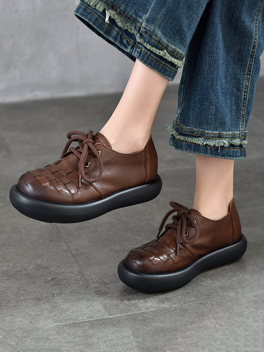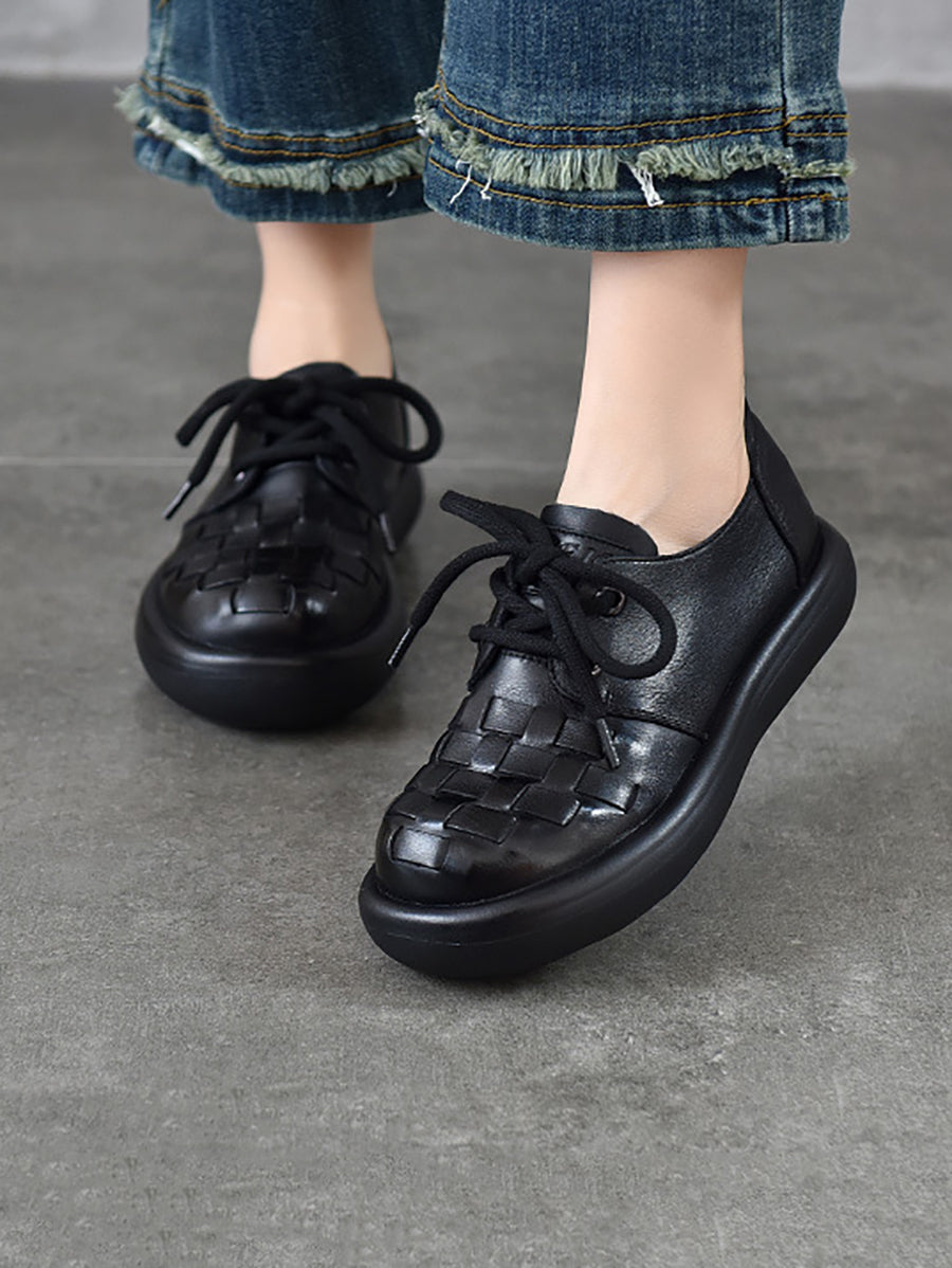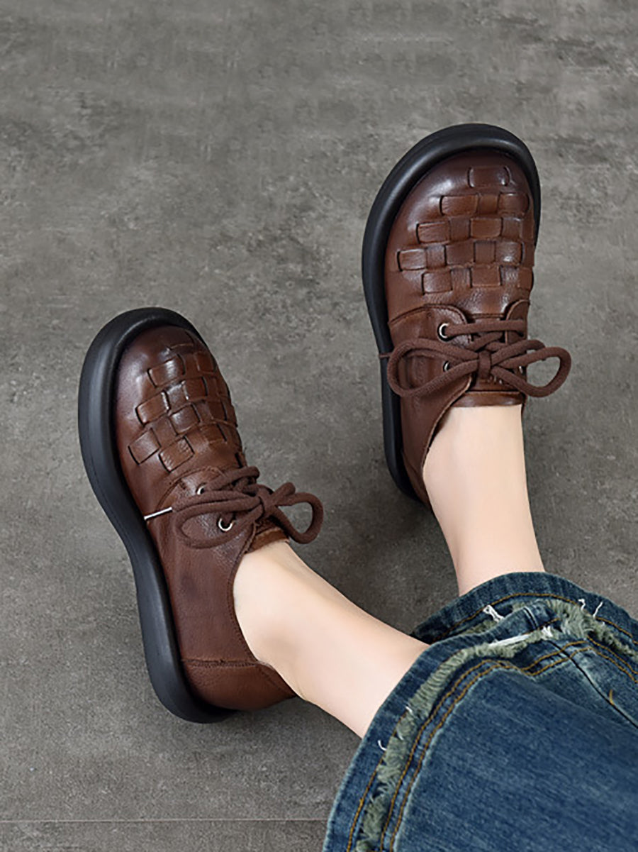 Women Spring Genuine Leather Weave Flat Shoes