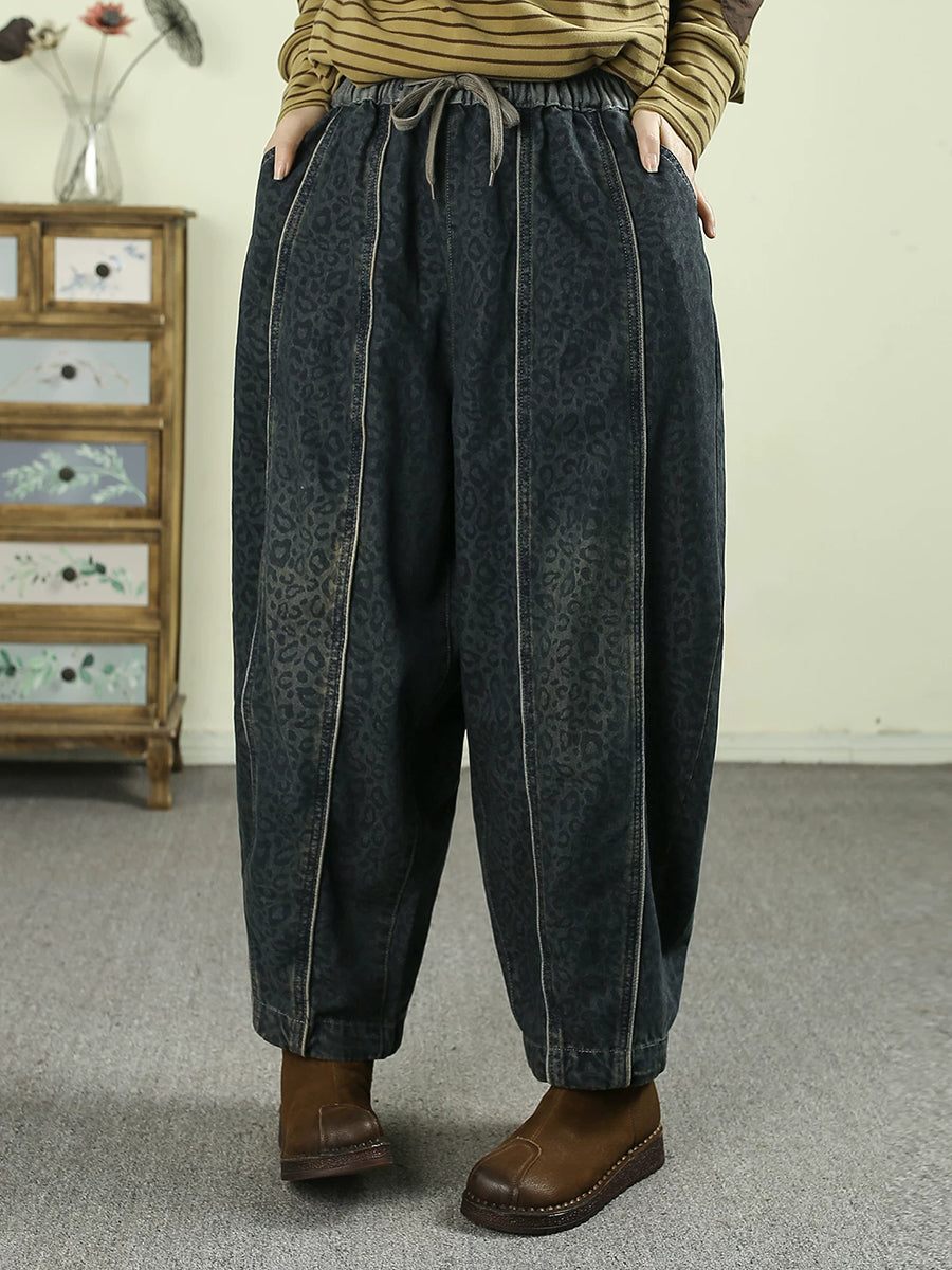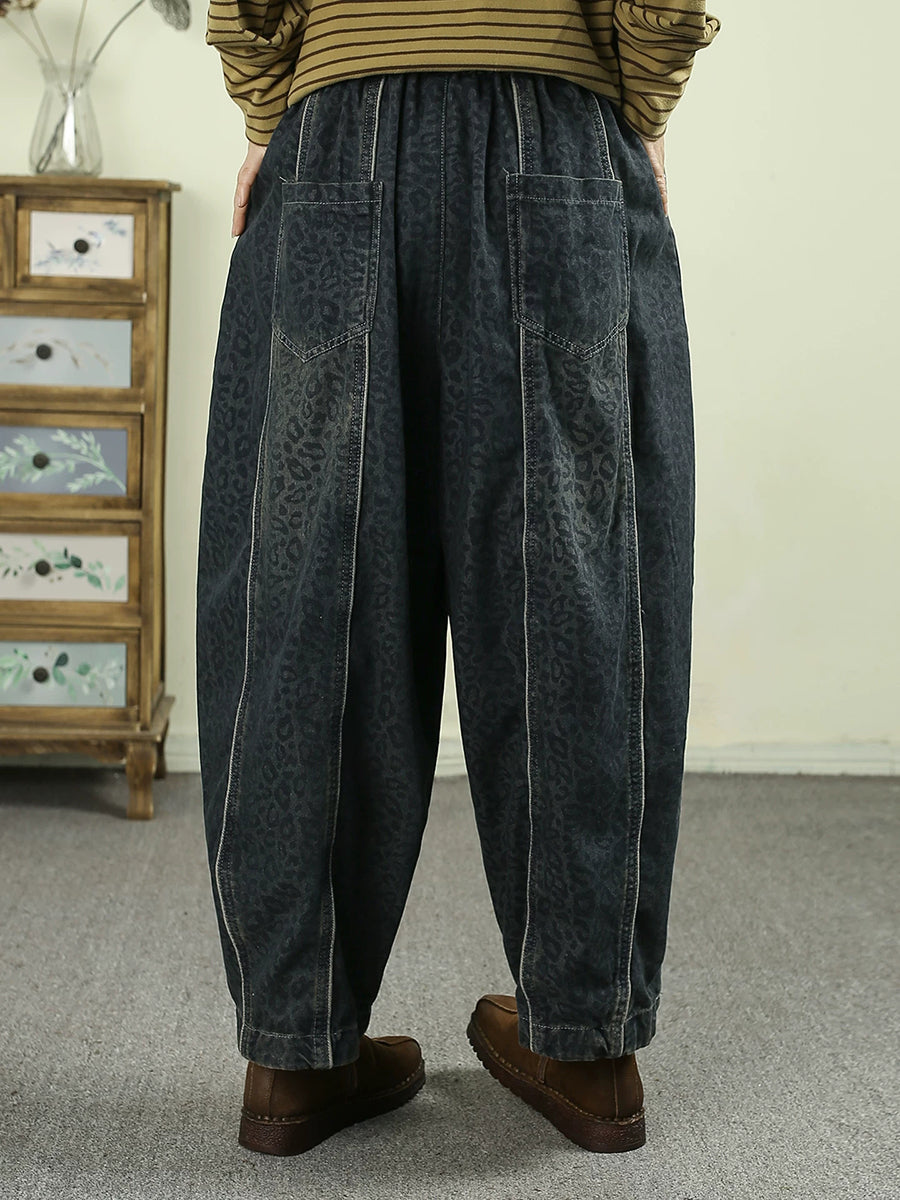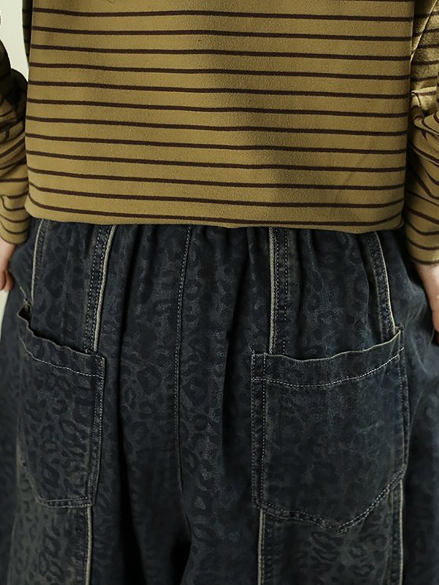 Women Spring Vintage Denim Leopard Harem Pants