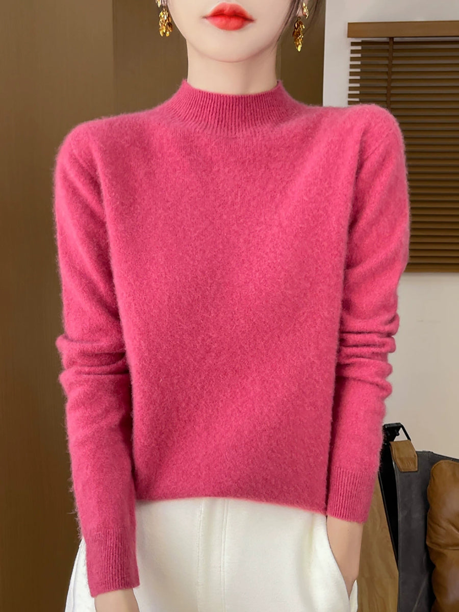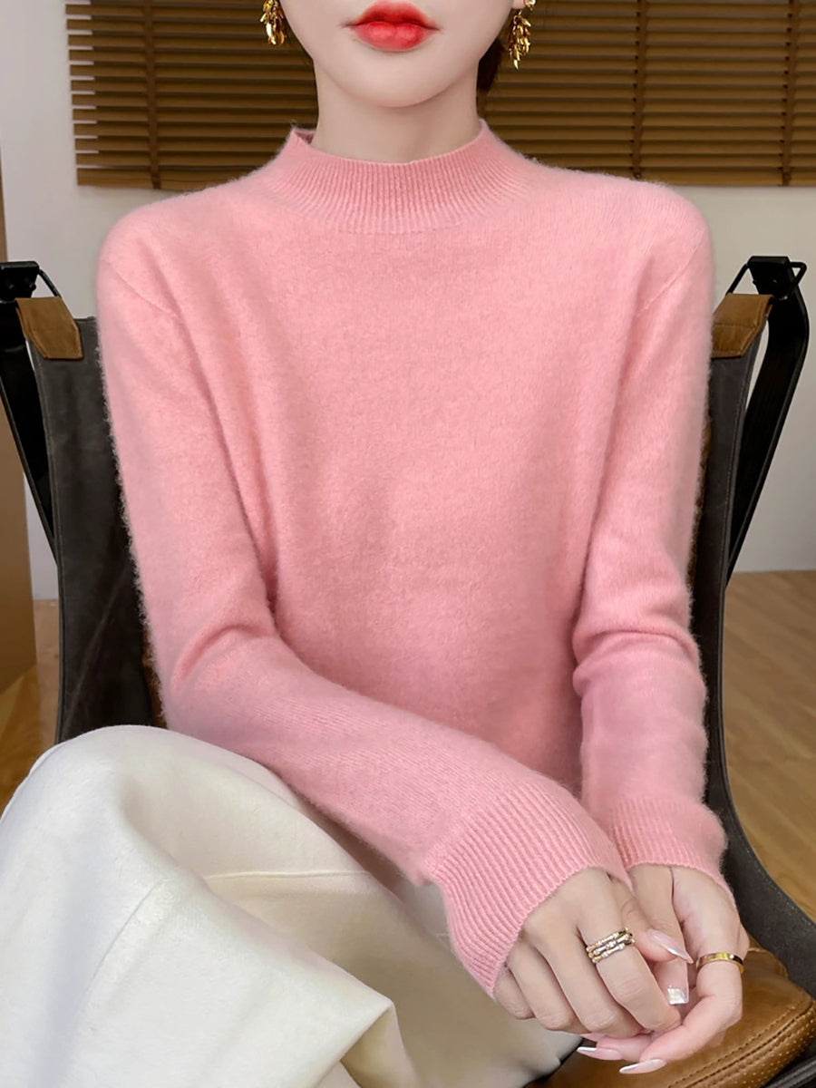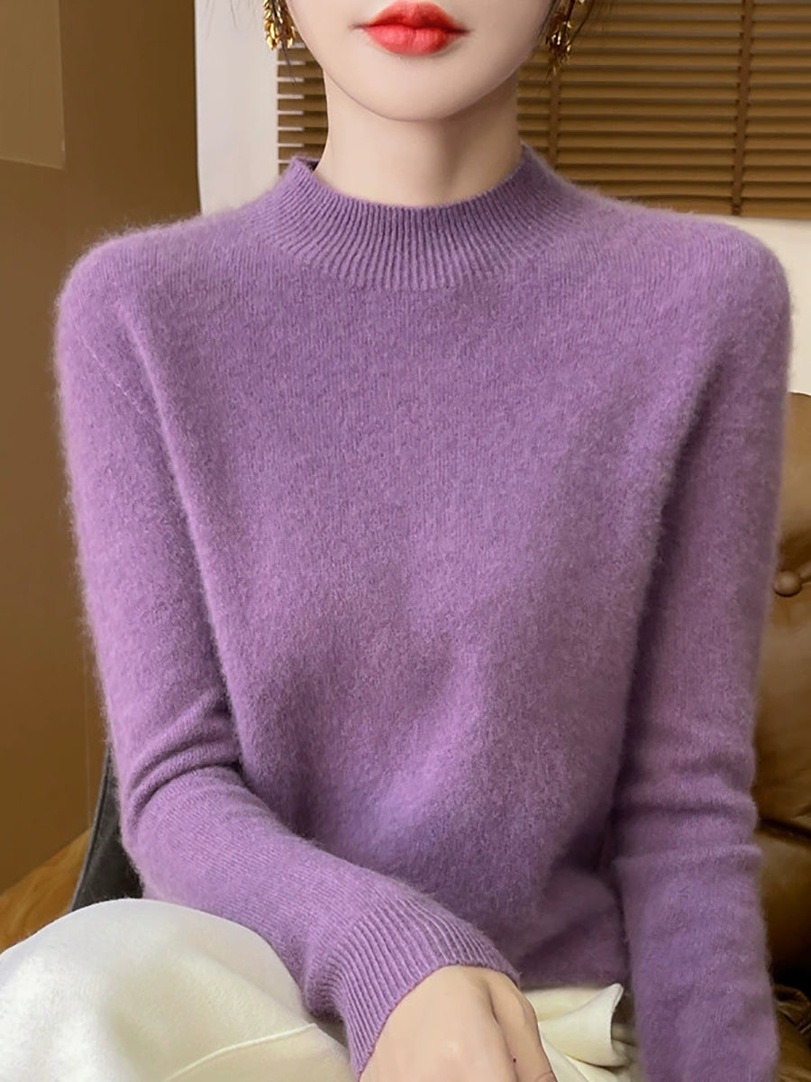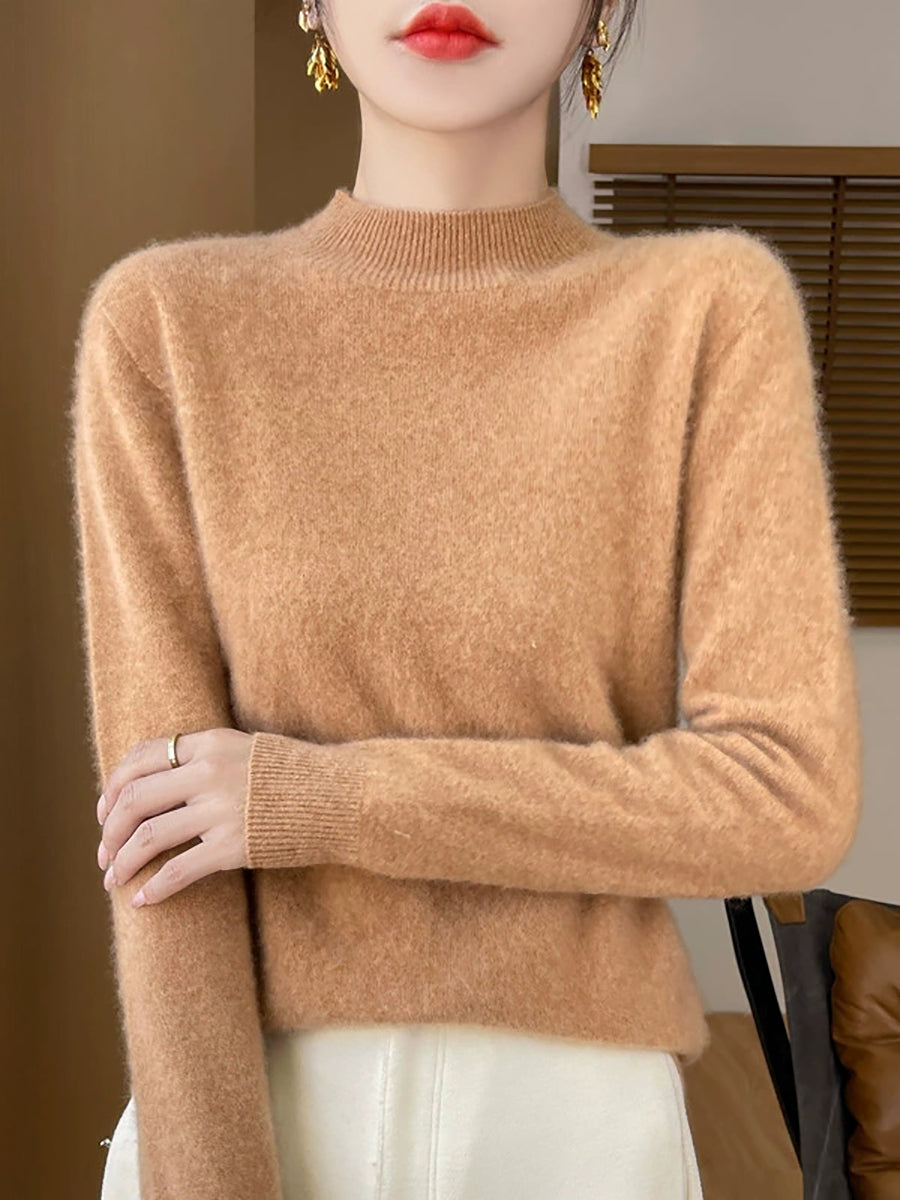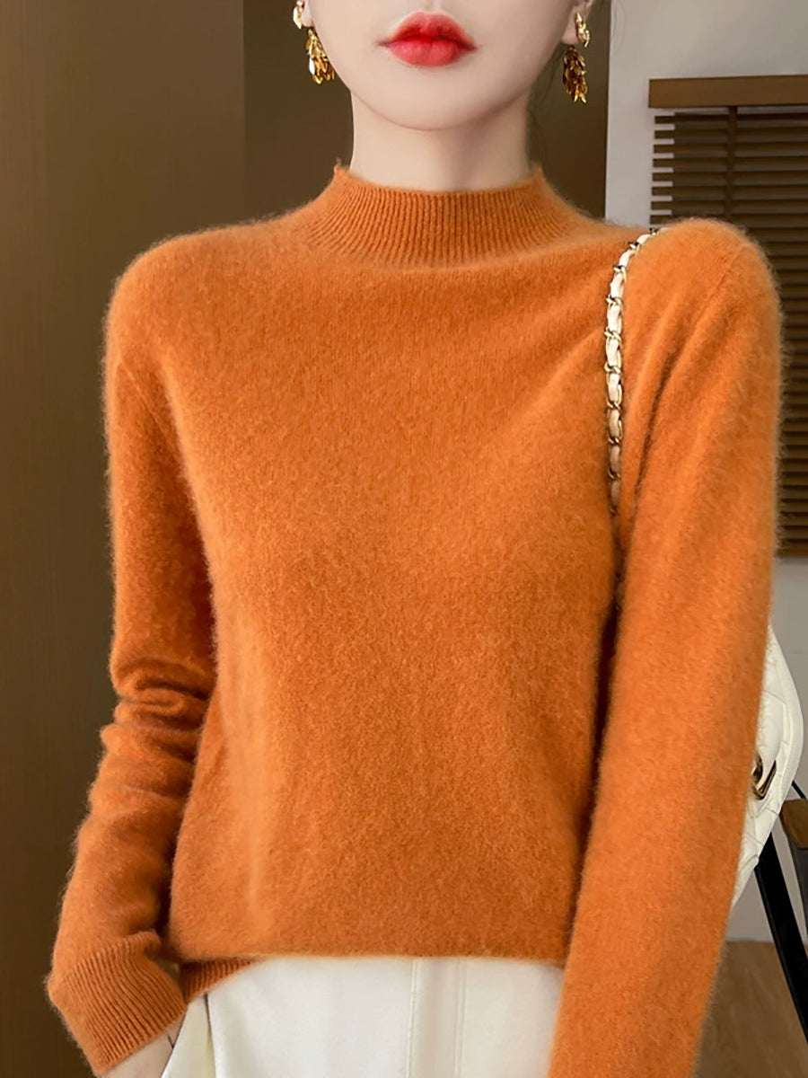 Suéter informal de otoño con cuello alto y color puro para mujer