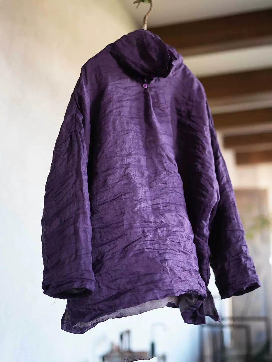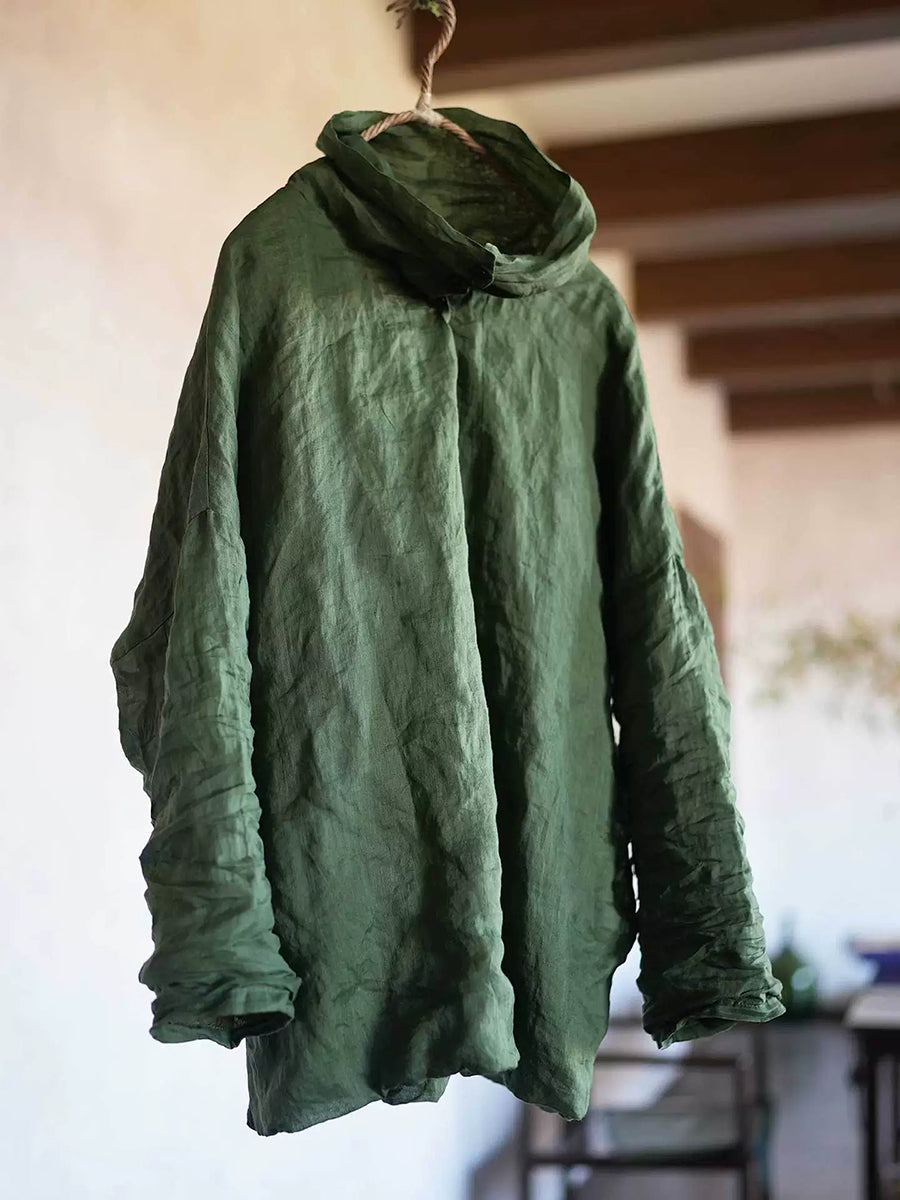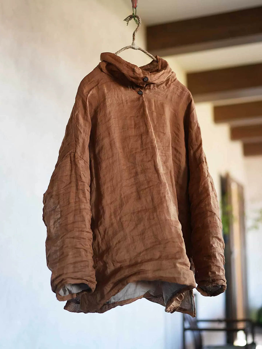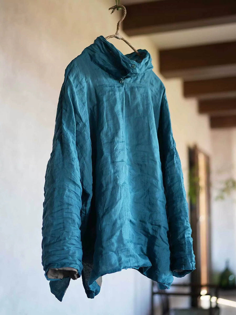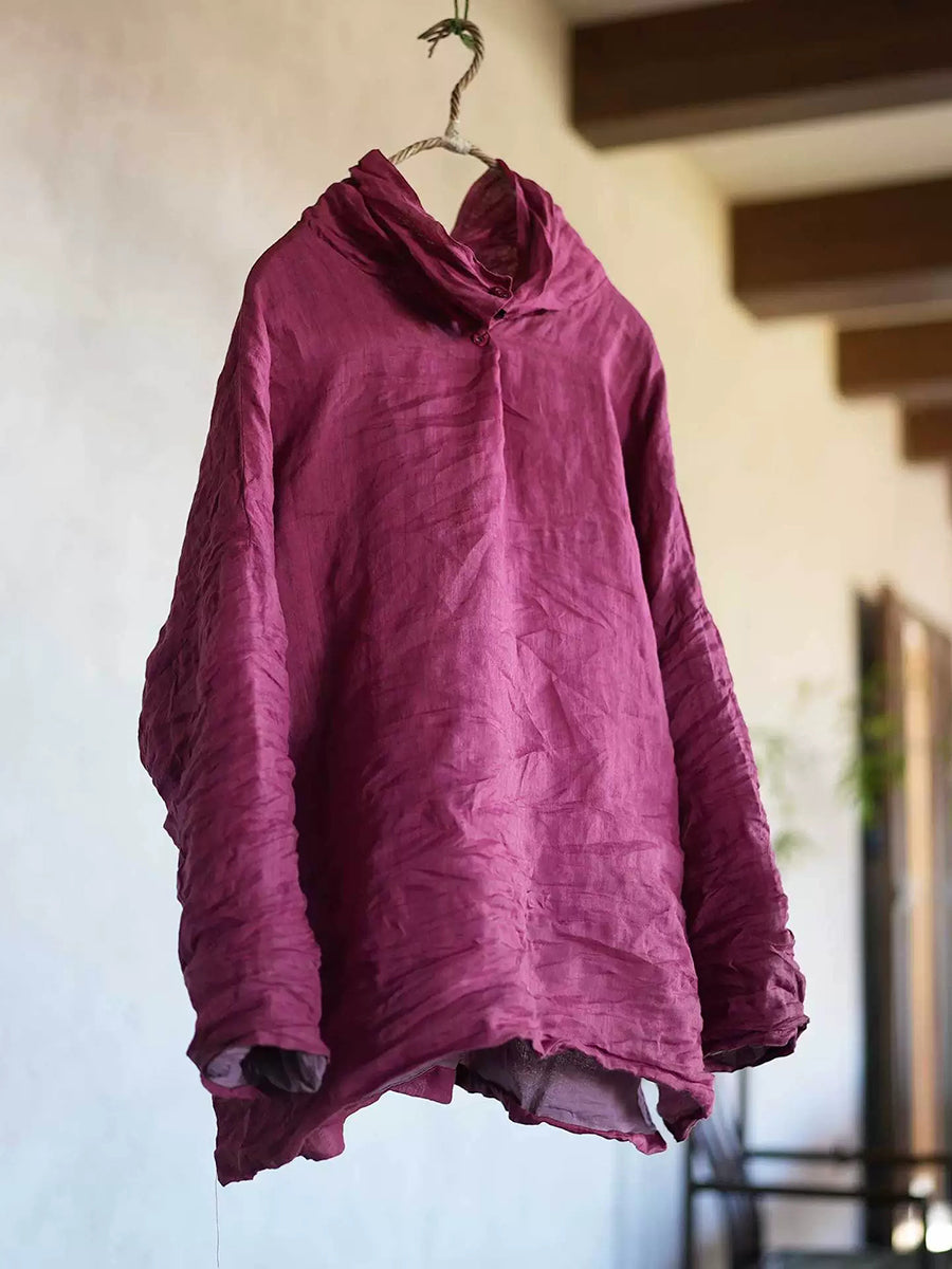 Blusa retro de primavera con cuello alto de ramio de color puro para mujer