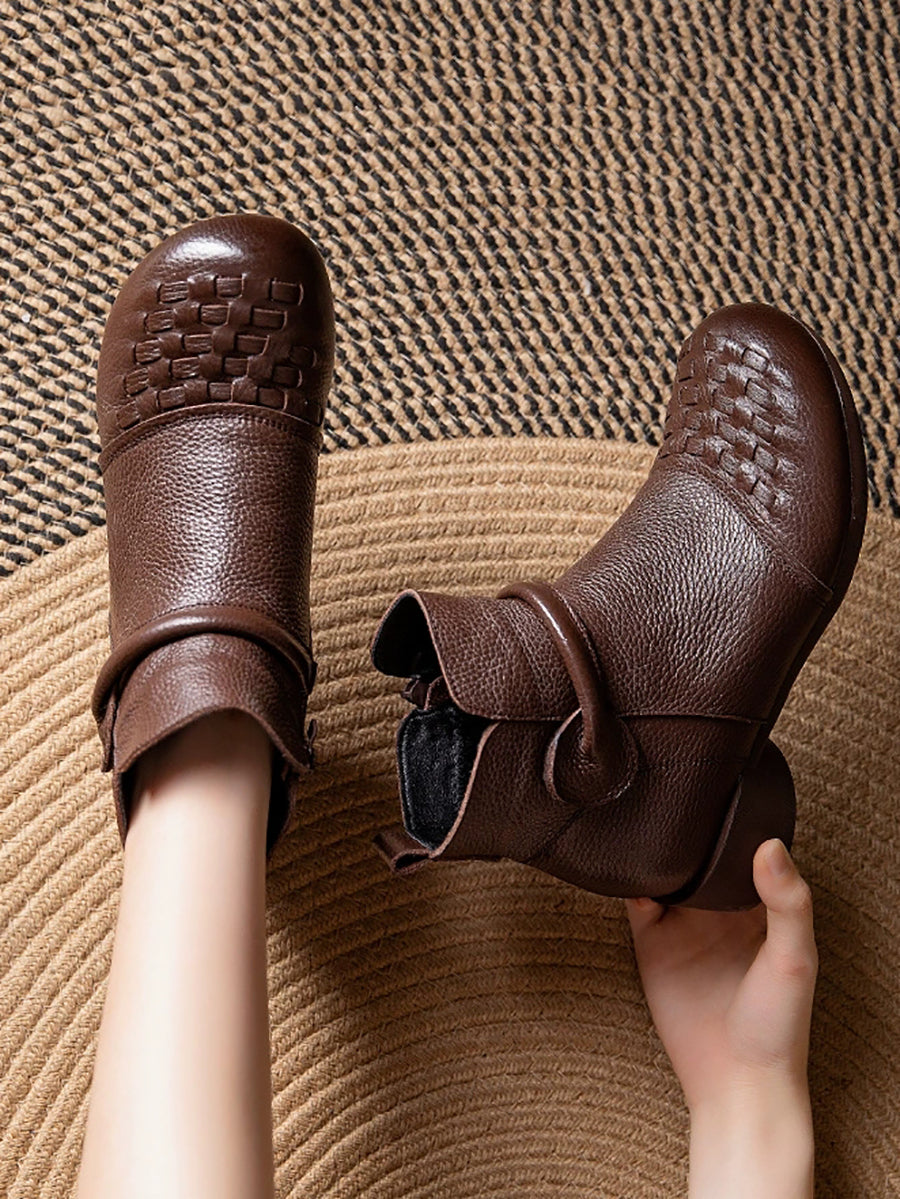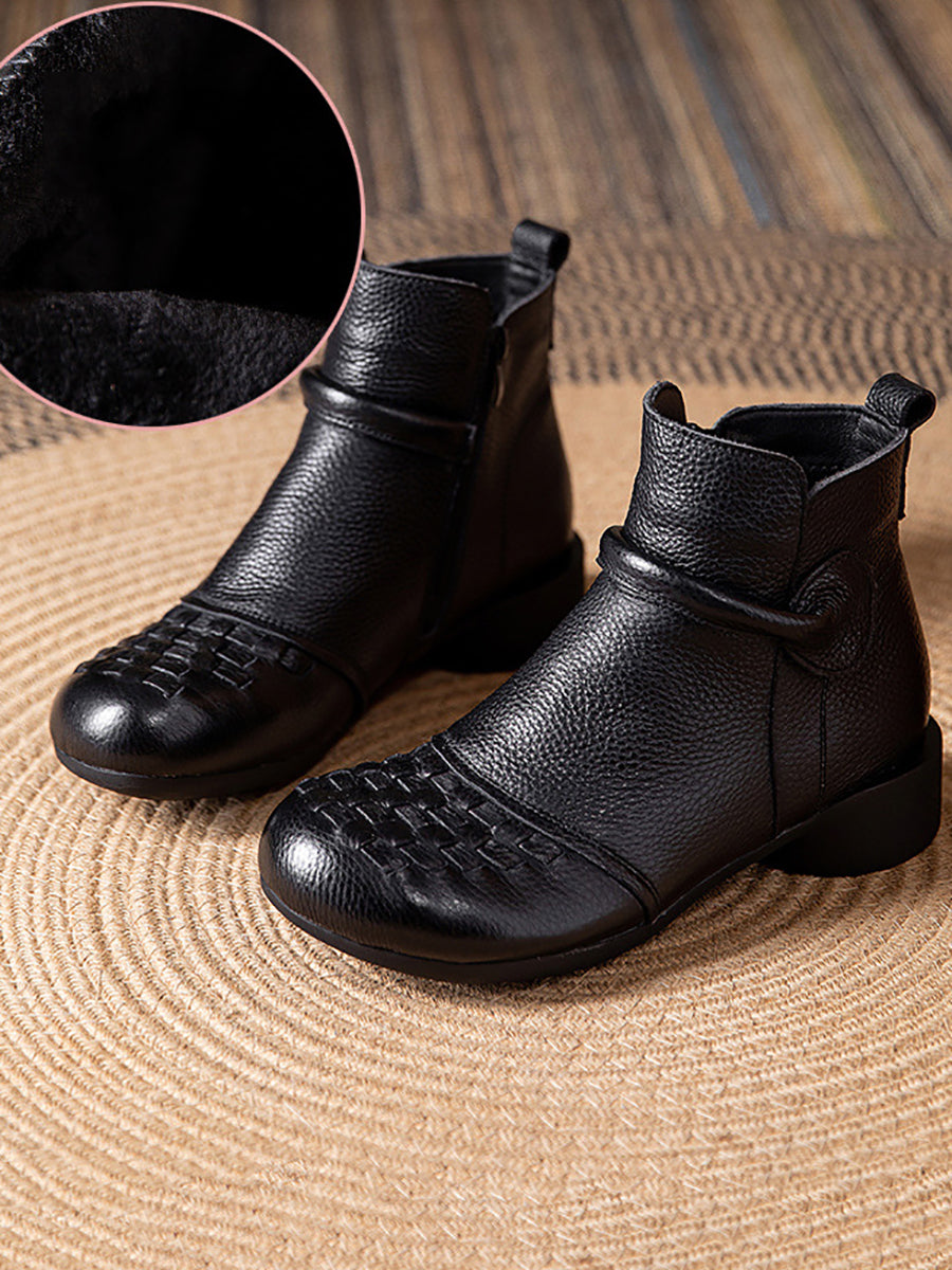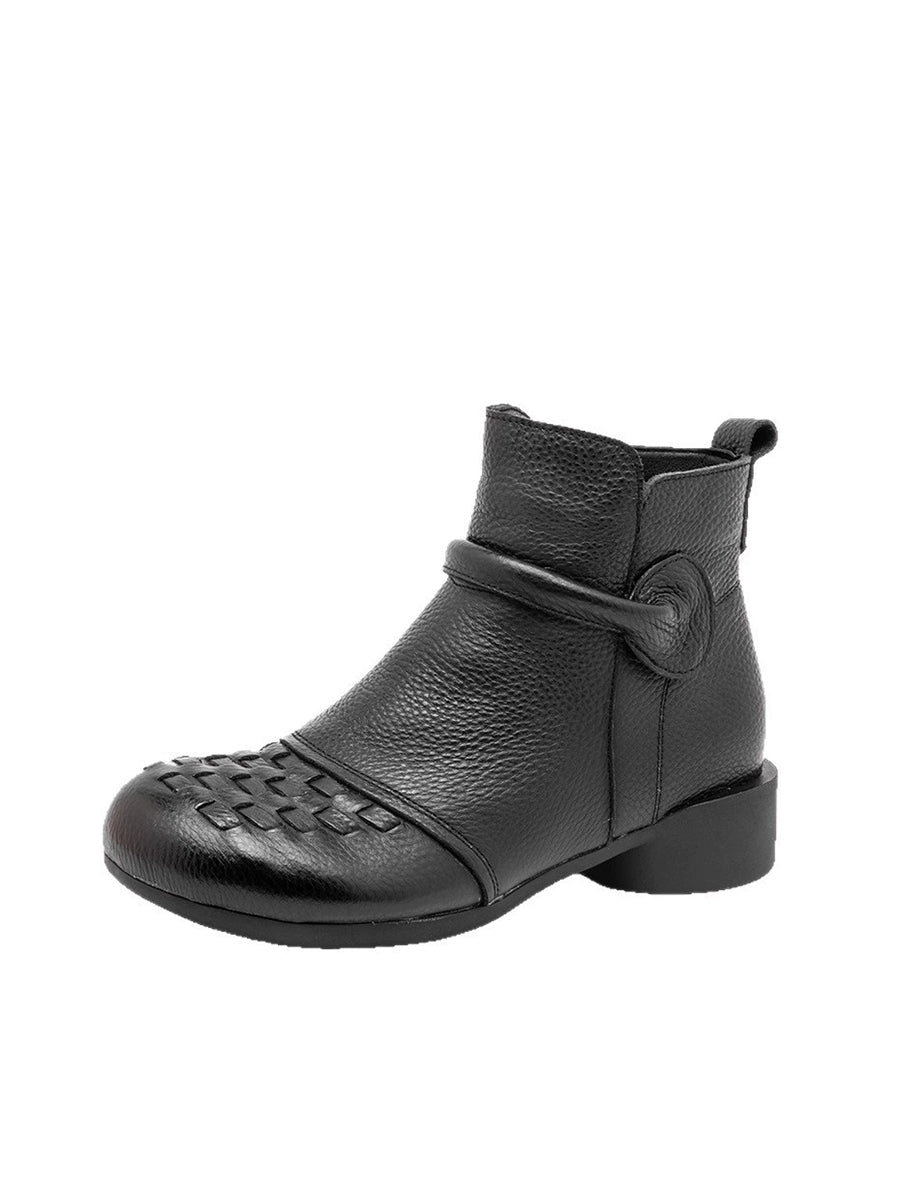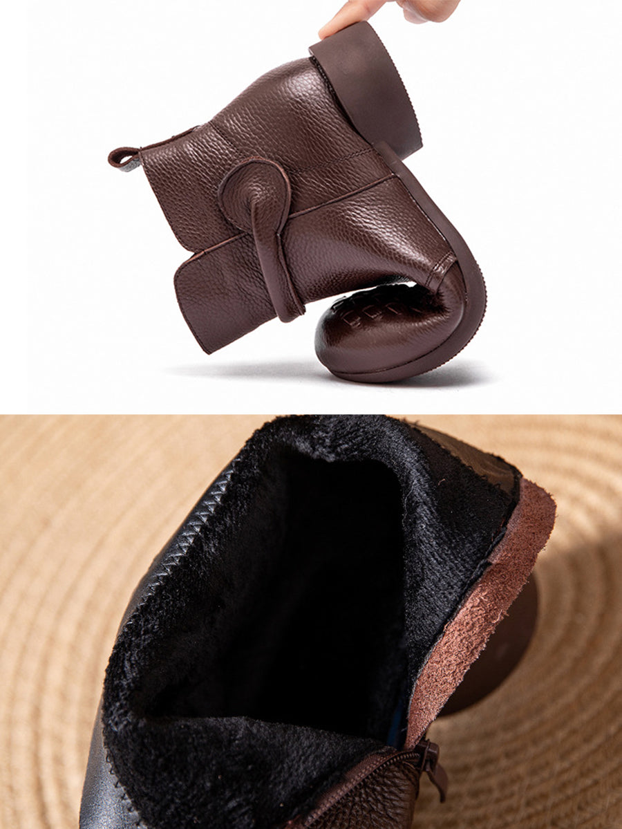 Botas de tacón bajo con forro polar de piel auténtica para mujer, de invierno