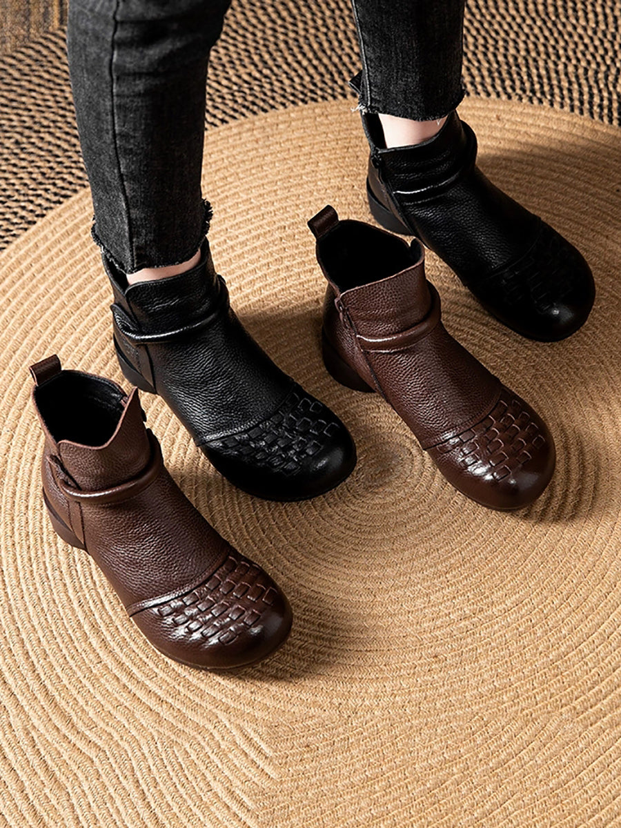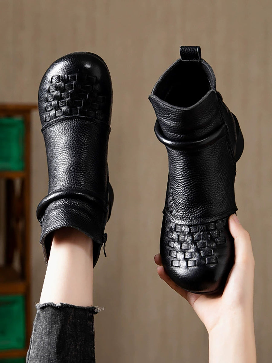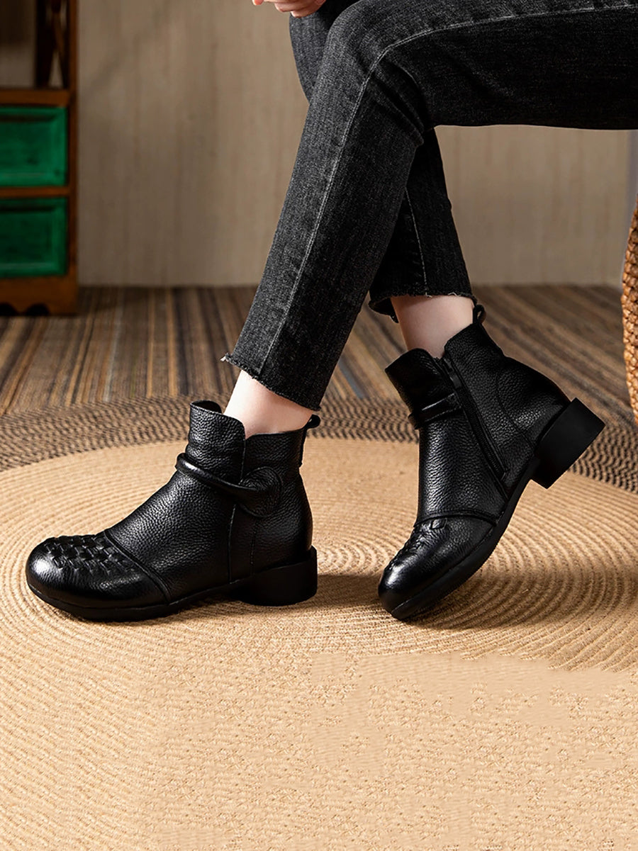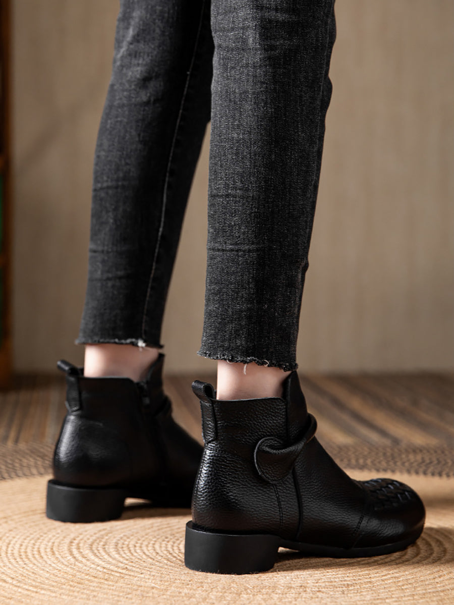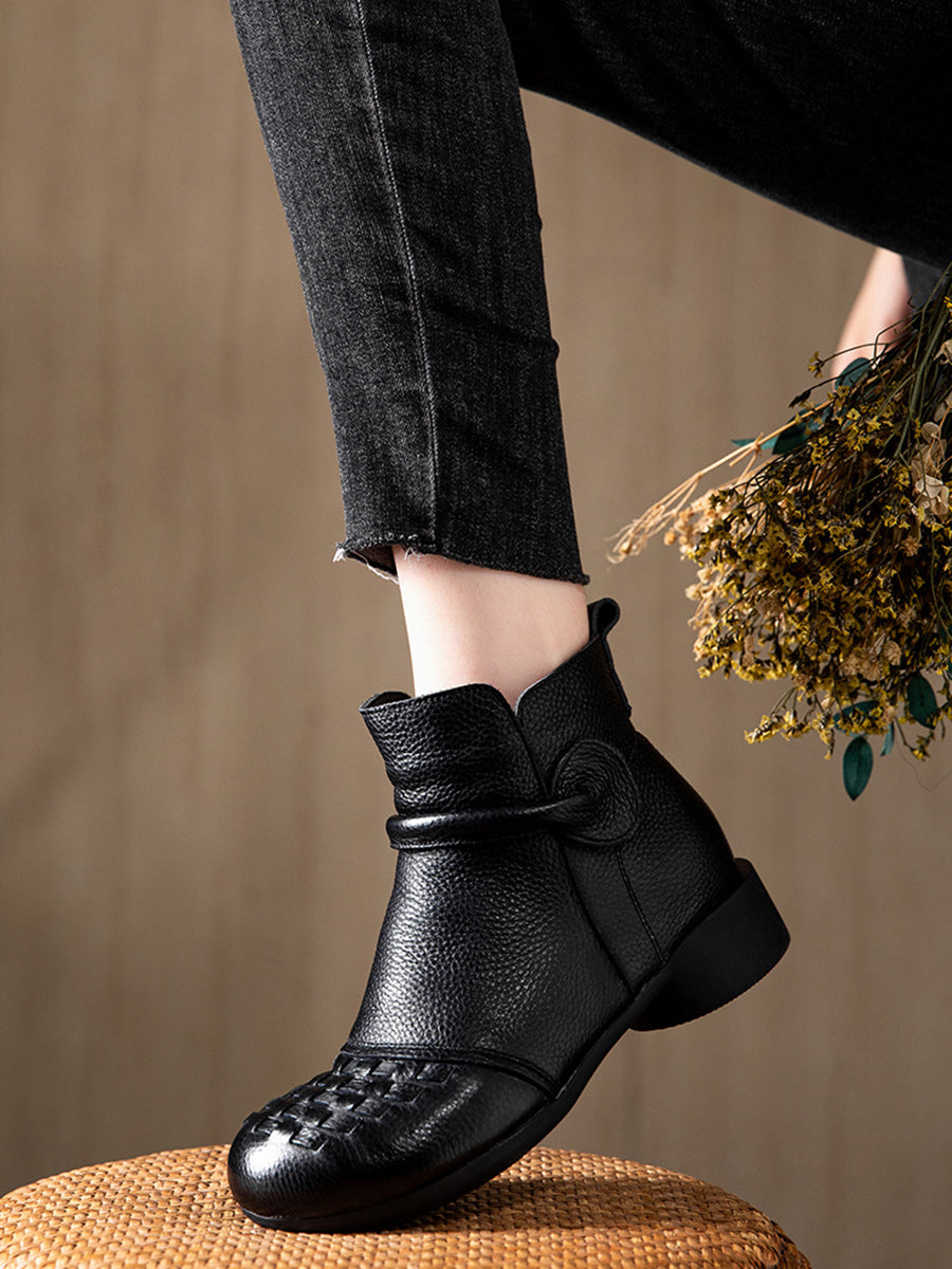 Botas de tacón bajo con forro polar de piel auténtica para mujer, de invierno