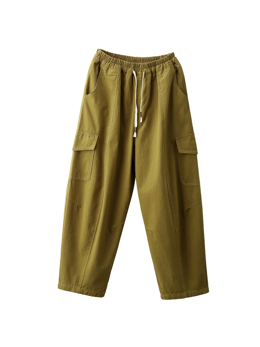 Pantalones harén de algodón de color puro informales de primavera para mujer