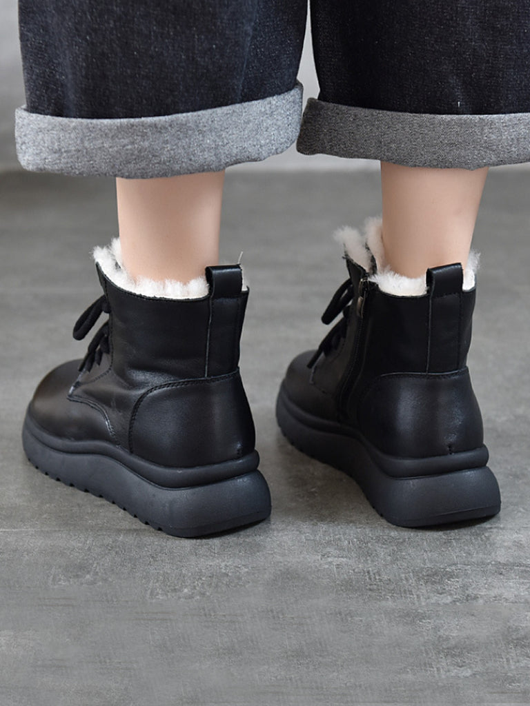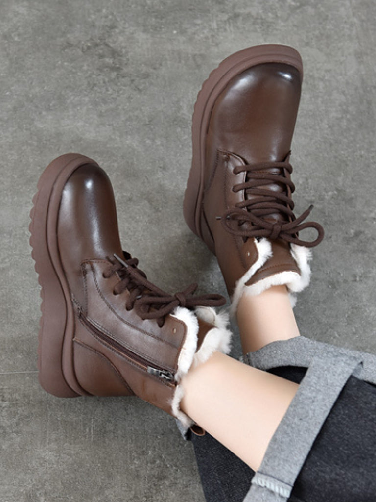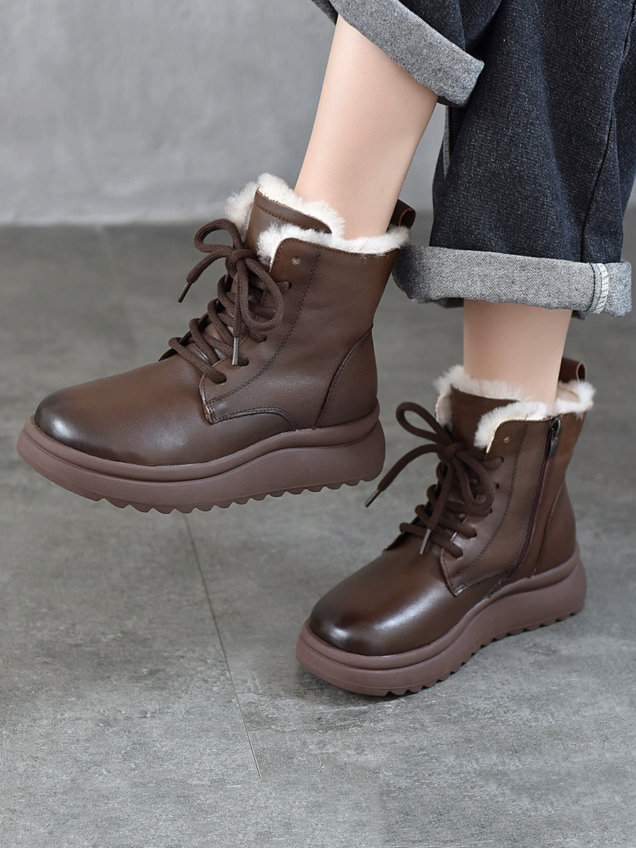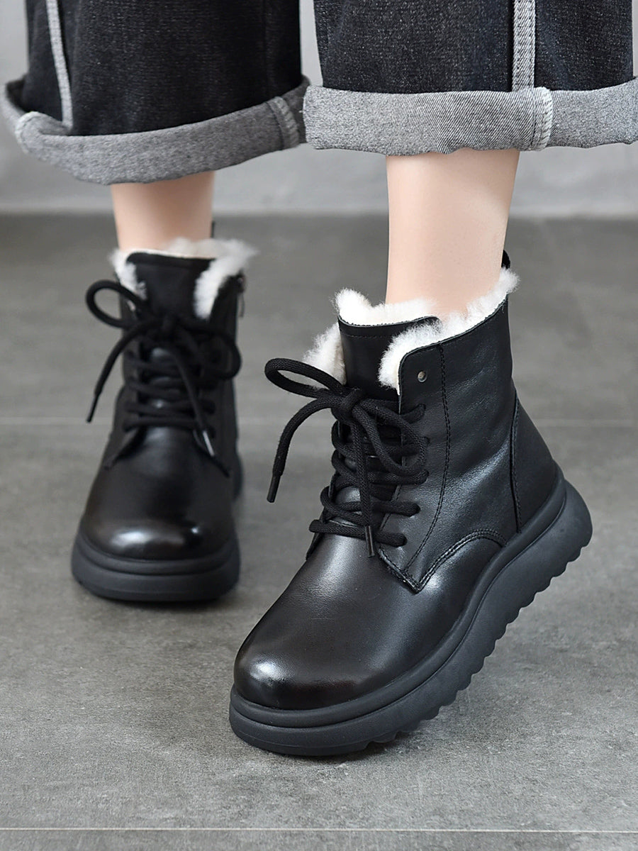 Botas de invierno para mujer de piel auténtica con forro polar