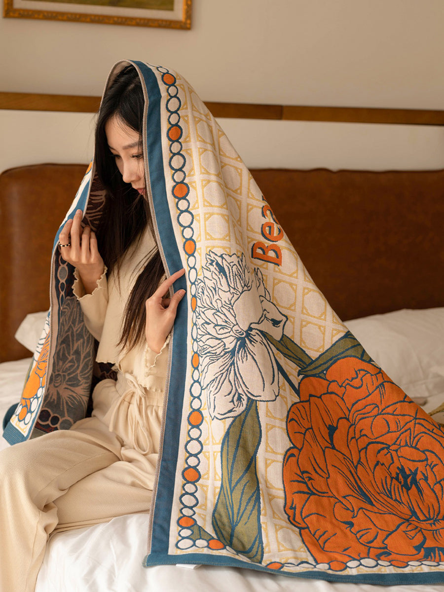 Toalla de baño con borlas para adultos, 100 % algodón, con diseño de flores
