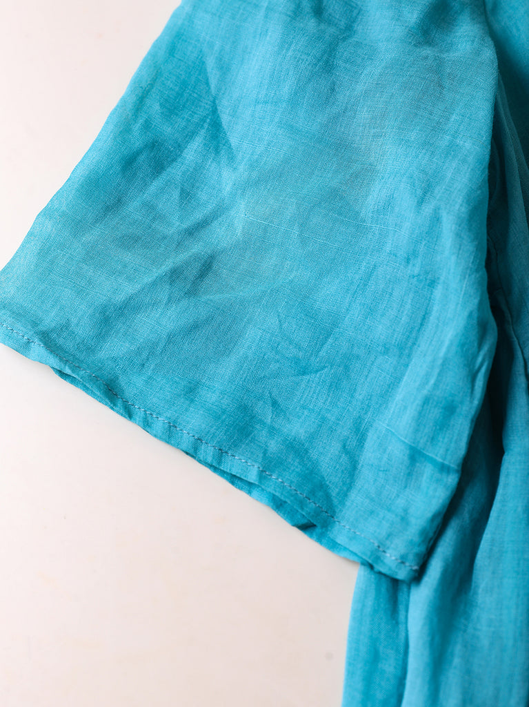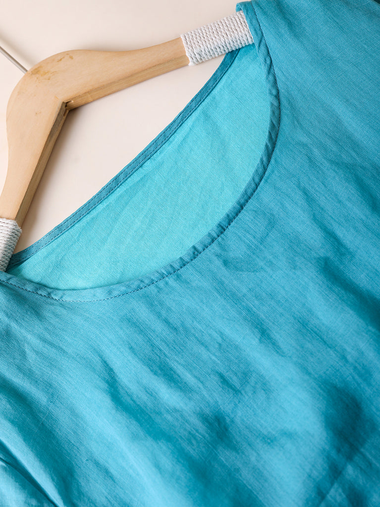 Vestido de verano para mujer, estilo artístico, color puro, cuello redondo, 100 % ramio
