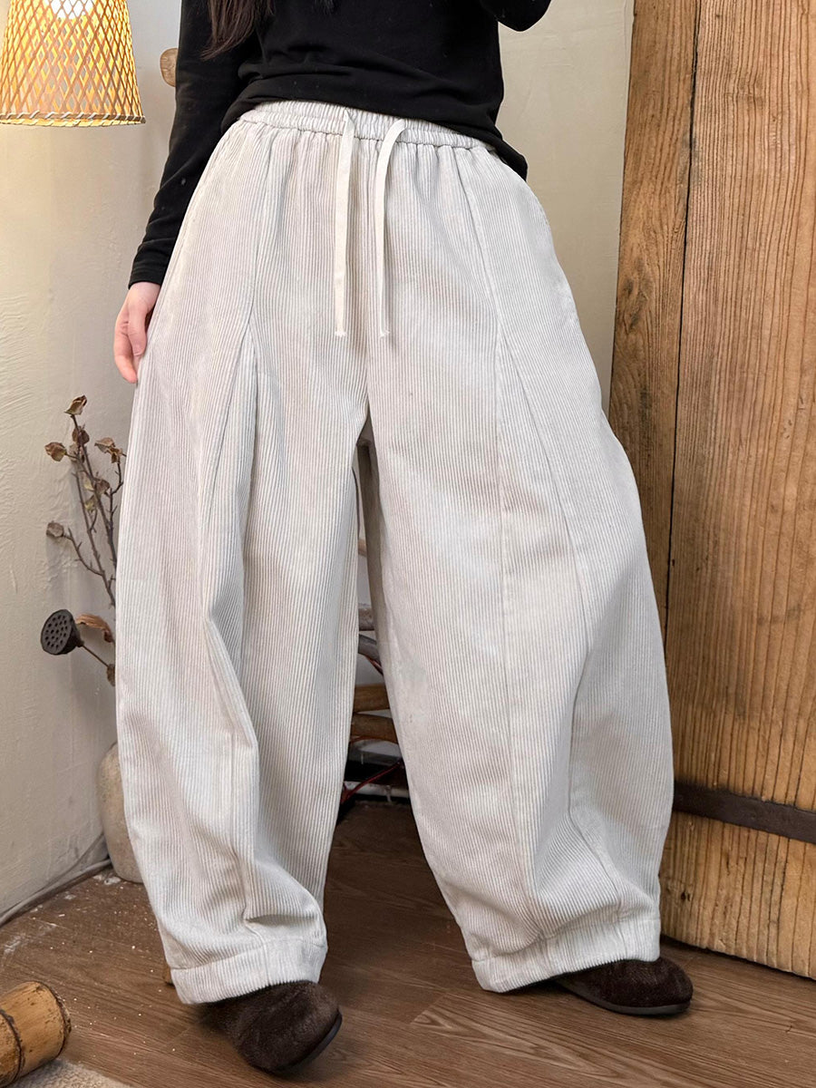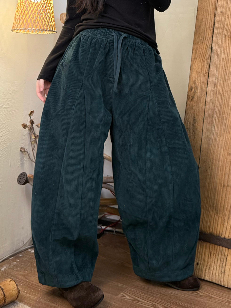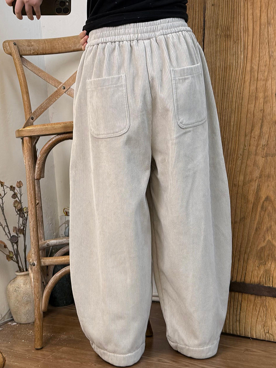 Pantalones harén informales de pana con forro polar para mujer, de invierno