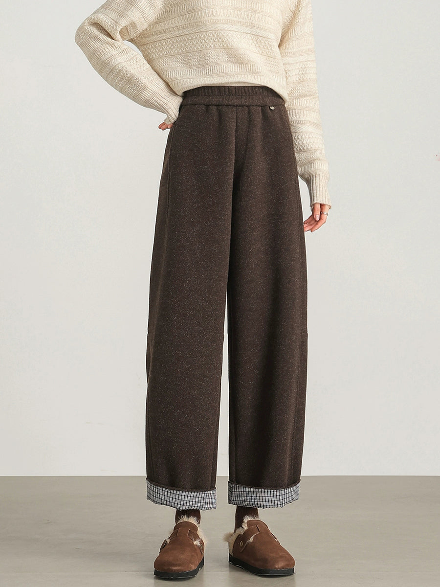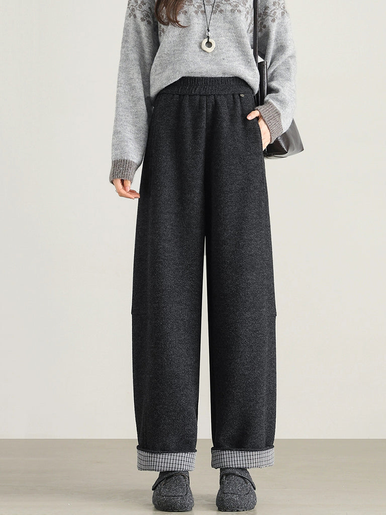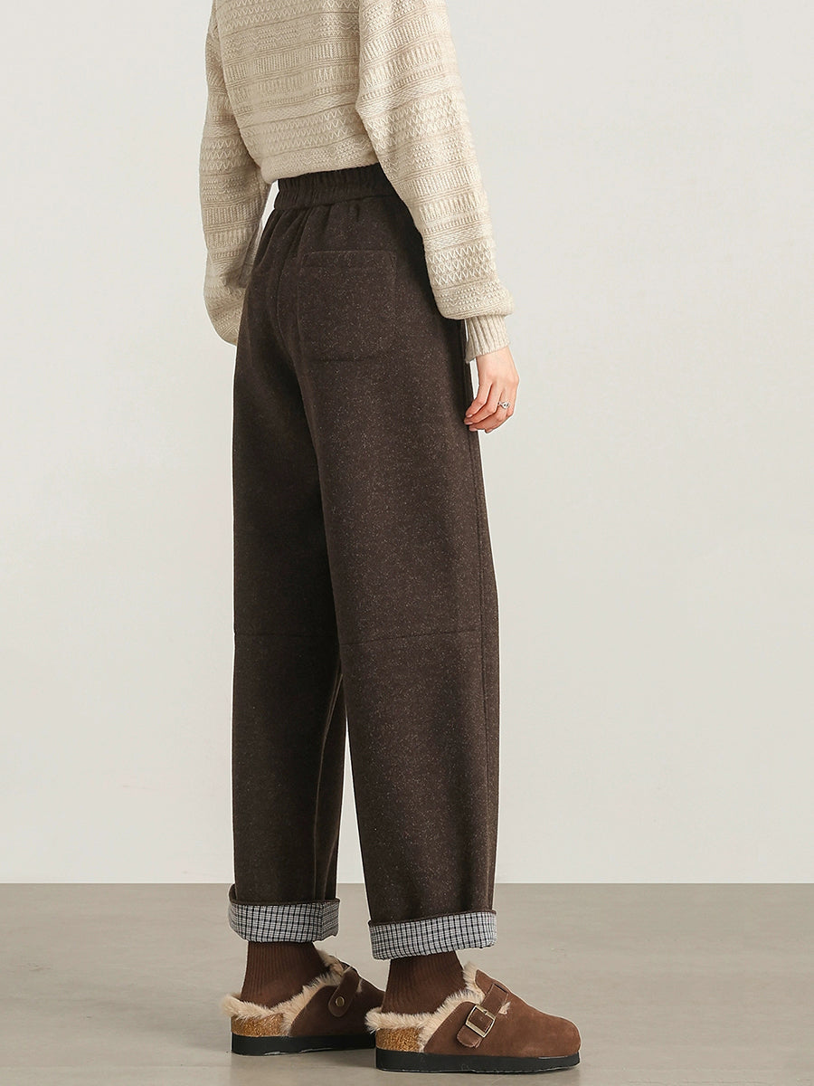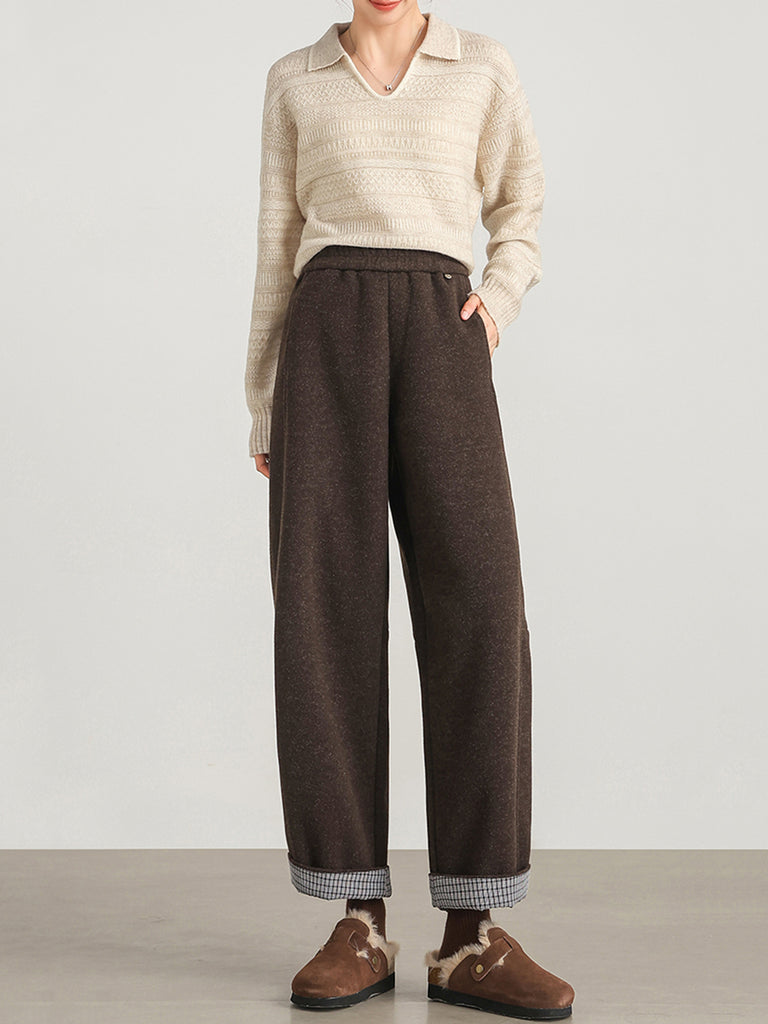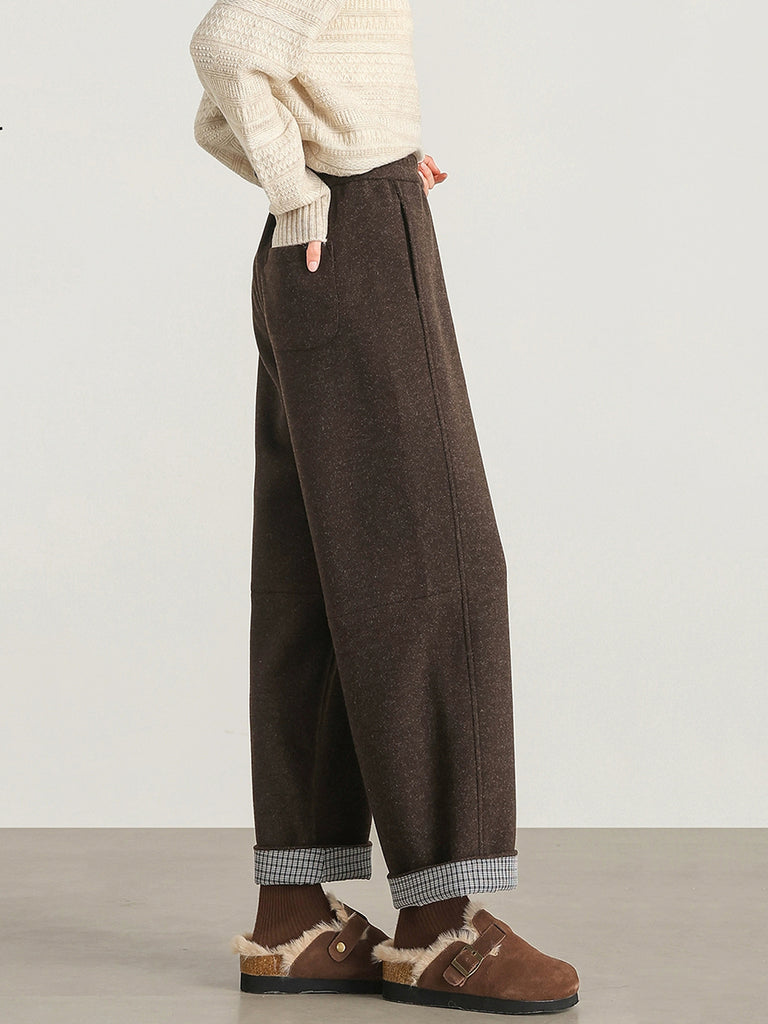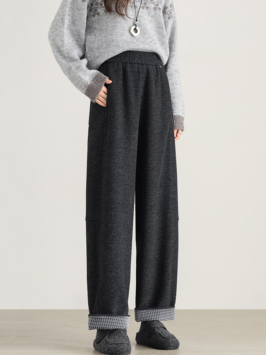 Pantalones rectos de invierno para mujer, de color liso y forrados de forro polar.