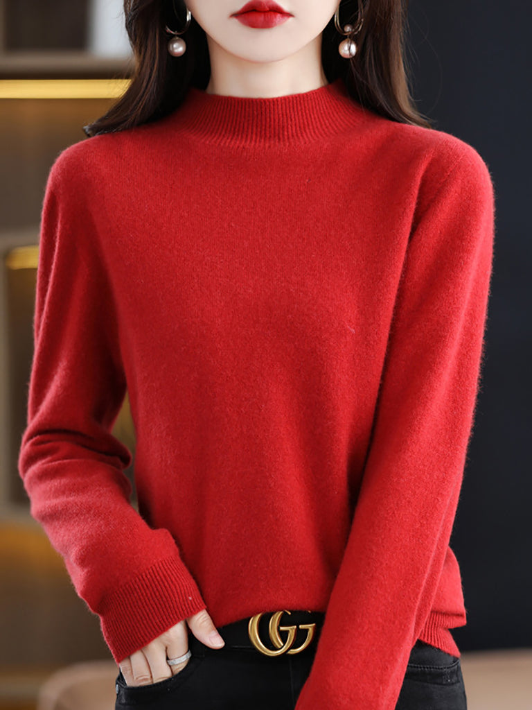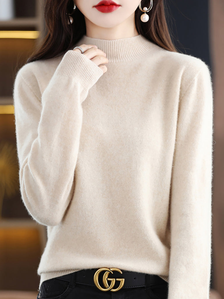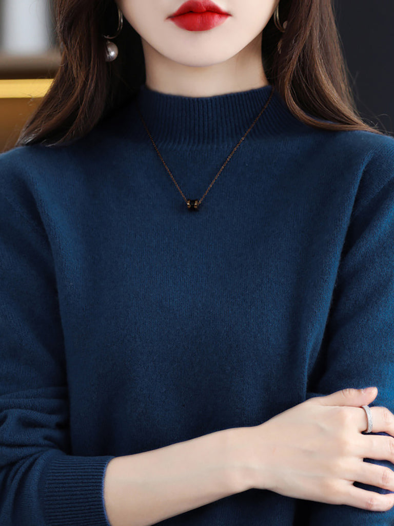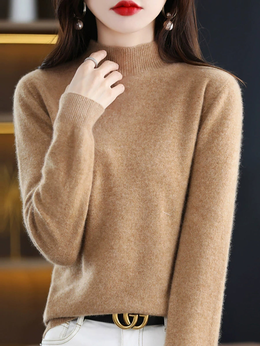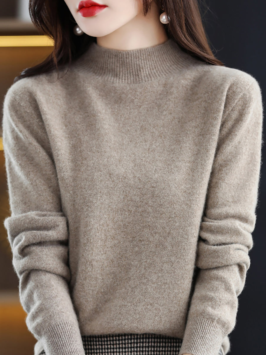 Suéter de lana de punto con cuello alto medio de invierno para mujer