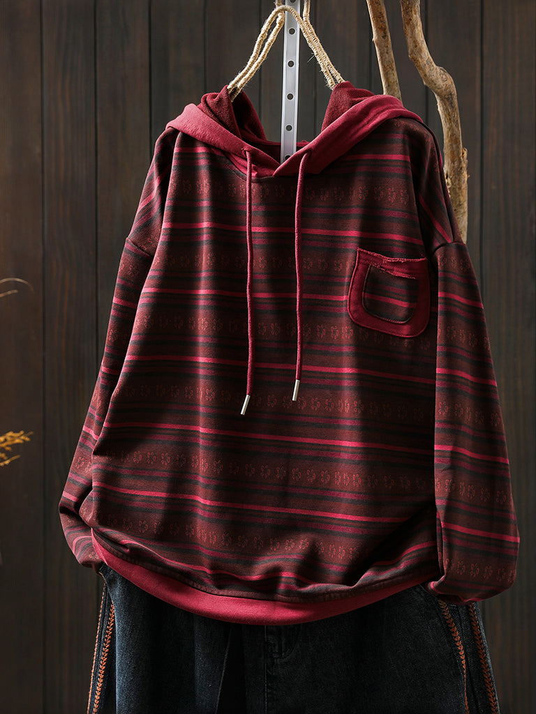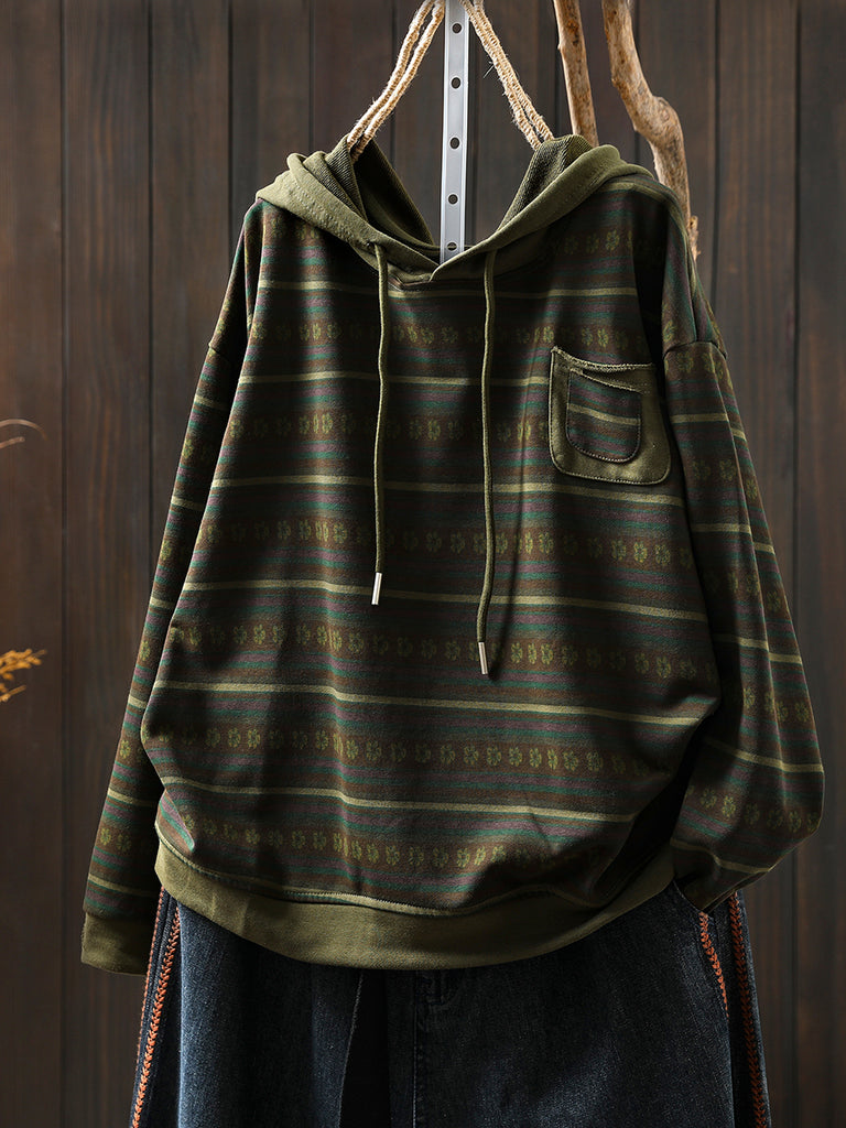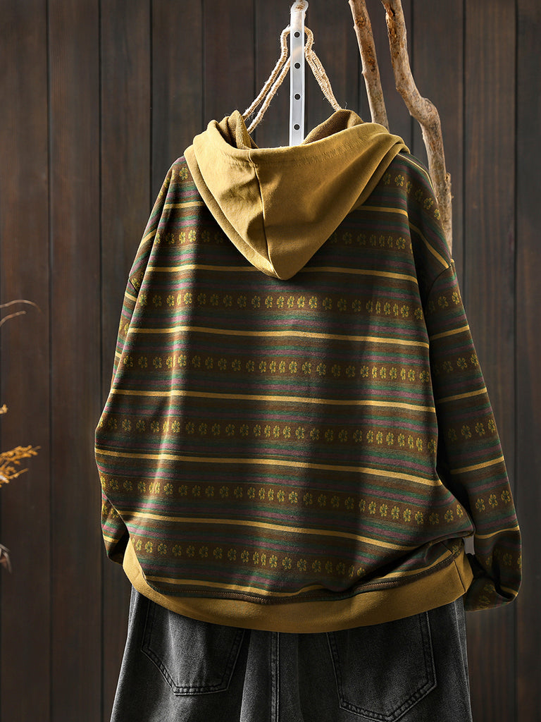 Sudadera con capucha 100 % algodón con rayas retro otoñales para mujer