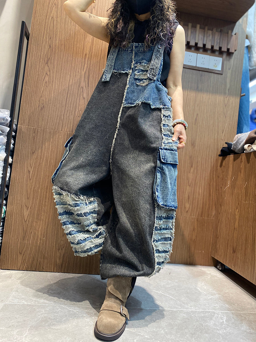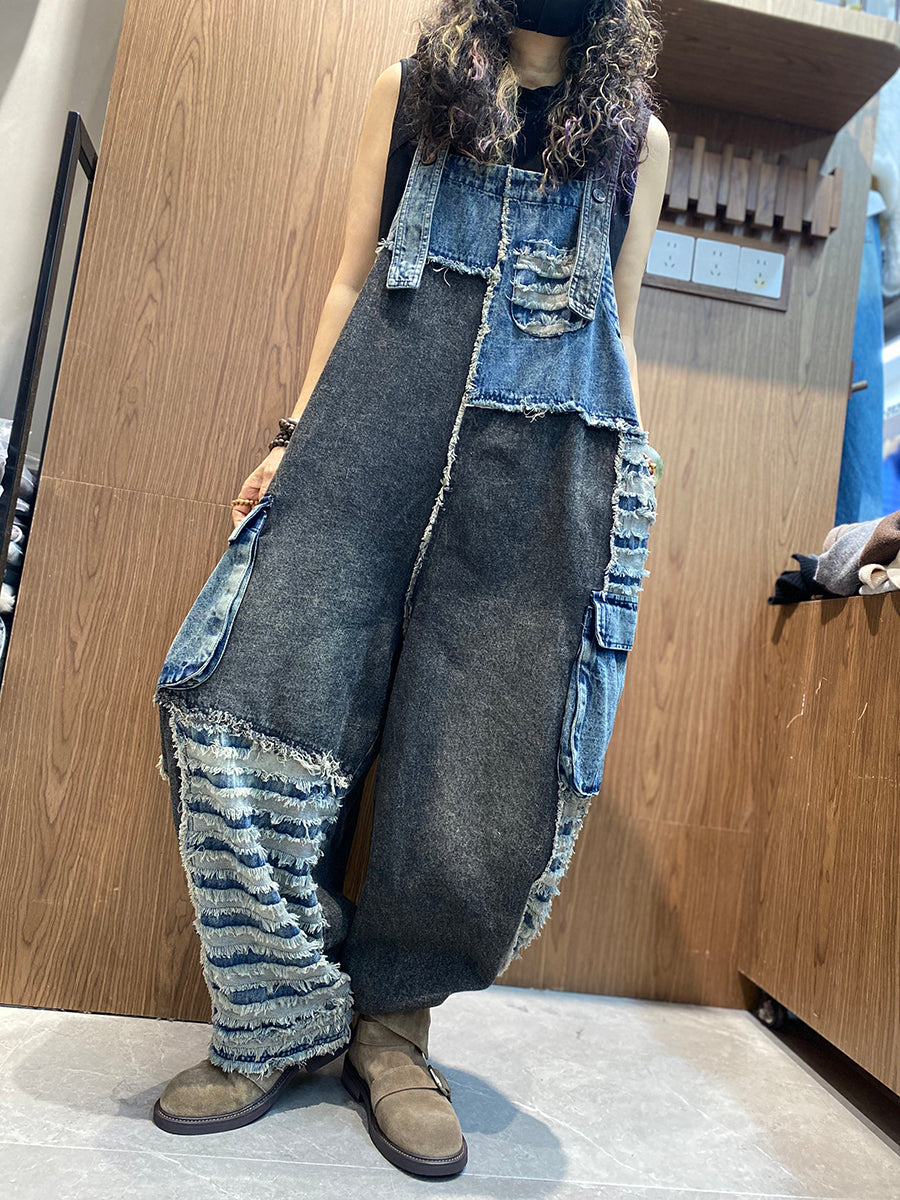 Monos vaqueros de patchwork retro de primavera para mujer