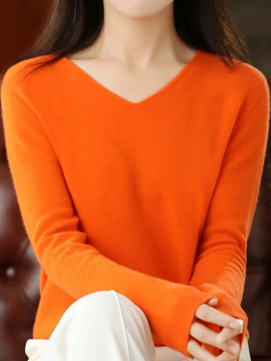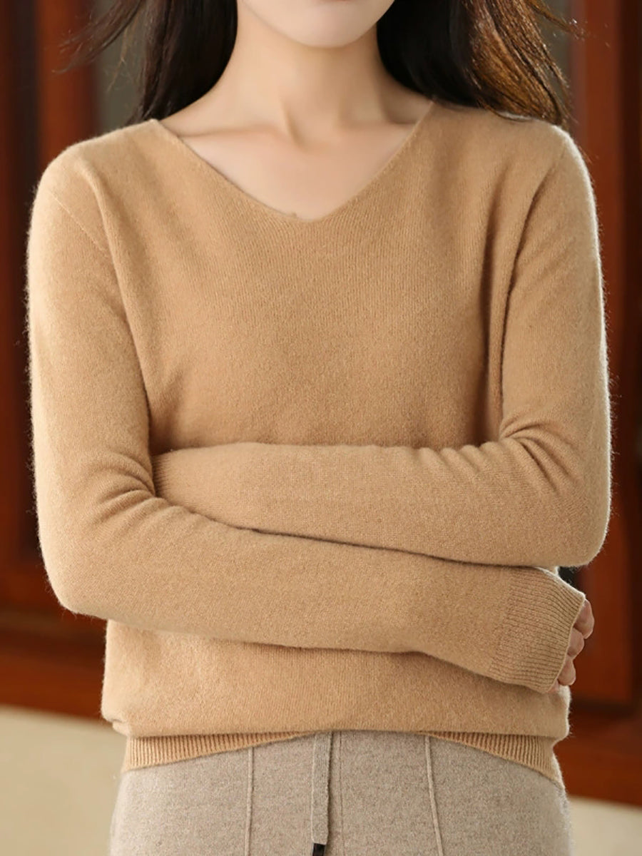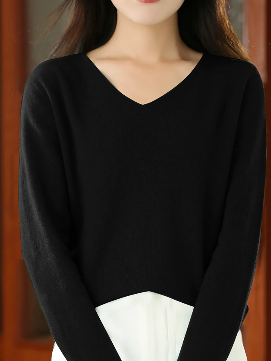 Suéter casual de primavera con cuello en V y color puro para mujer