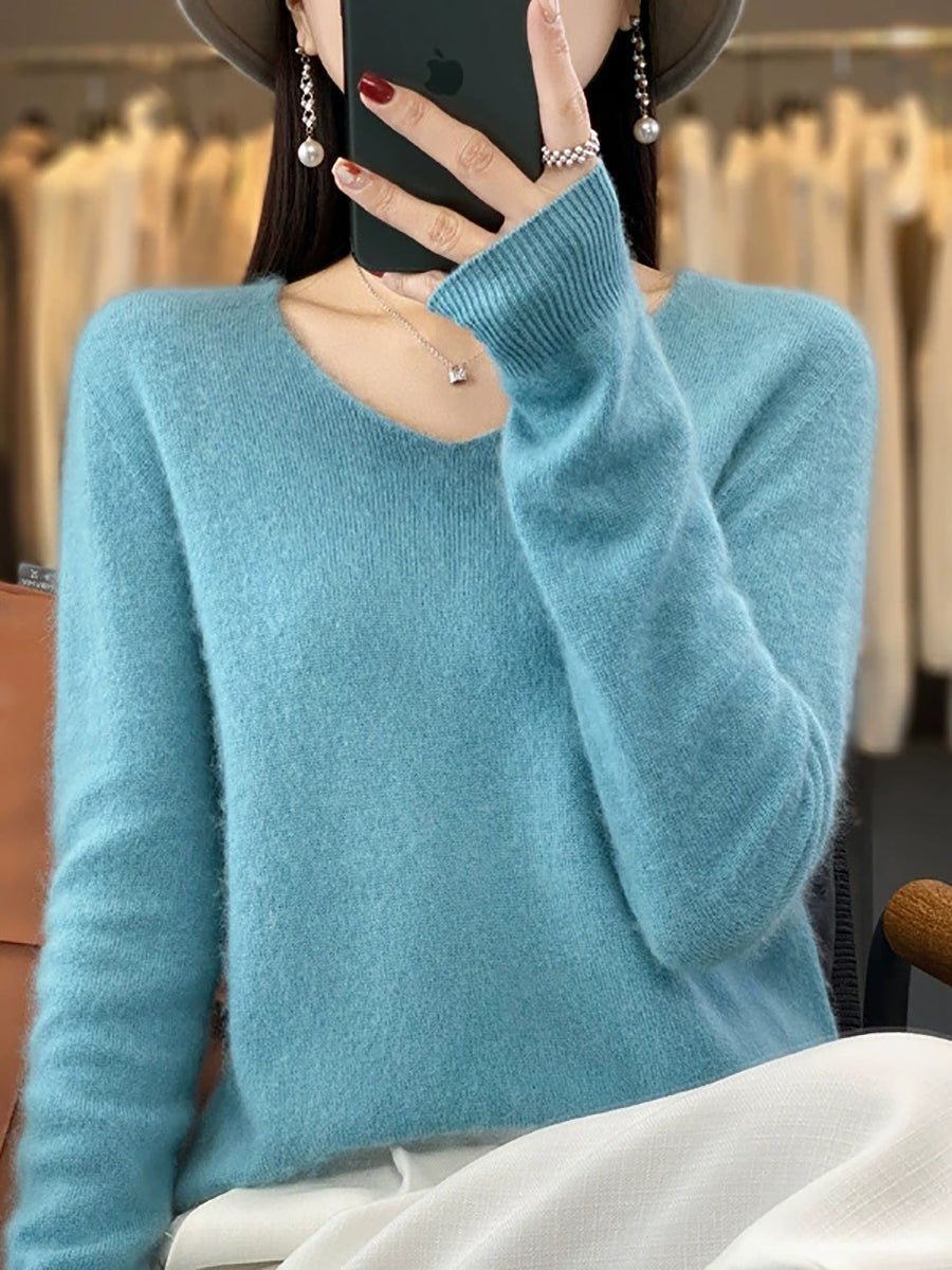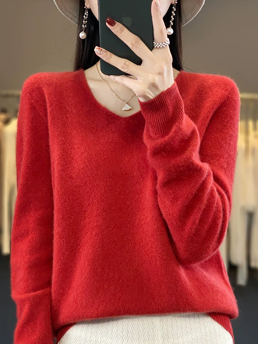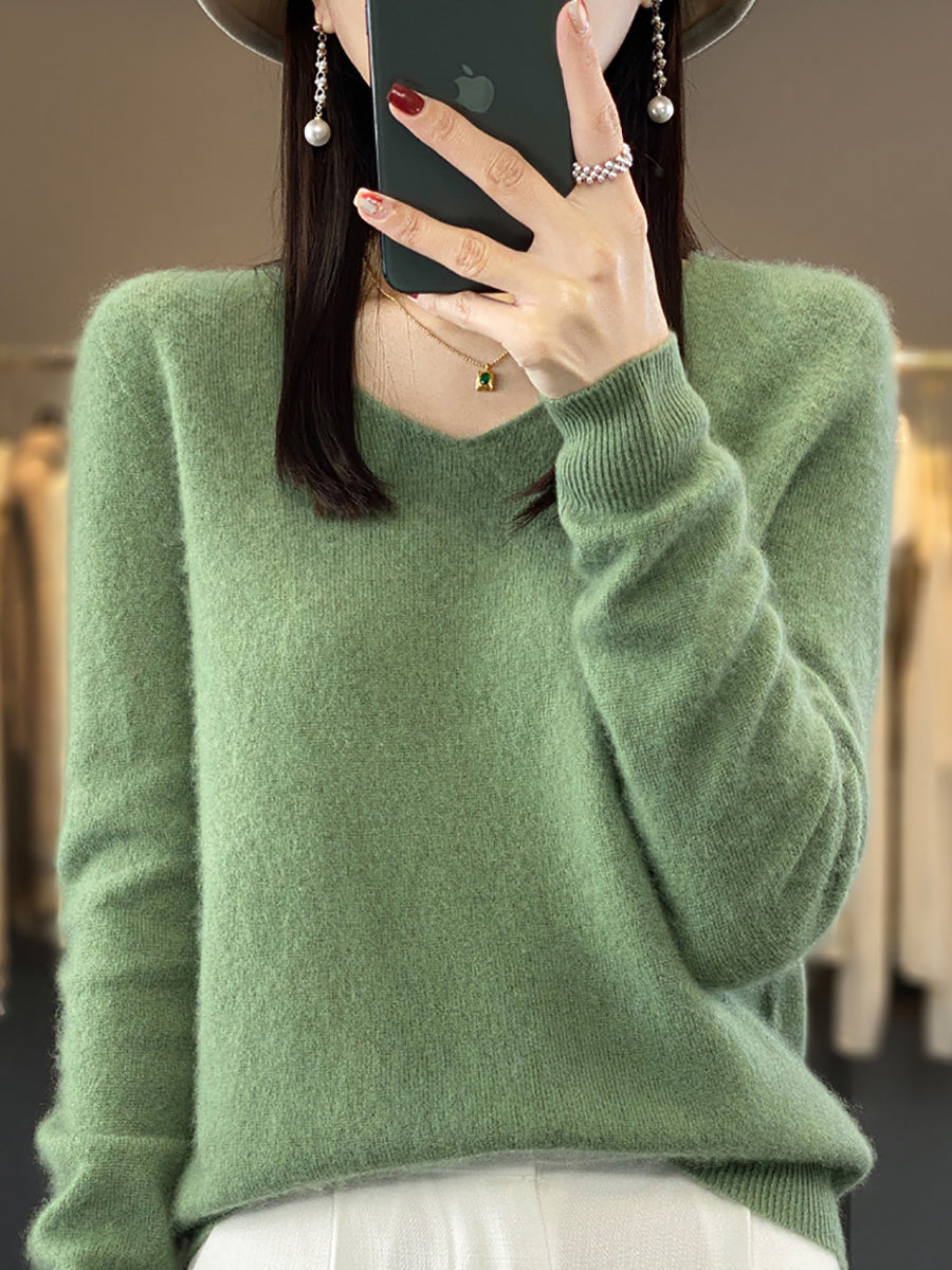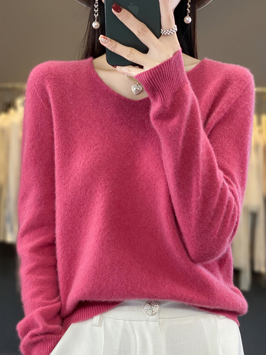 Suéter casual de primavera con cuello en V y color puro para mujer