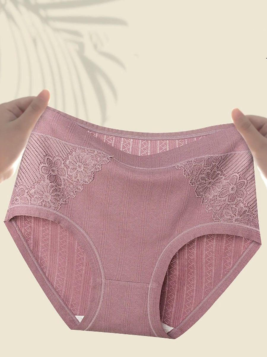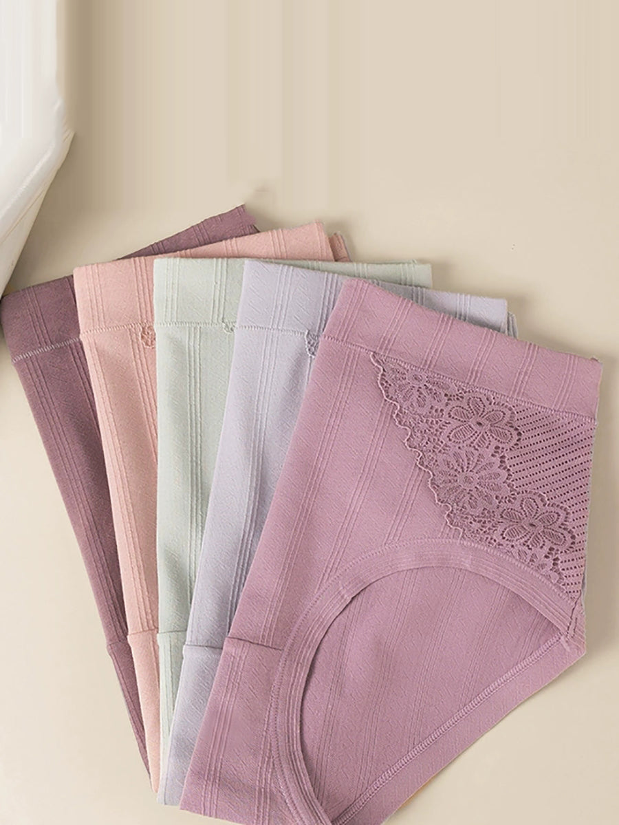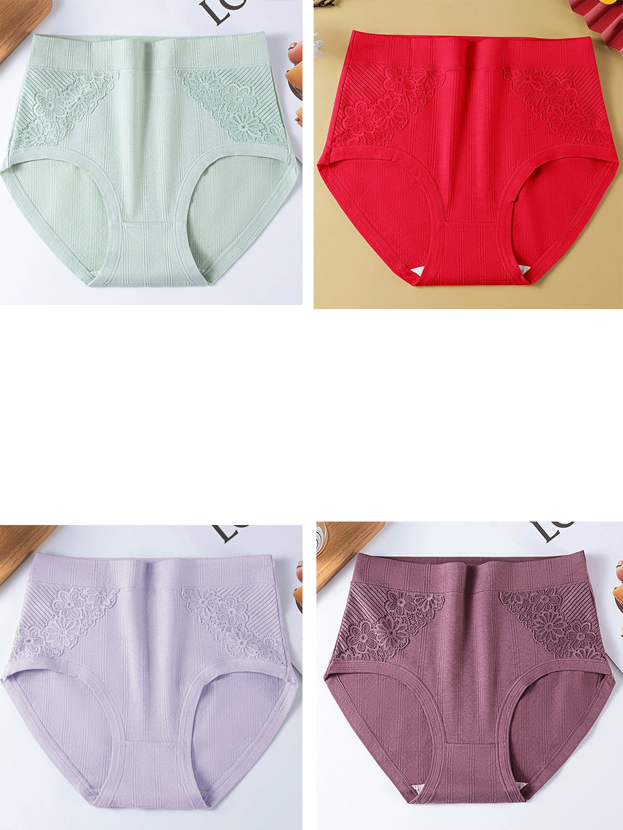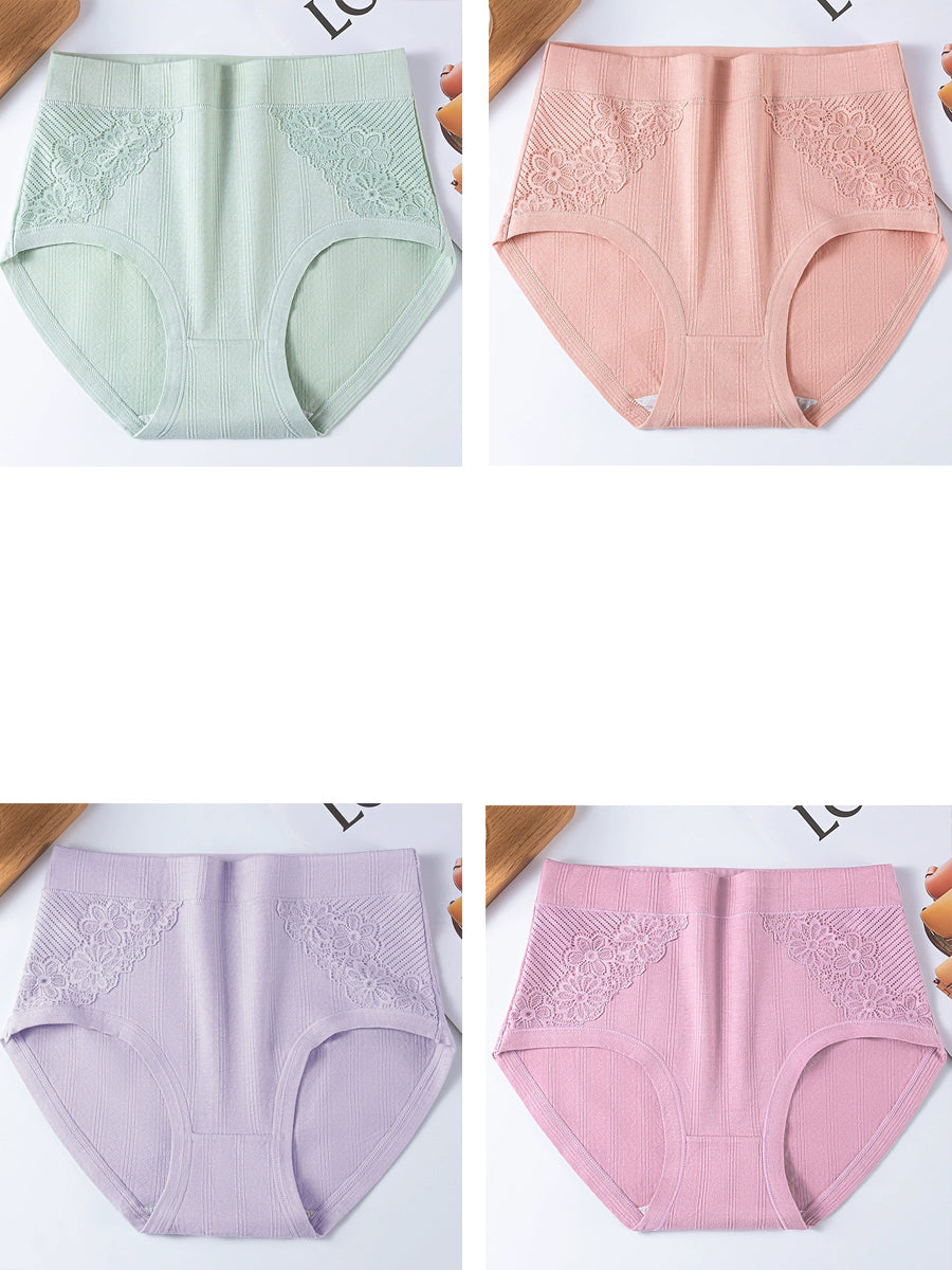 4 piezas de ropa interior de cintura alta con encaje floral artístico para mujer