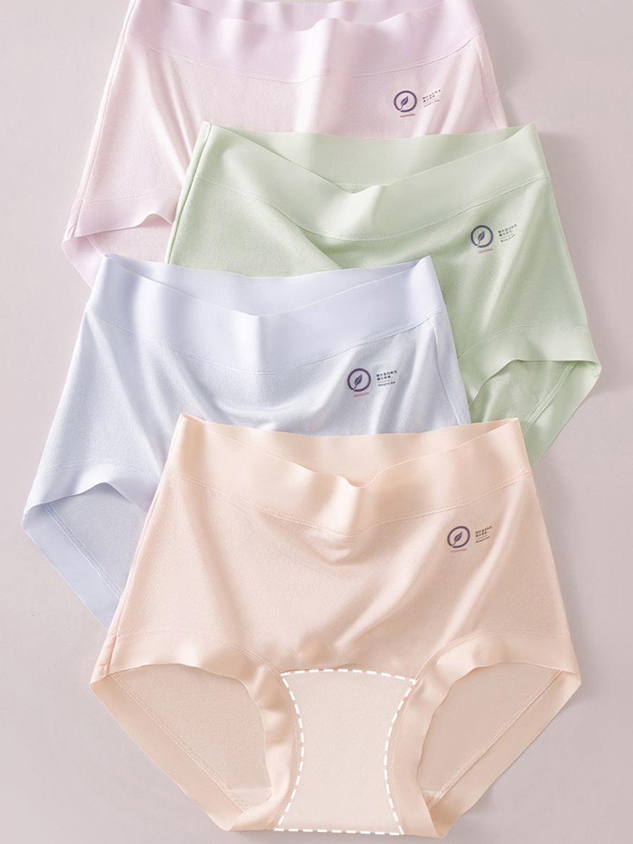 4 piezas de ropa interior casual de cintura alta de color puro para mujer