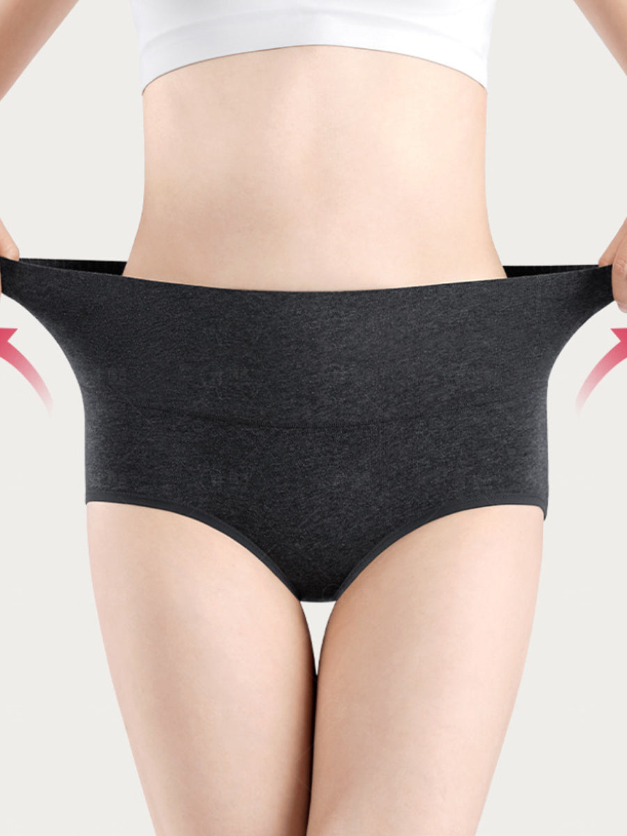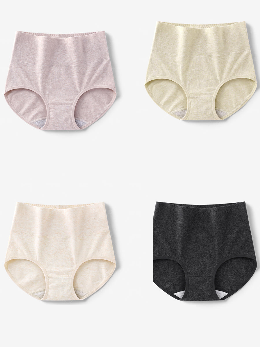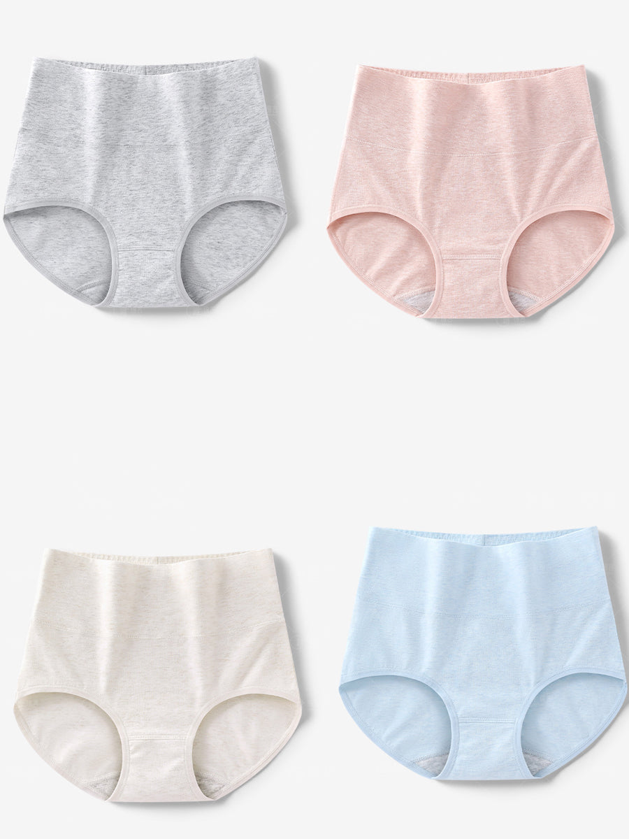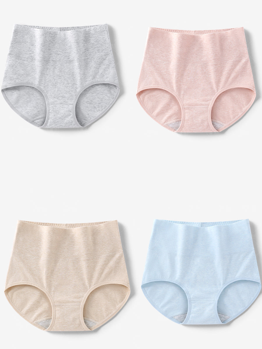 4 piezas de ropa interior de cintura alta de color puro para mujer