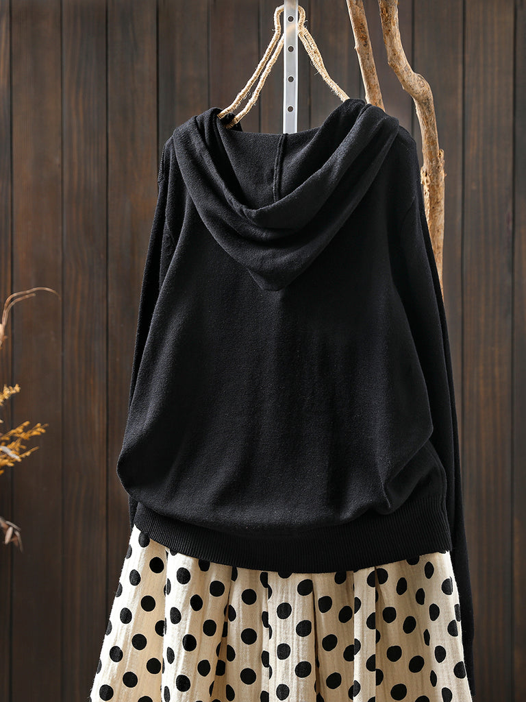 Blusa de punto con capucha de color puro informal de otoño para mujer