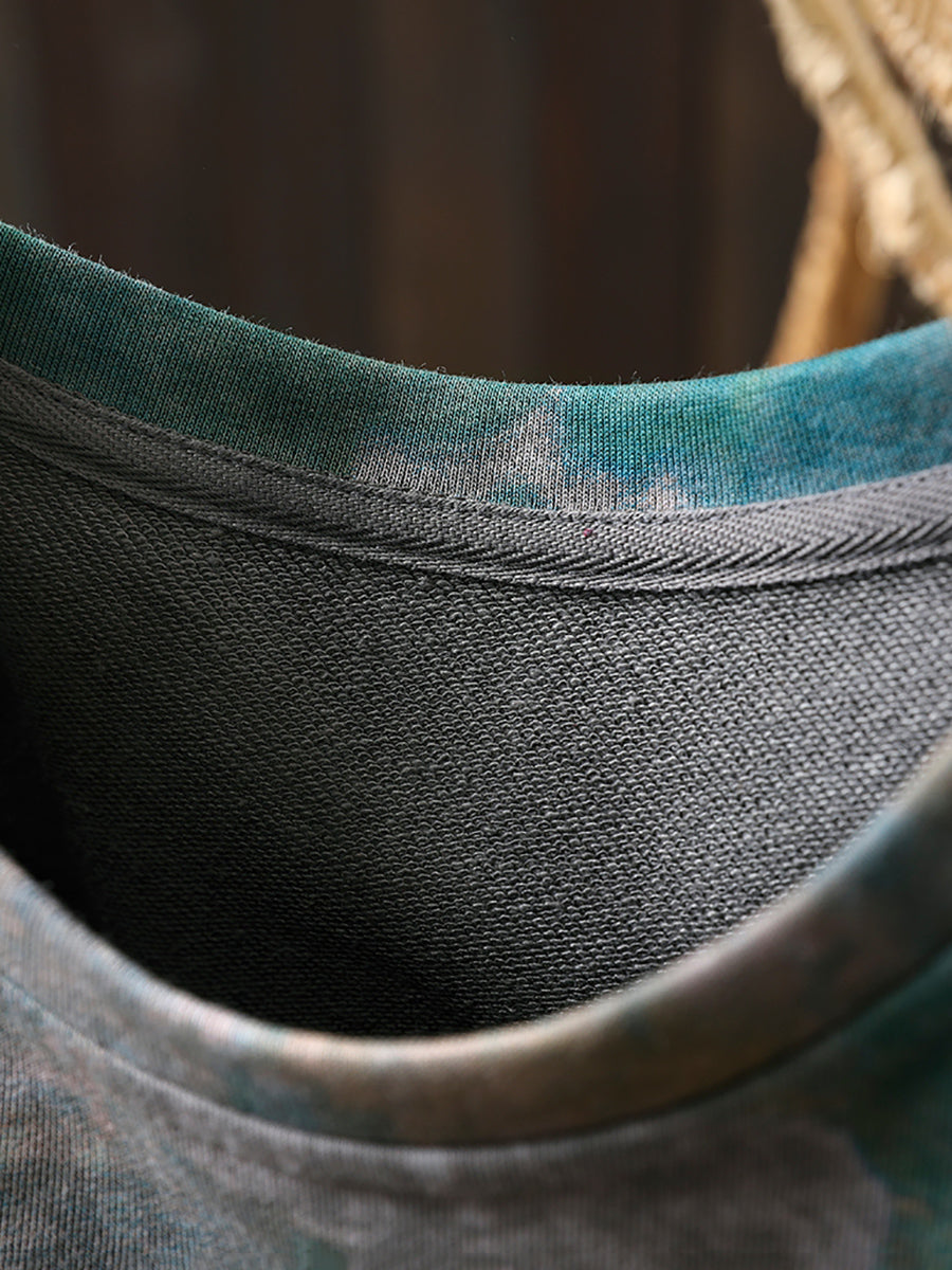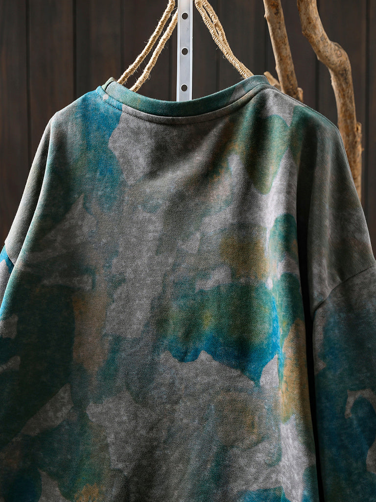 Blusa de otoño para mujer, 100 % algodón, cuello redondo y efecto tie-dye
