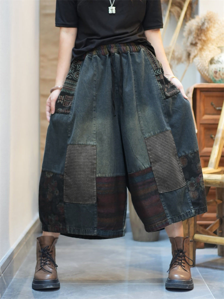 Pantalones anchos de mezclilla con parches de verano para mujer