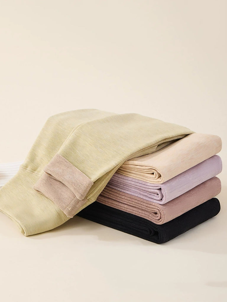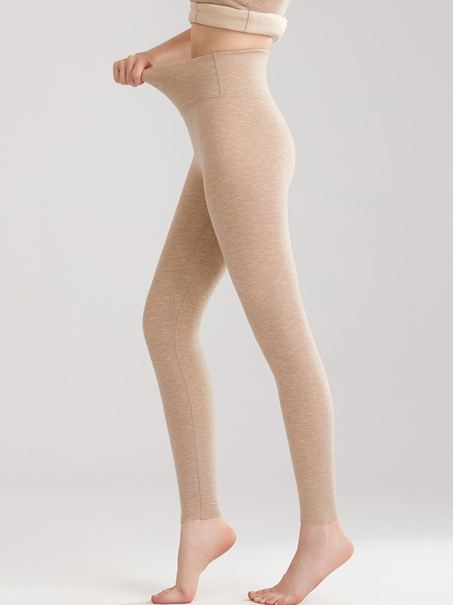 Leggings d'hiver chauds pour femmes, couleur unie, taille haute