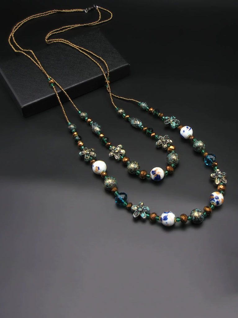 Collier pull tissé en céramique et perles de Bohême pour femme