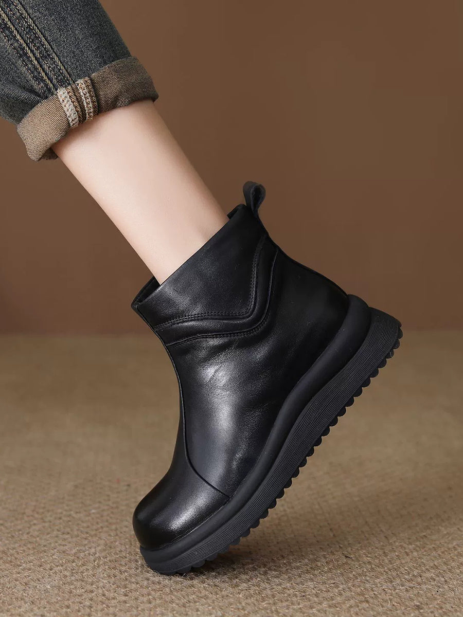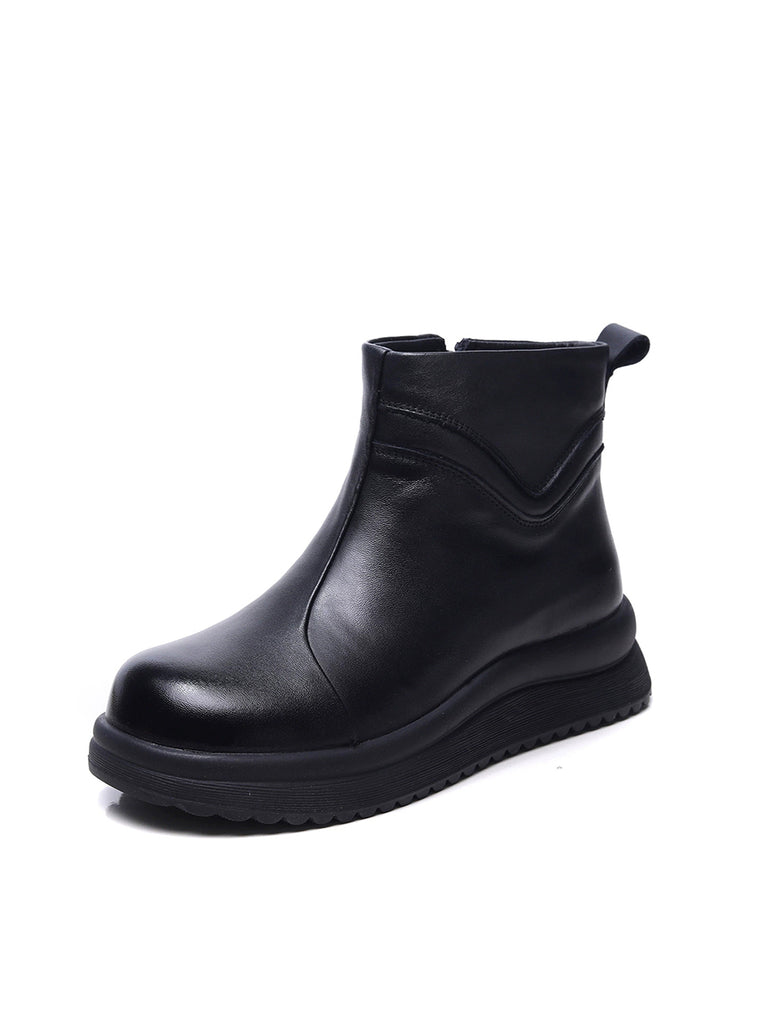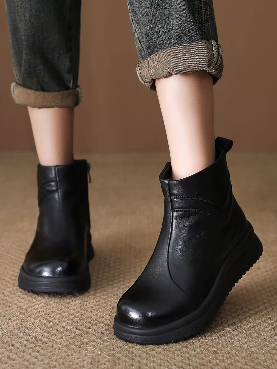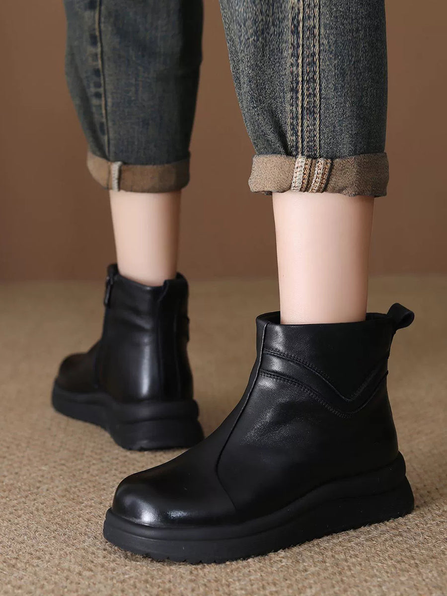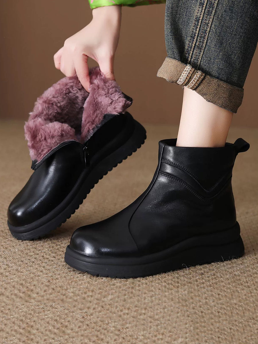 Bottines pour femmes en cuir véritable doublées de polaire