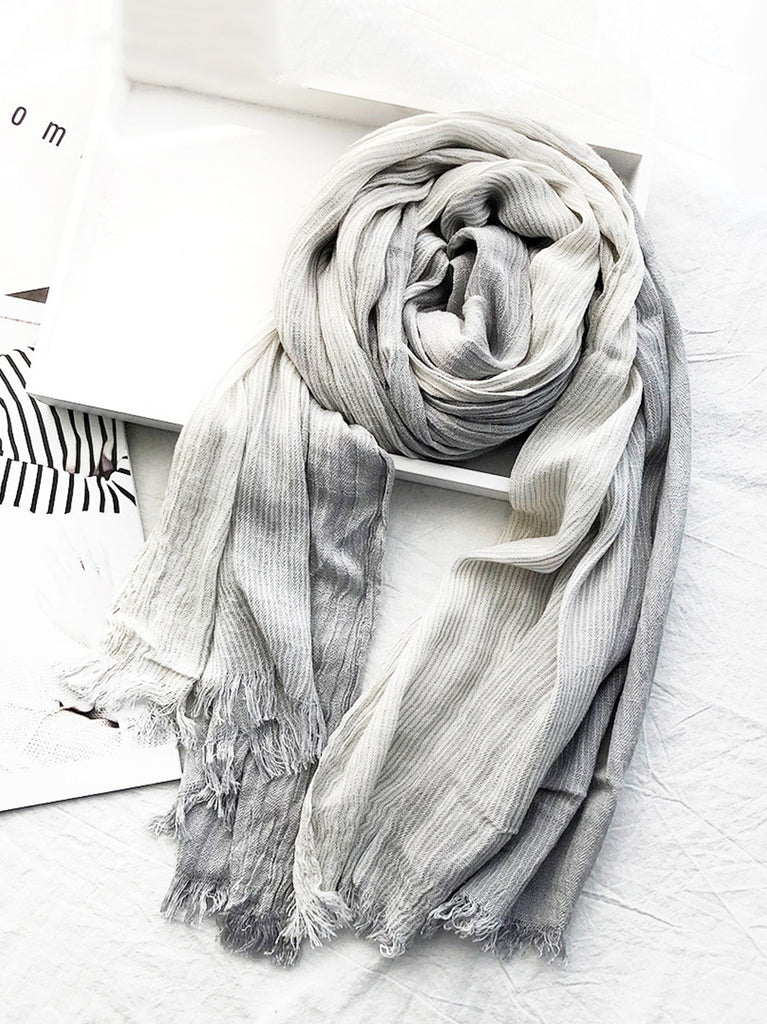 Écharpe douce à pampilles en coton à rayures artistiques de printemps