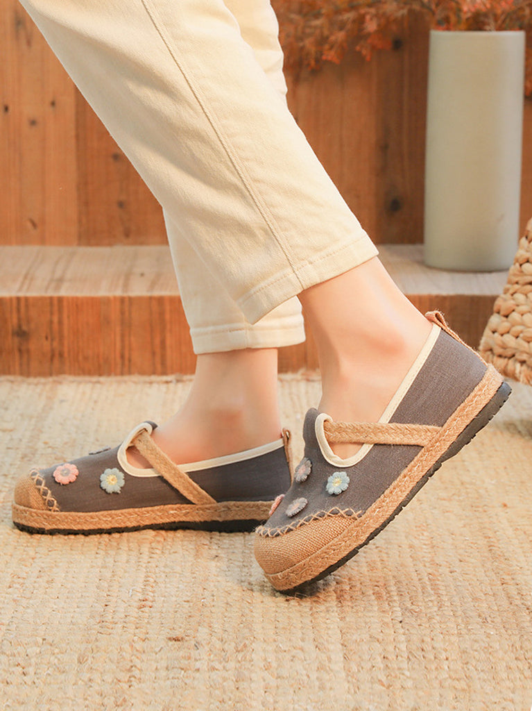 Chaussures d'été en lin avec broderie florale artistique pour femmes