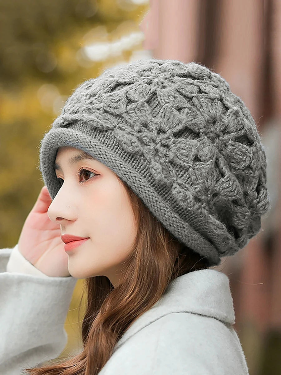Bonnet d'hiver artistique à fleurs tricoté pour femme
