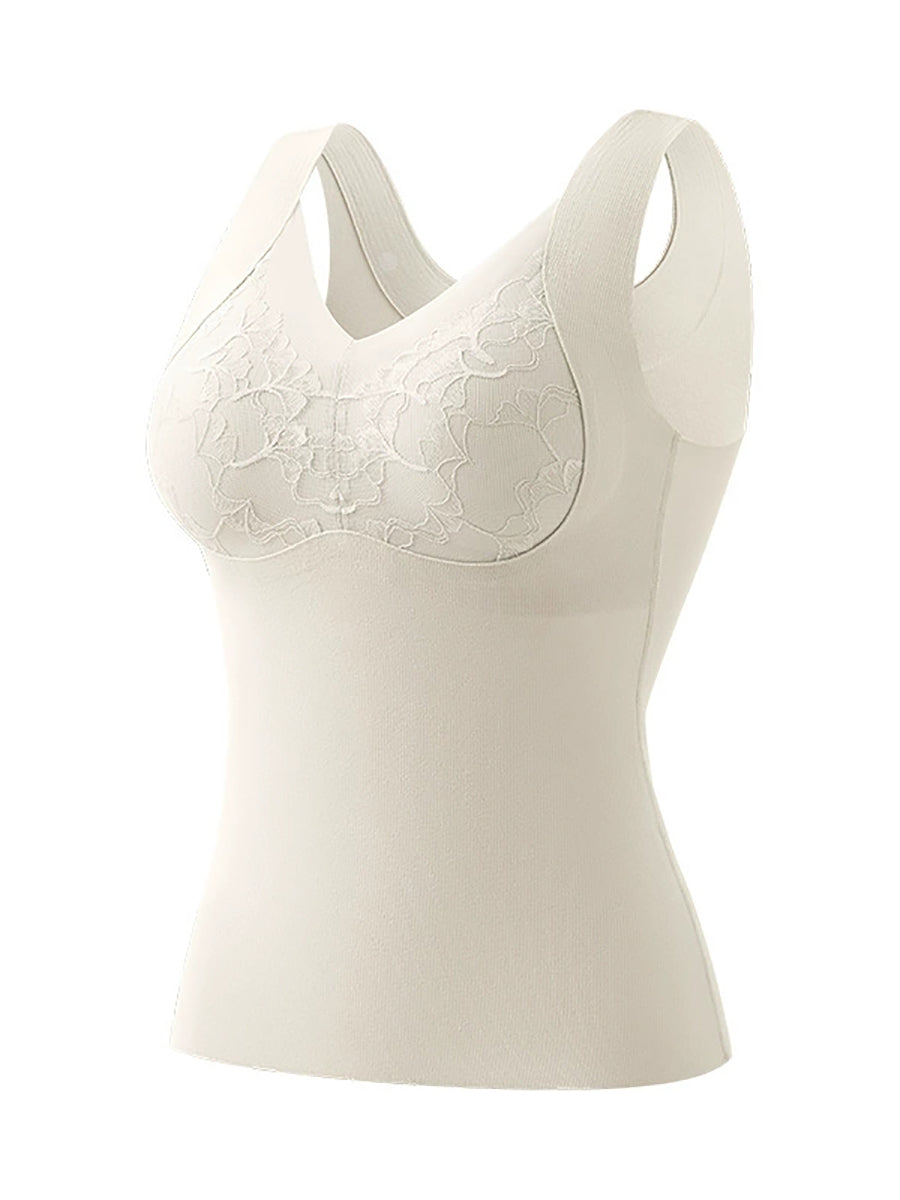 Gilet d'automne à col en V et dentelle artistique pour femme