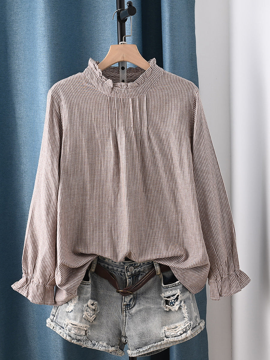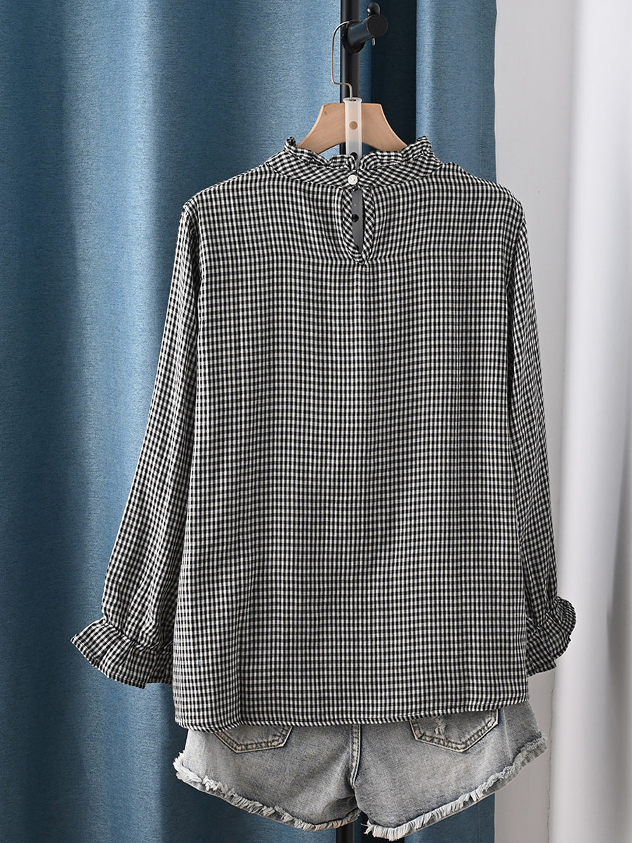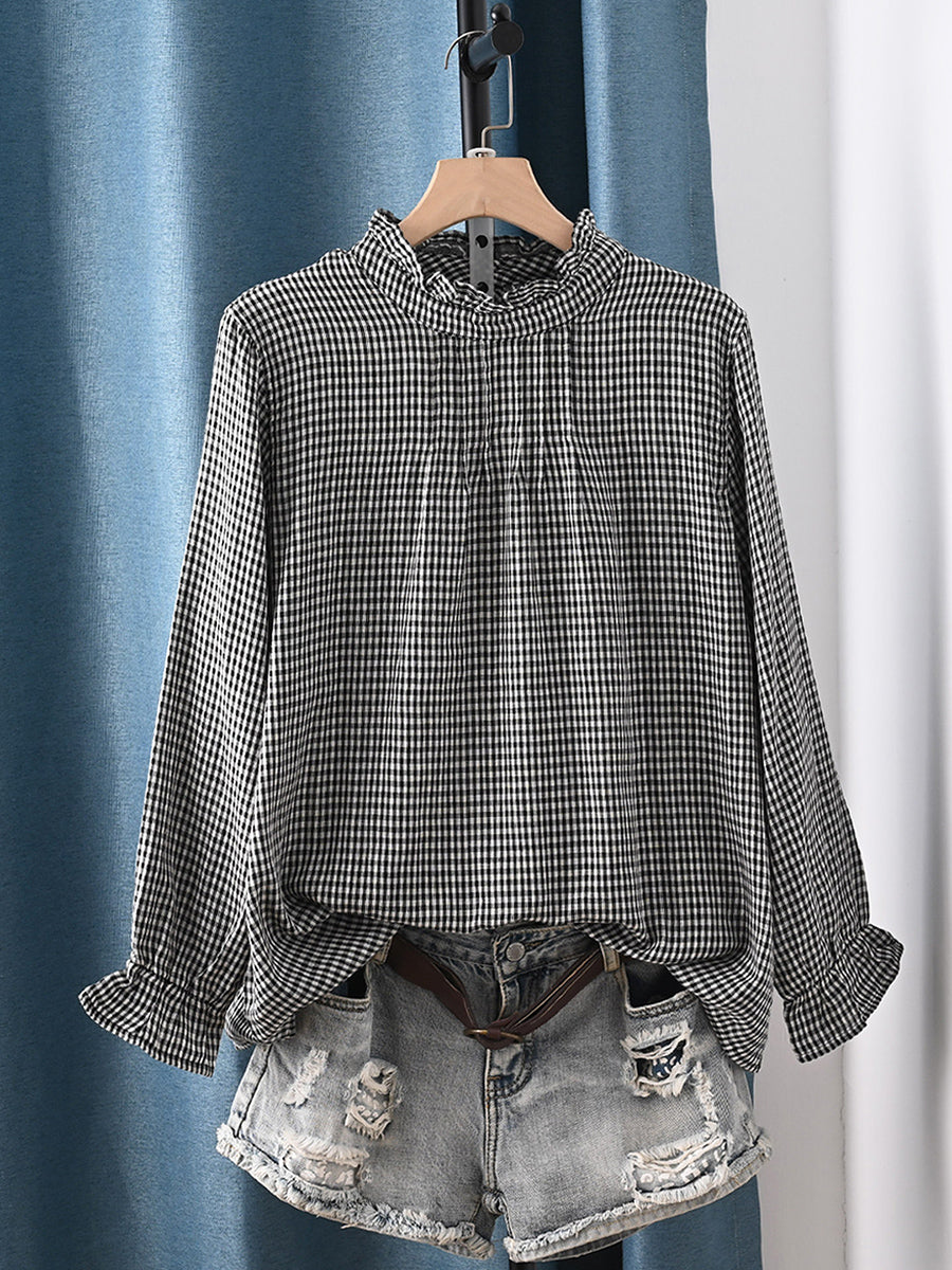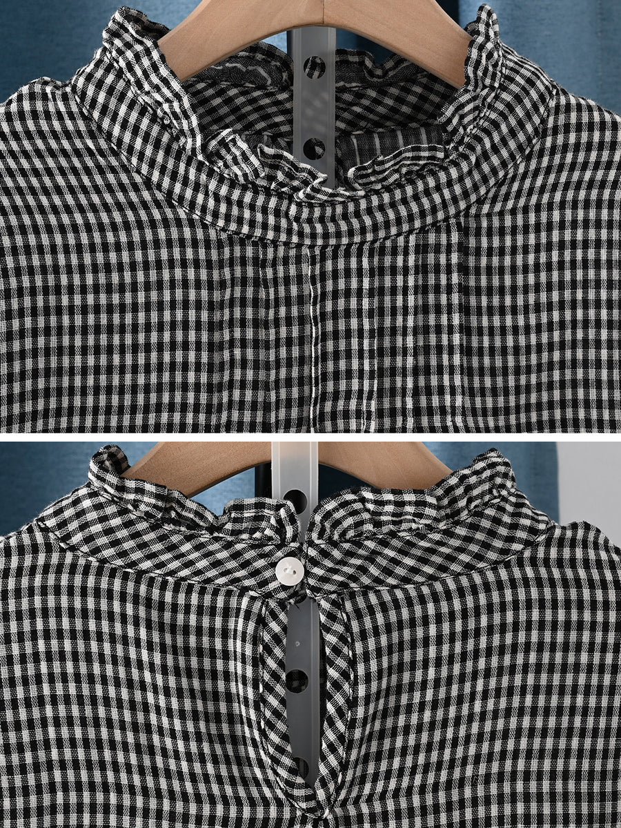 Chemisier printanier à carreaux artistiques pour femme, 100 % coton