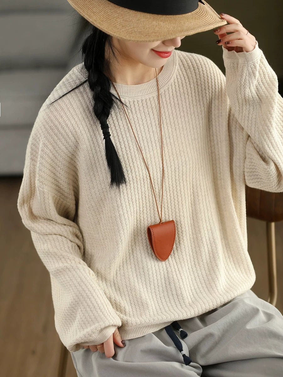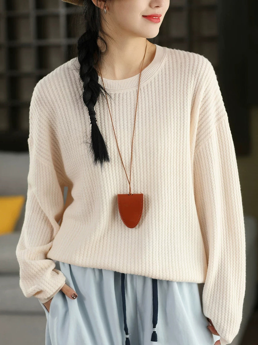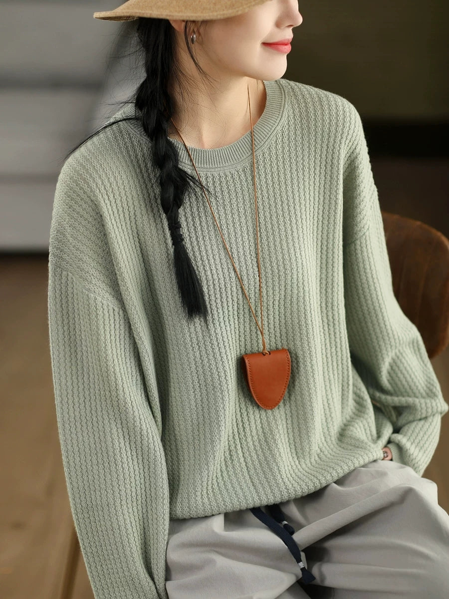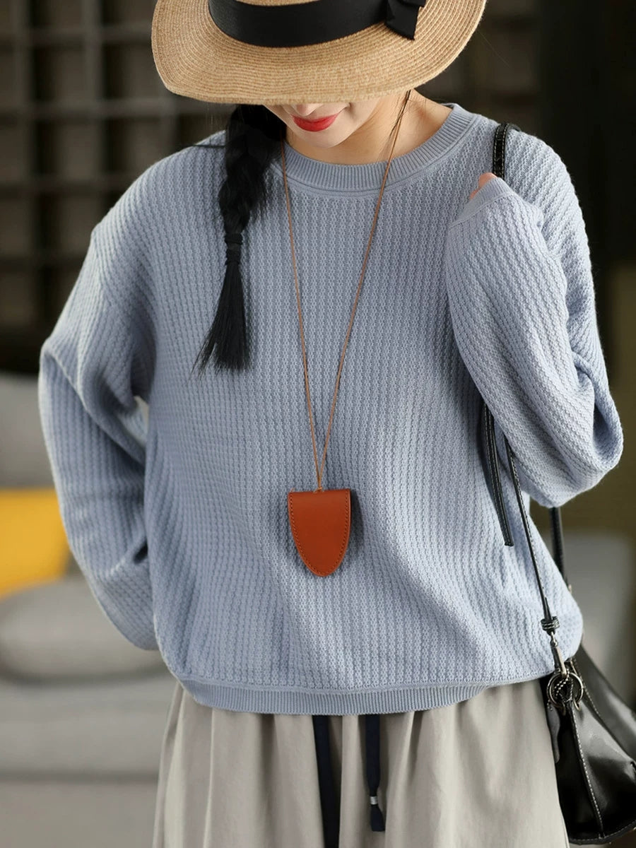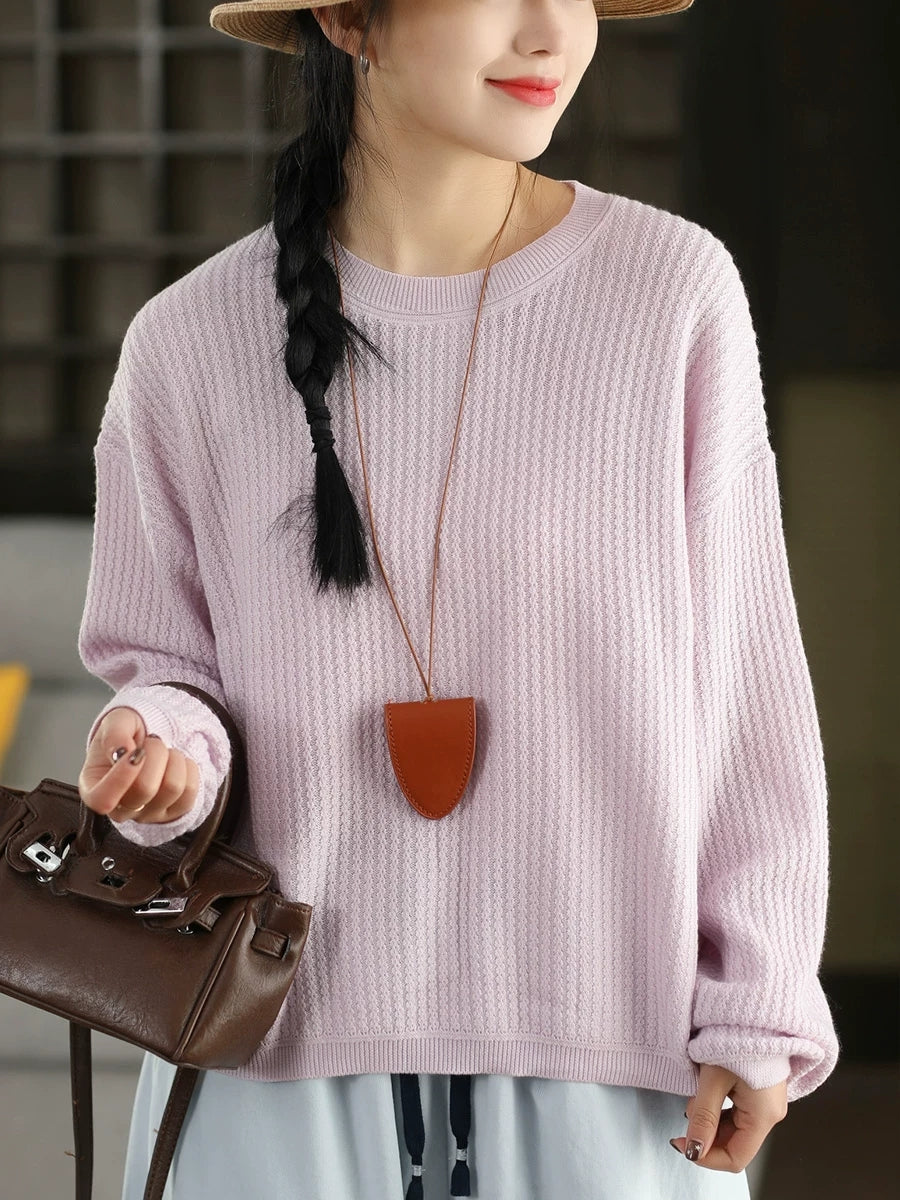 Pull col rond à blocs de couleurs décontracté pour femme, idéal pour le printemps