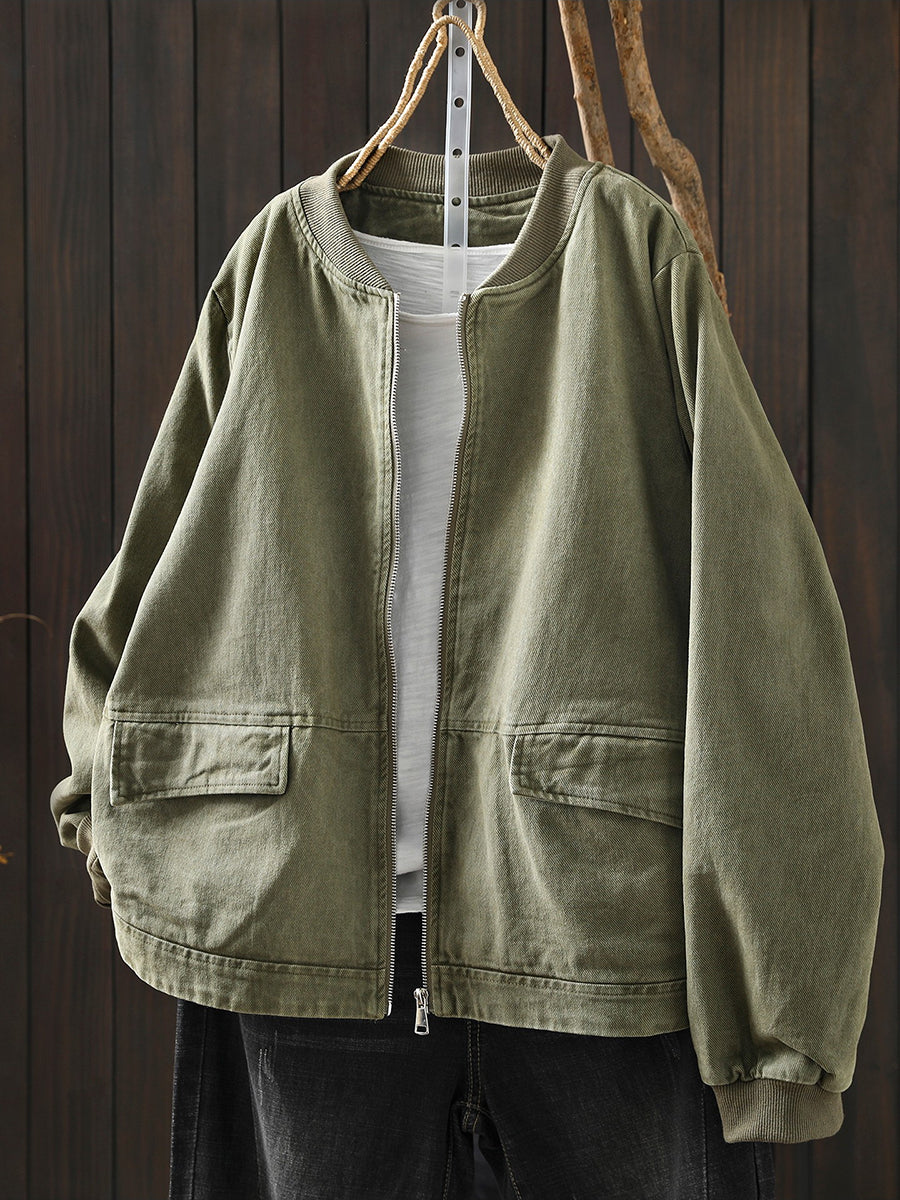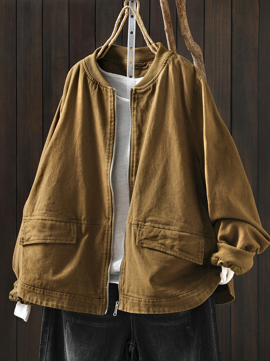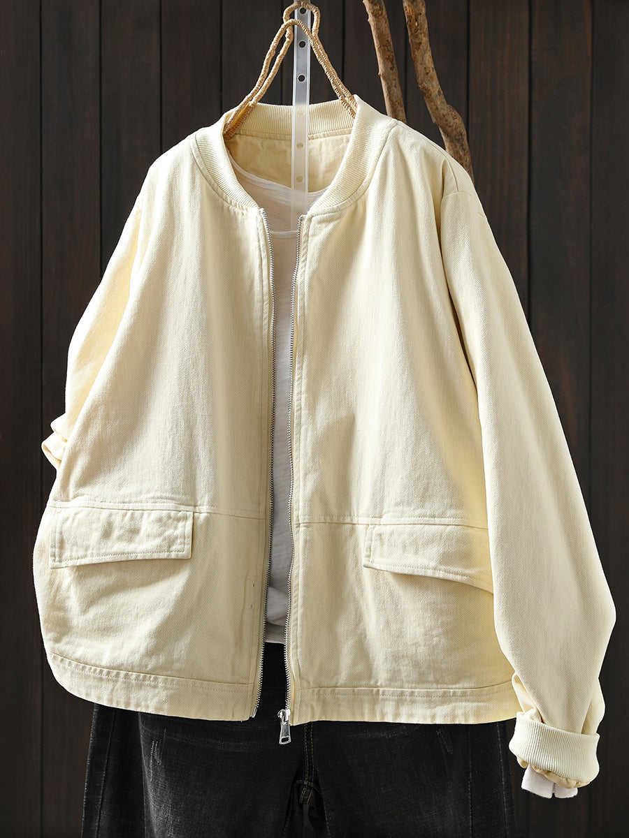 Veste de printemps décontractée pour femme en coton pur à col montant