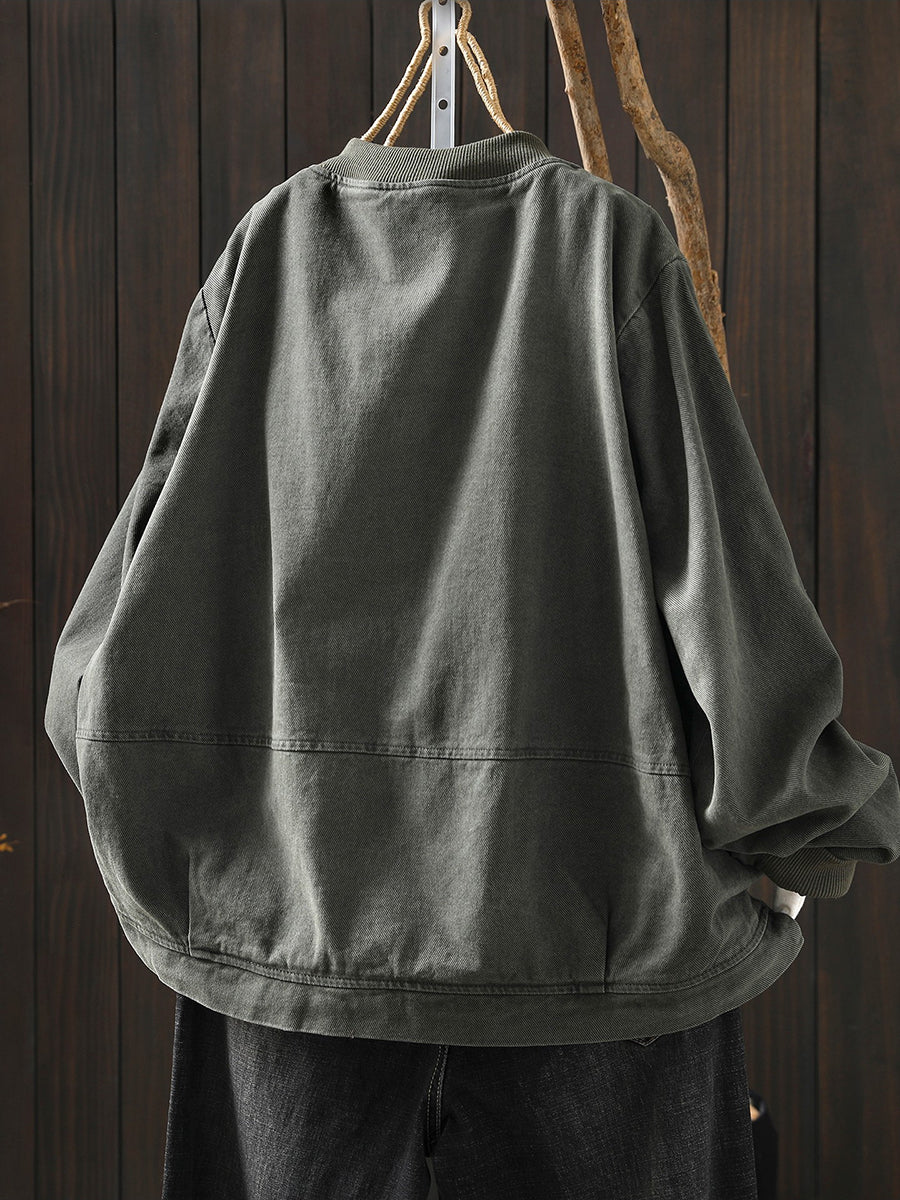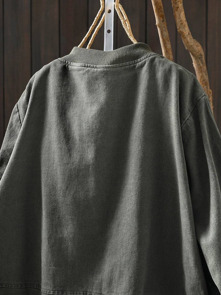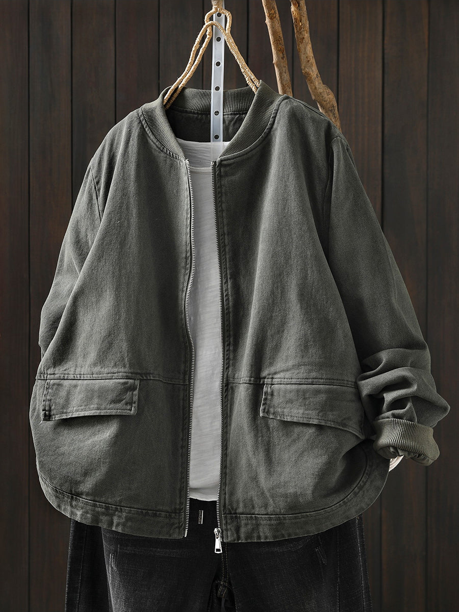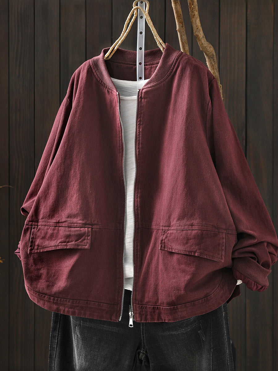 Veste de printemps décontractée pour femme en coton pur à col montant