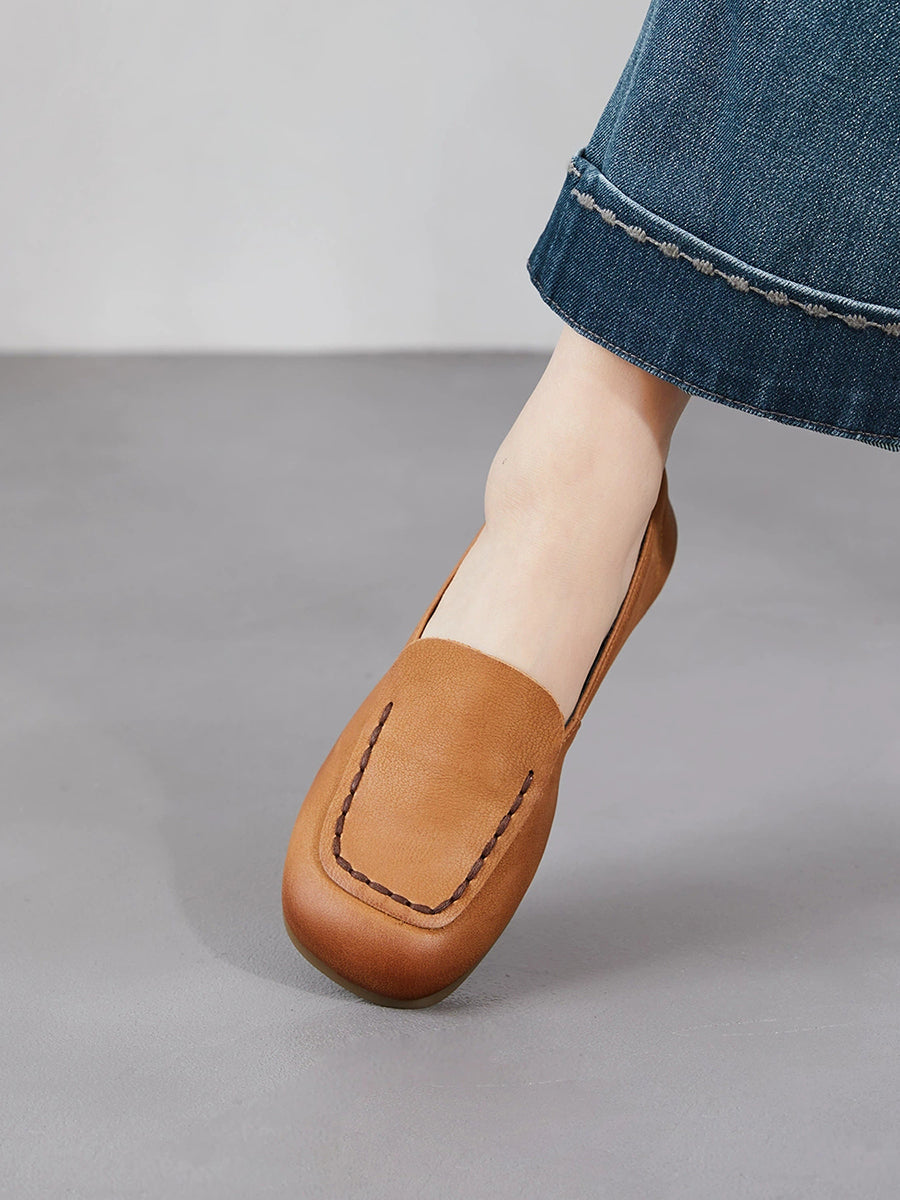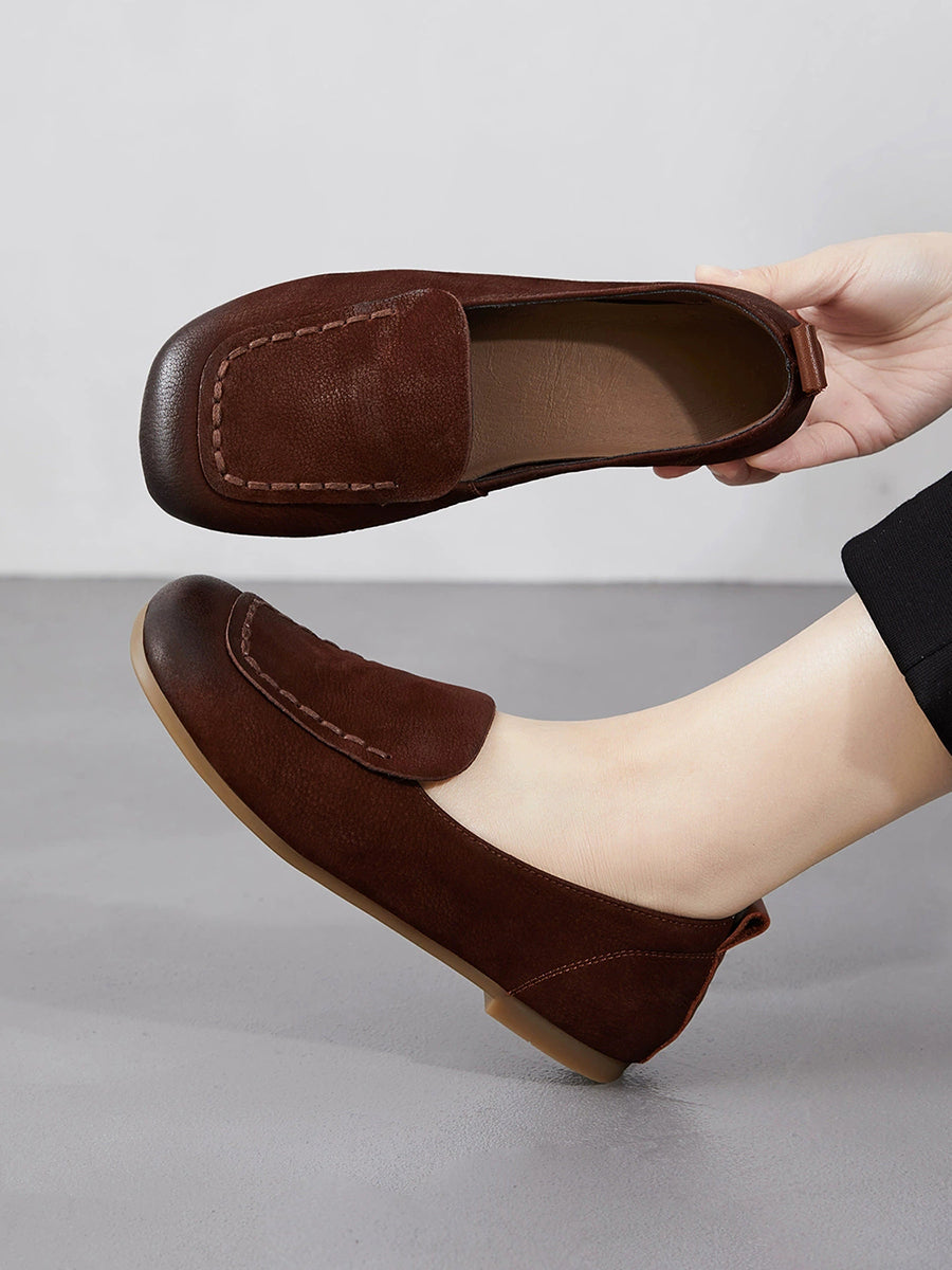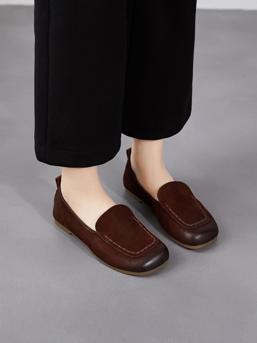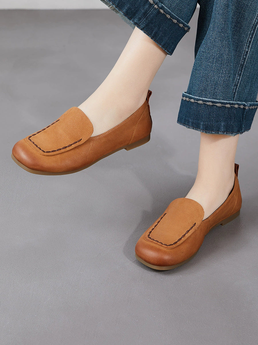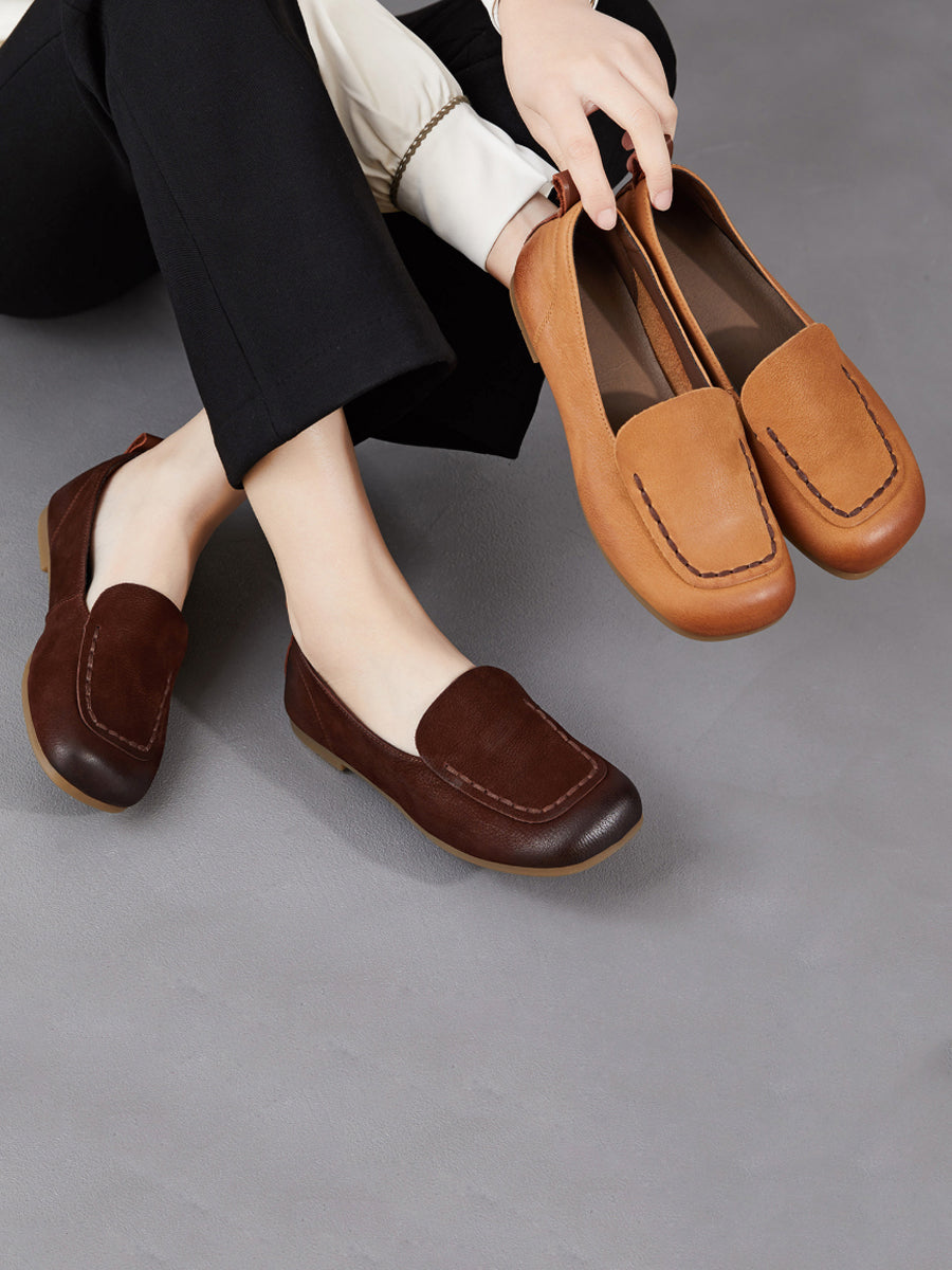 Chaussures de printemps pour femmes en cuir véritable à bout carré et empiècements