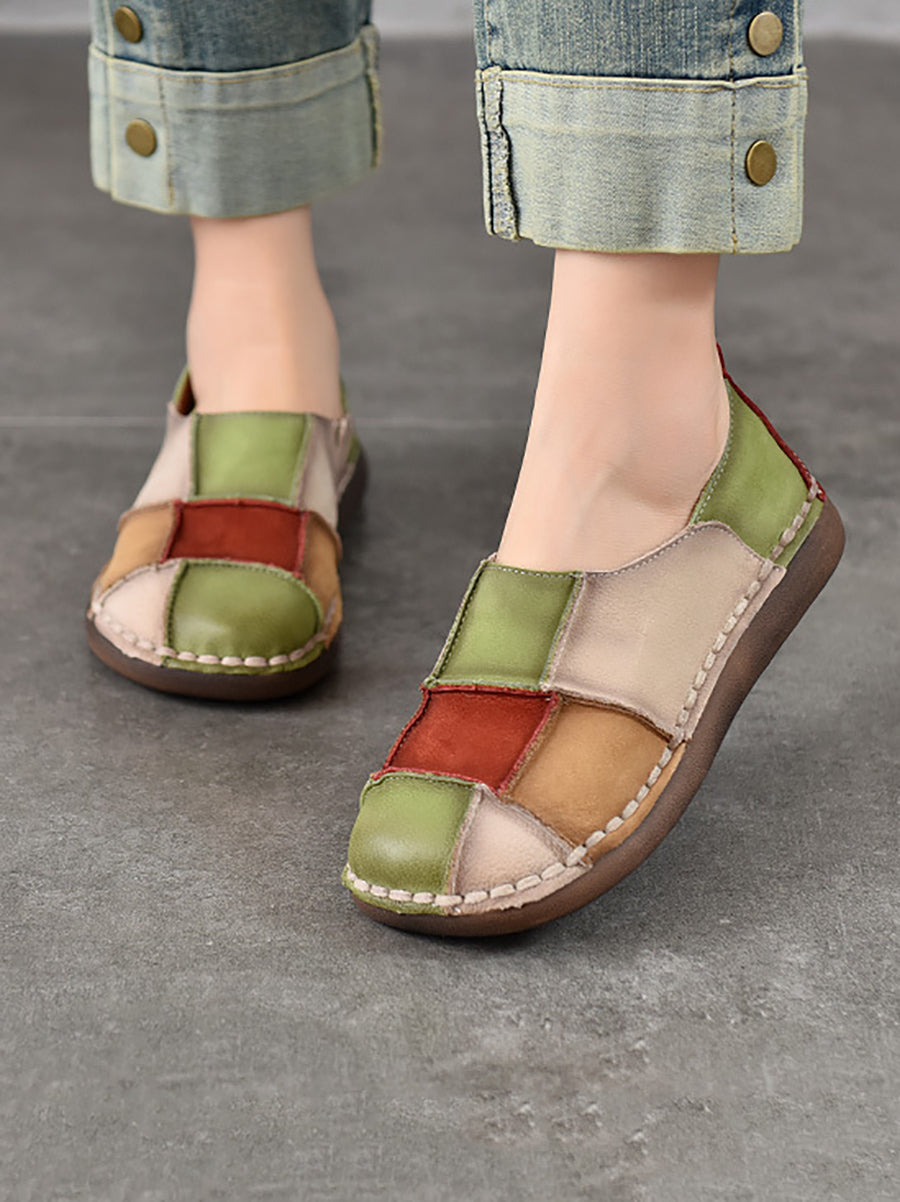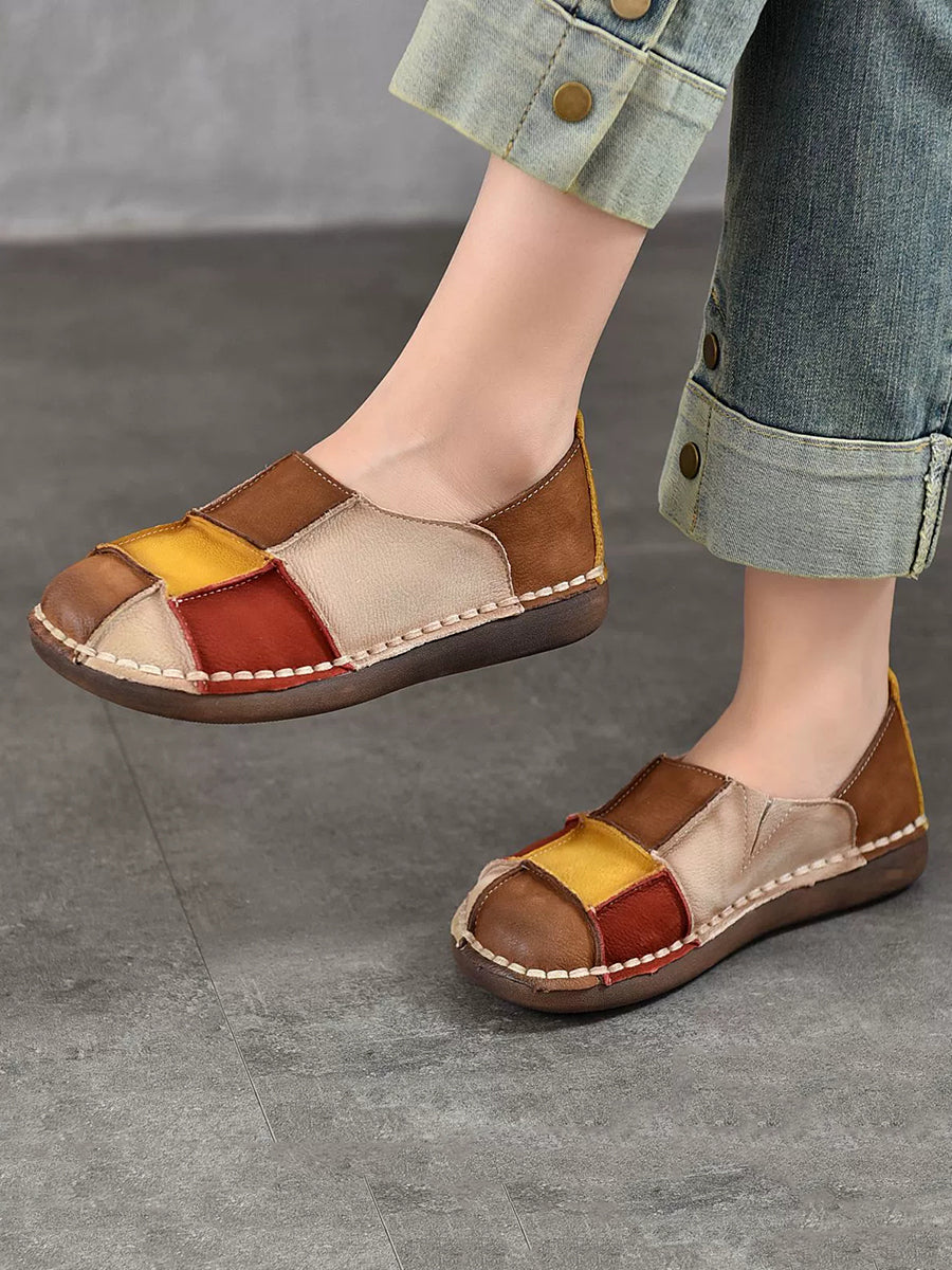 Chaussures plates en cuir colorblock rétro printemps pour femmes