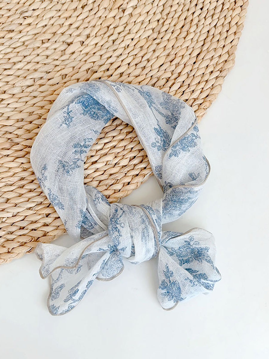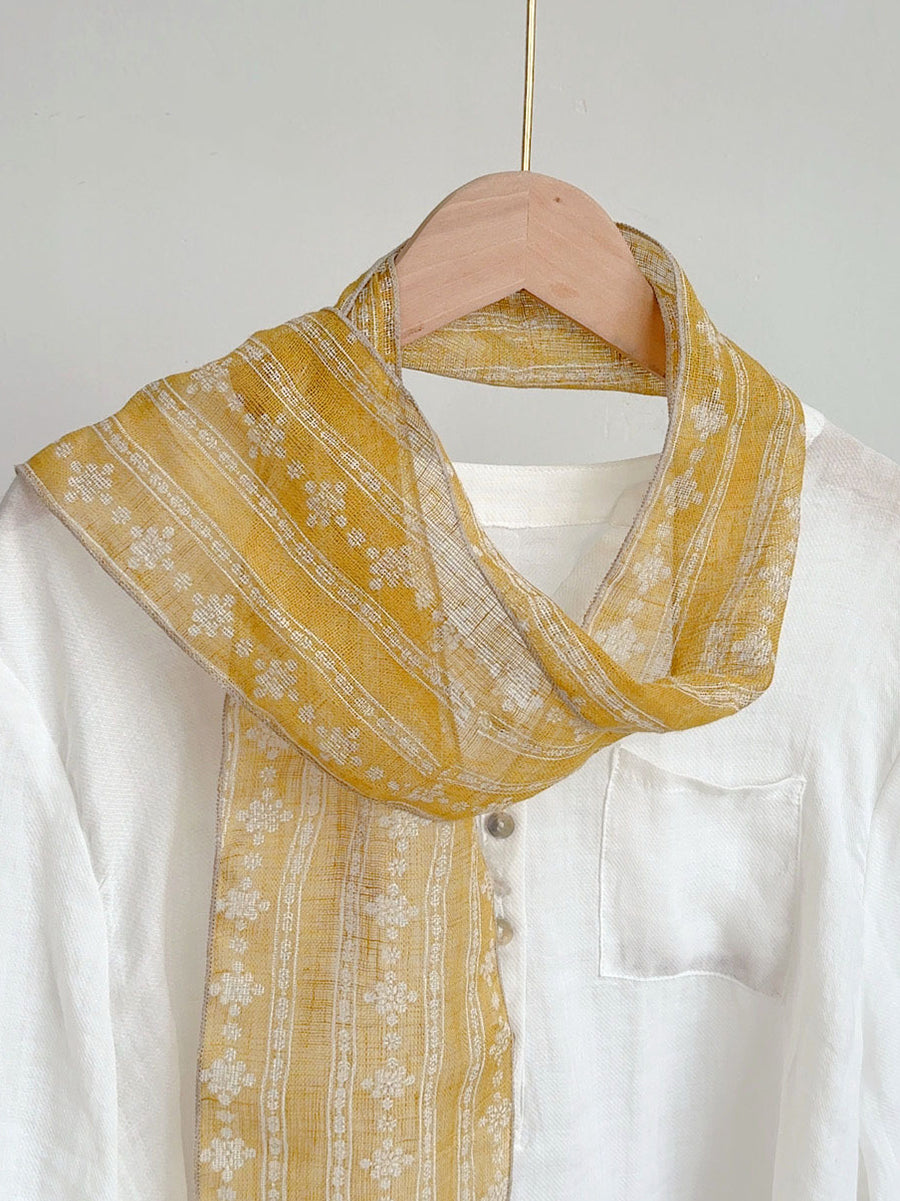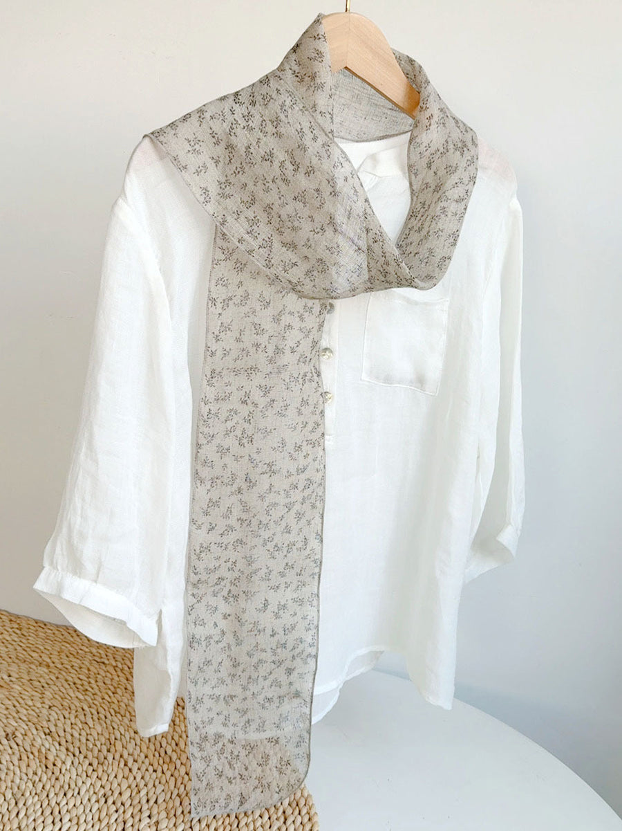 Écharpe fine en lin à fleurs artistiques pour femme, été