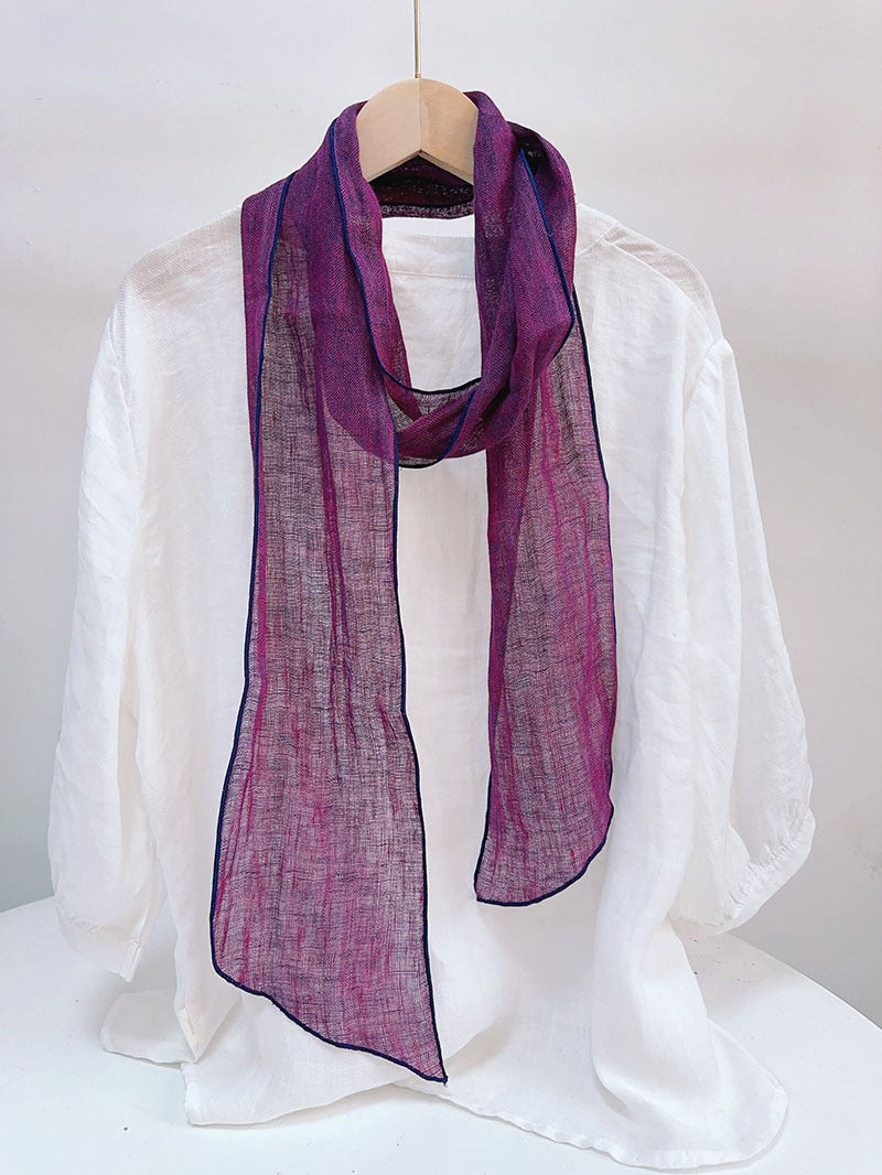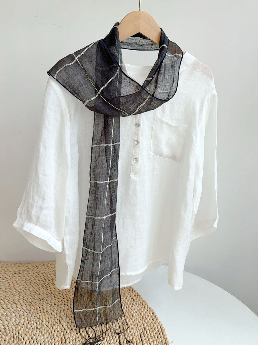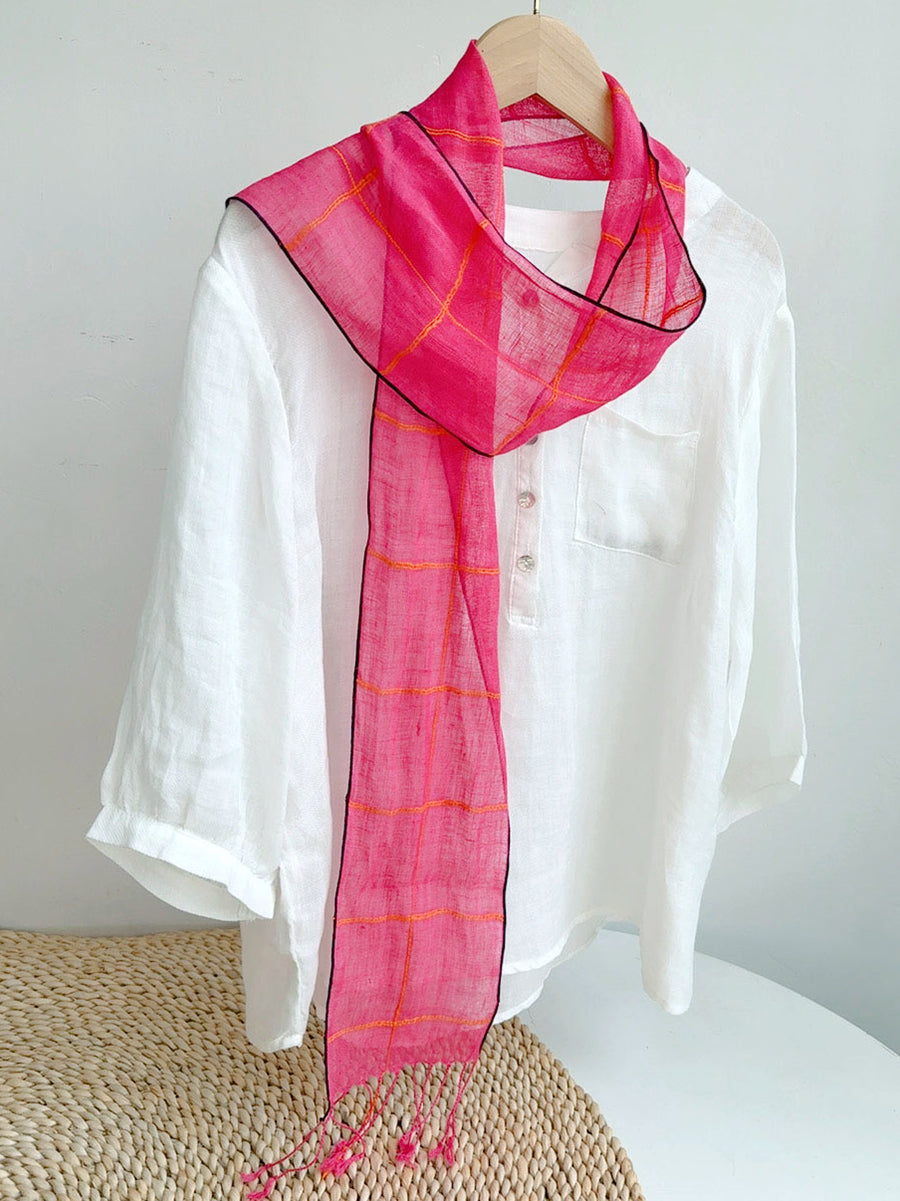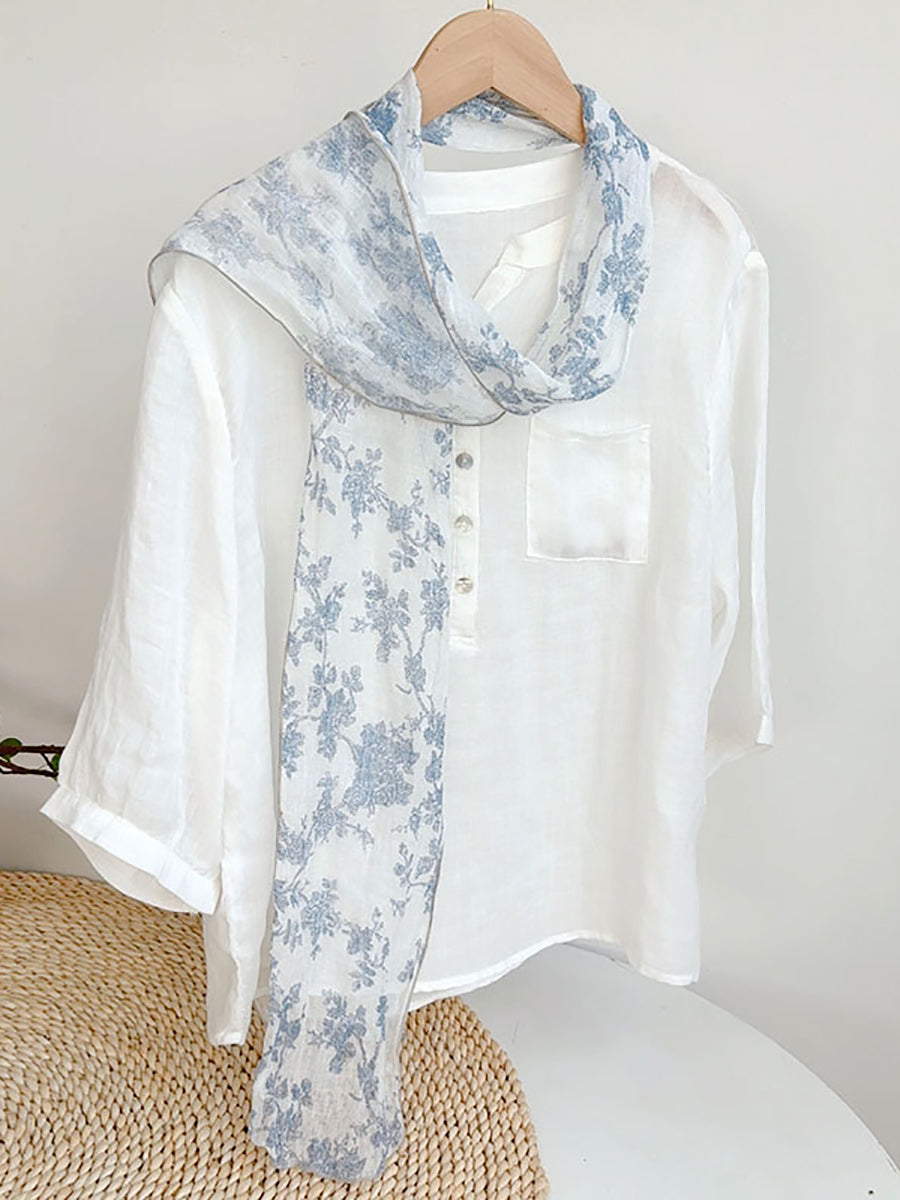 Écharpe fine en lin à fleurs artistiques pour femme, été