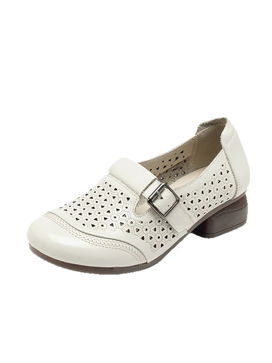 Chaussures d'été pour femmes en cuir véritable à petits talons hauts.