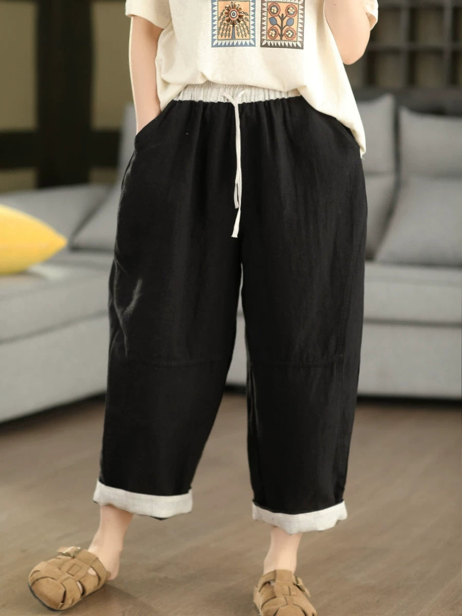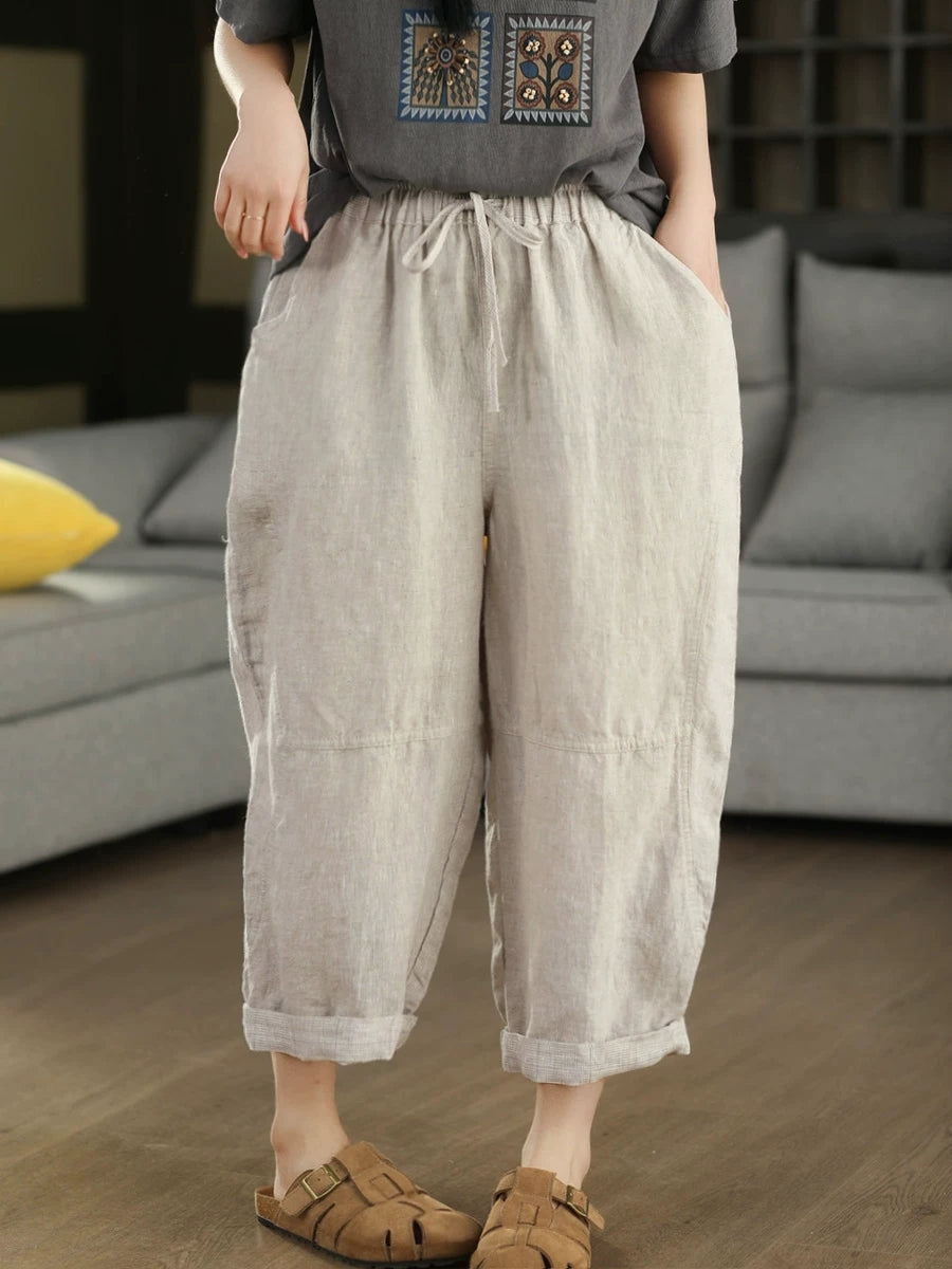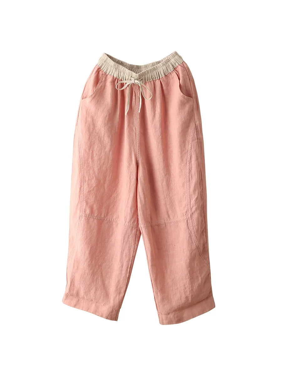 Pantalon harem d'été pour femme, couleur unie, 100 % lin