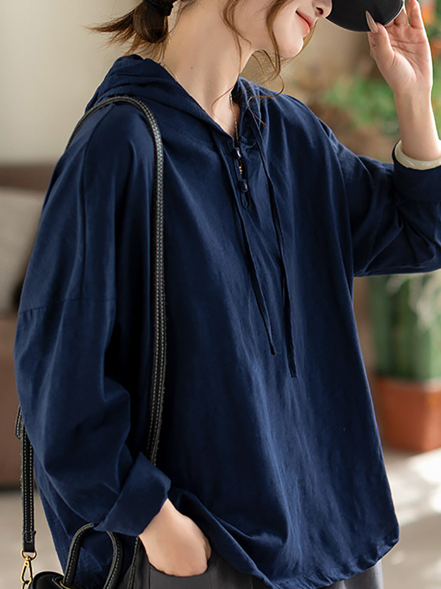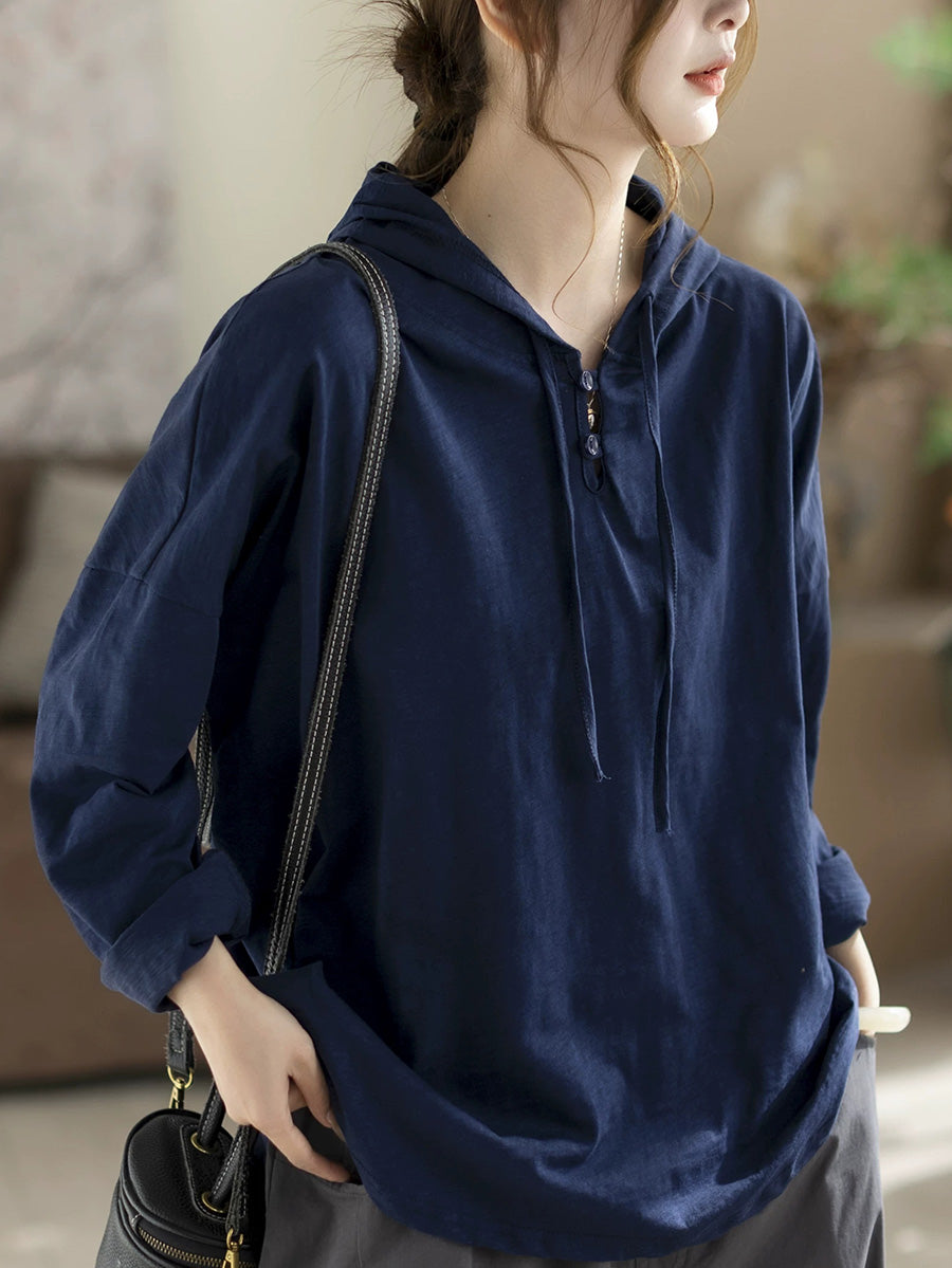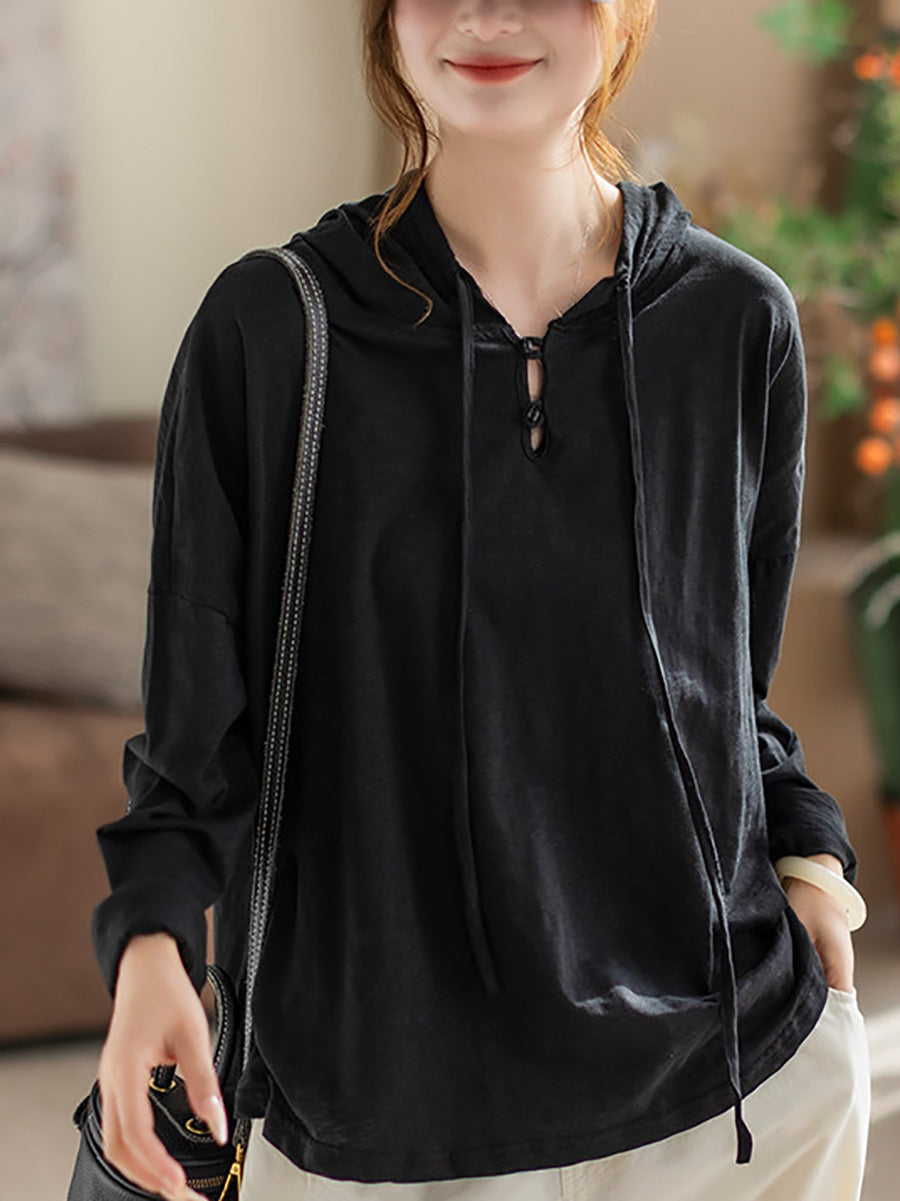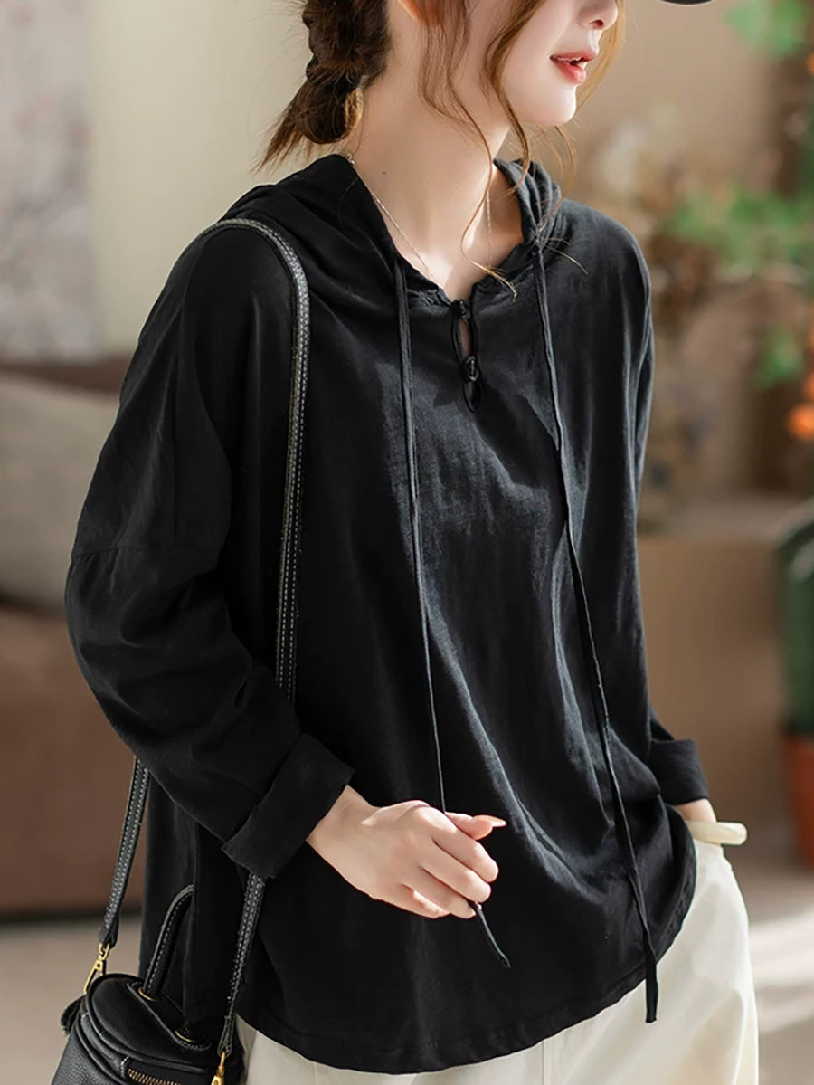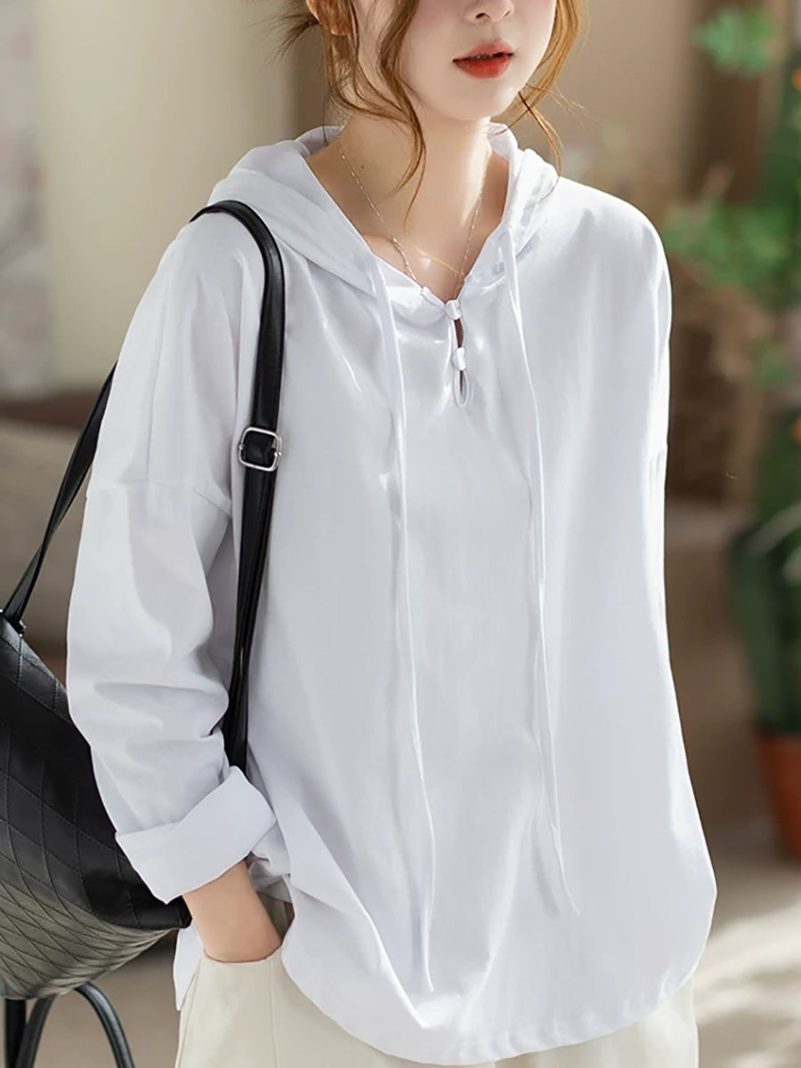 Sweat à capuche polyvalent pour femme, printemps, en coton pur couleur