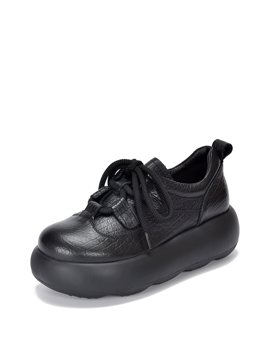 Chaussures à plateforme vintage pour femmes en cuir véritable